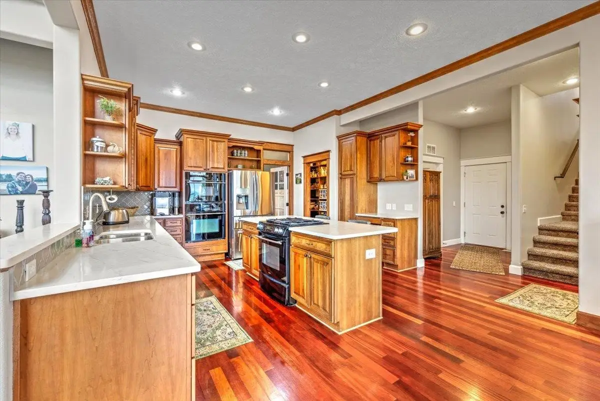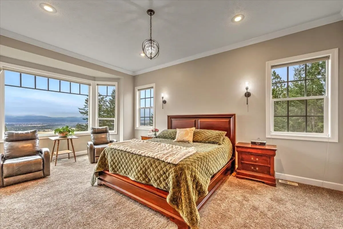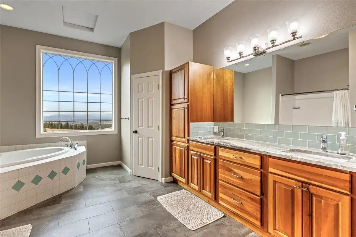 Nestled atop a picturesque hill in the heart of Spokane Valley lies a remarkable estate situated on 13.63 acres of pure tranquility & breathtaking views! Indulge in the splendor of this magnificent traditional home, an architectural masterpiece boasting over 10,000 square feet which includes an indoor BASKETBALL COURT/SPORTS COURT, soaring ceilings, large view windows, gorgeous hardwoods and renovations in 2020 to include: flooring, lighting, interior paint, exterior paint, new decking, kitchen & bathrooms. This Estate offers a blend of luxury & comfort, adorning a total of 7 bedrooms, two master suites (one on main level and one upstairs), 6 bathrooms, formal-living & dining rooms and a great room that opens to the Chefs kitchen. The beautiful kitchen features hardwood flooring, custom cabinetry, quartz countertops, state of the art appliances & an expansive pantry. Main floor master suite boasts an expansive tile shower, soaking tub, new tile flooring & large walk in closet. The oversized garage is 1,274 square feet