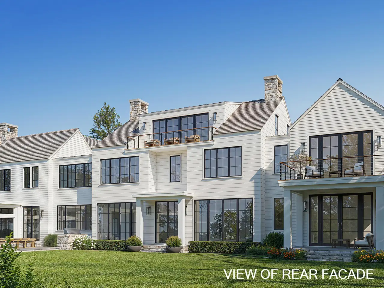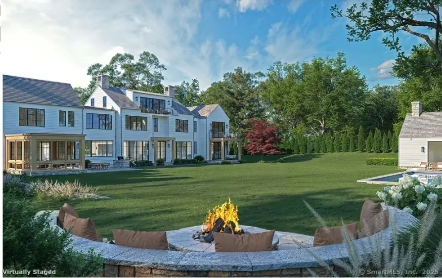 Exceptional commanding luxury estate under development in prime mid country location. The 2.39 acre gated & elevated site includes a 13,326 SF main house with 6 bedrooms / 8.3 bathrooms across 4 levels of custom crafted living space with indoor parking for 7 cars - plus an outfitted 800 SF luxury pool house with vaulted ceilings, heated floors, stone fireplace & full bathroom overlooking a large terrace, 50 ft. pool with integrated spa & sundeck plus a sprawling lawn area with sunken fire pit & Bocce court. Designed by the SOHO Group, this striking transitional home with soaring ceilings & tremendous light is perfectly layered in clapboard, hand chiseled fieldstone & oversize glass. A 3-stop elevator plus an amenity-filled lower level complete the offering. Est. completion date: Dec. 2025