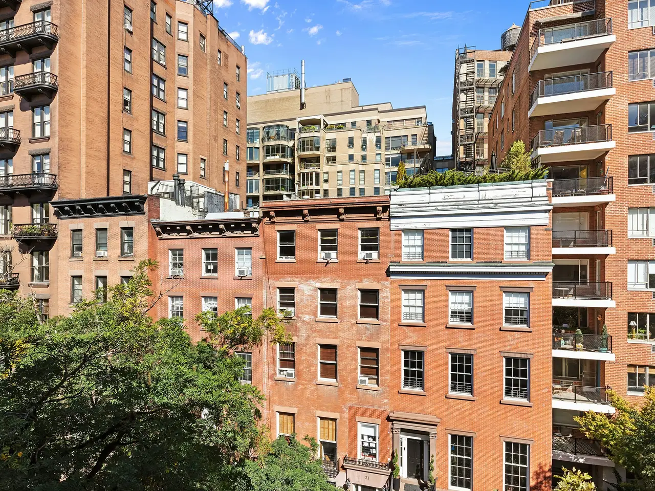 Majestic proportions, premiere location, and beautiful light and views define the grandly scaled 20 West 12th Street. An impressive 26 feet wide, built 80 feet on a 103 foot deep lot, and graced with a 20 foot private garden, with side garden, this approximately 9000 square feet turn of the century brick and stone house is destined to return to all of its former glory and maintains much of its century old character, lovingly maintained and attended to. Notable highlights include: Otis elevator; pristine basement over 6' high with updated mechanicals, plumbing, electric and gas service; 7 wood burning fireplaces; central air conditioning; north, south, and a rare east exposure offering glorious light and privacy; soaring ceilings reaching 13 feet high; and stunning landmark, verdant views. To the south, 3 protected townhouses protect the sun kissed southern exposure. Cellar- mechanicals, storage, laundry. First, Second and Third floor owner's triplex featuring a renovated 30 foot long kitchen leading to garden, 4-5 bedrooms, 3.5 baths, and a parlor floor suite comprised of 26 foot wide sitting room with three window bays facing West 12th Street, square library, and the breathtaking conservatory great room, each with 13 foot ceilings, and a wood burning fireplace. The brick paved, landscaped 20 foot deep garden, side garden, and mature trees including a 50 foot blooming magnolia provide a peaceful nature sanctuary. Third floor front- 1 bedroom home with renovated kitchen, and approximately 10 foot ceilings. Fourth floor- 1 bedroom floor through with formal dining, 26 foot wide living room, three open exposures with protected views, and 12 x 15 foot private terrace with open southern views. Fifth floor- 1 bedroom artist aerie with 12 foot ceilings, exposed brick hearth and fireplace, triple bay steel casement window framing cinematic Village views, and a 15 x 22 foot terrace with open southern views.