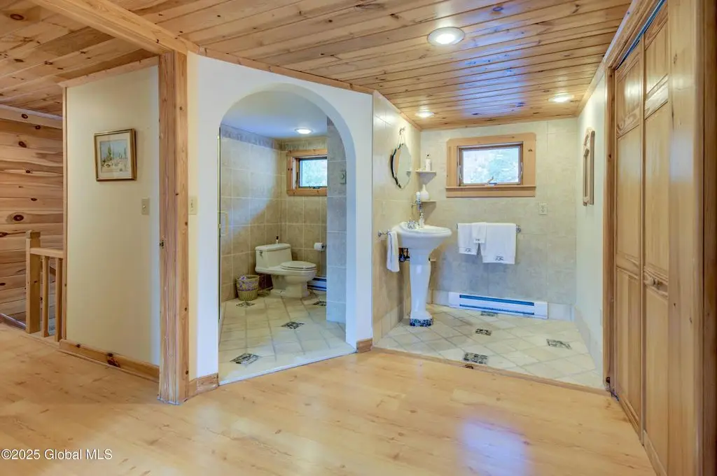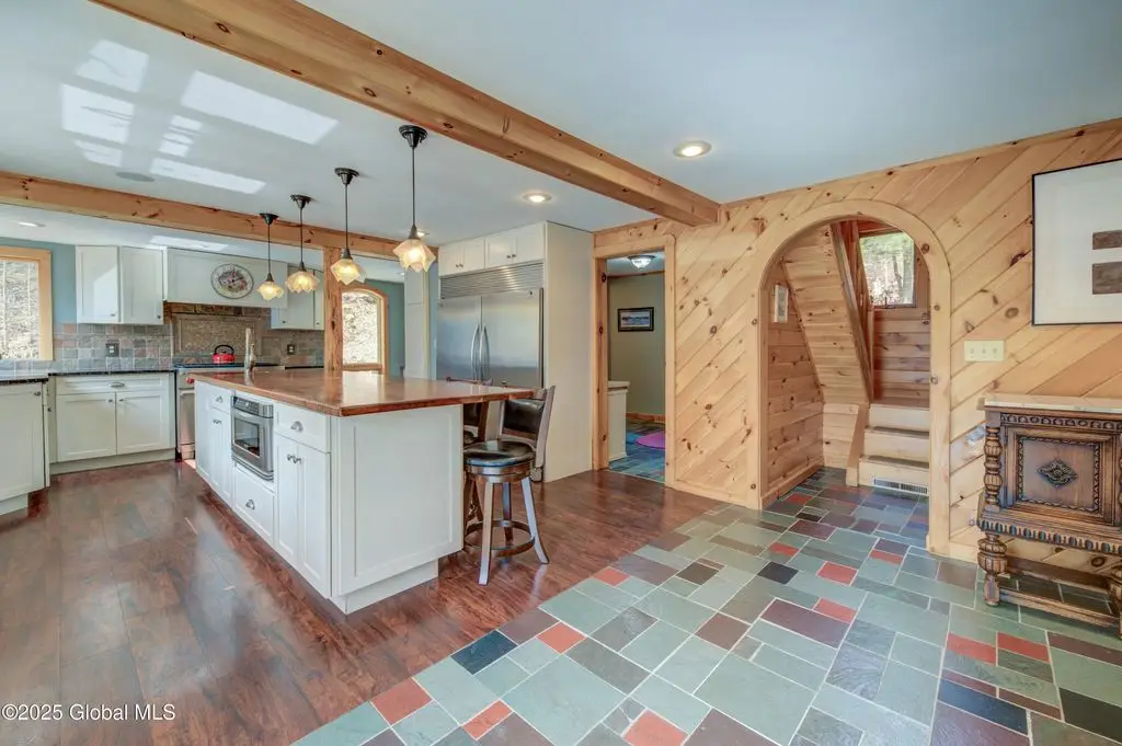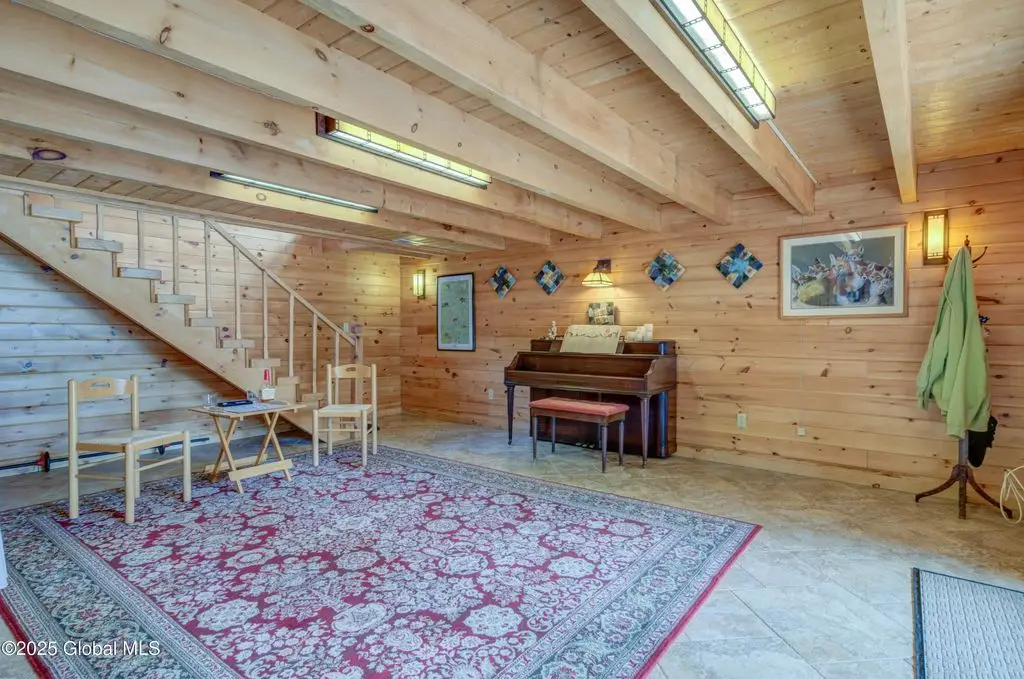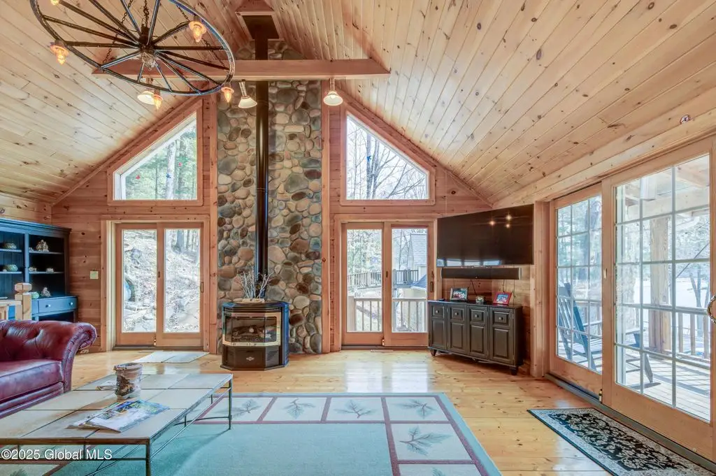Stone hearth & vaulted ceilings