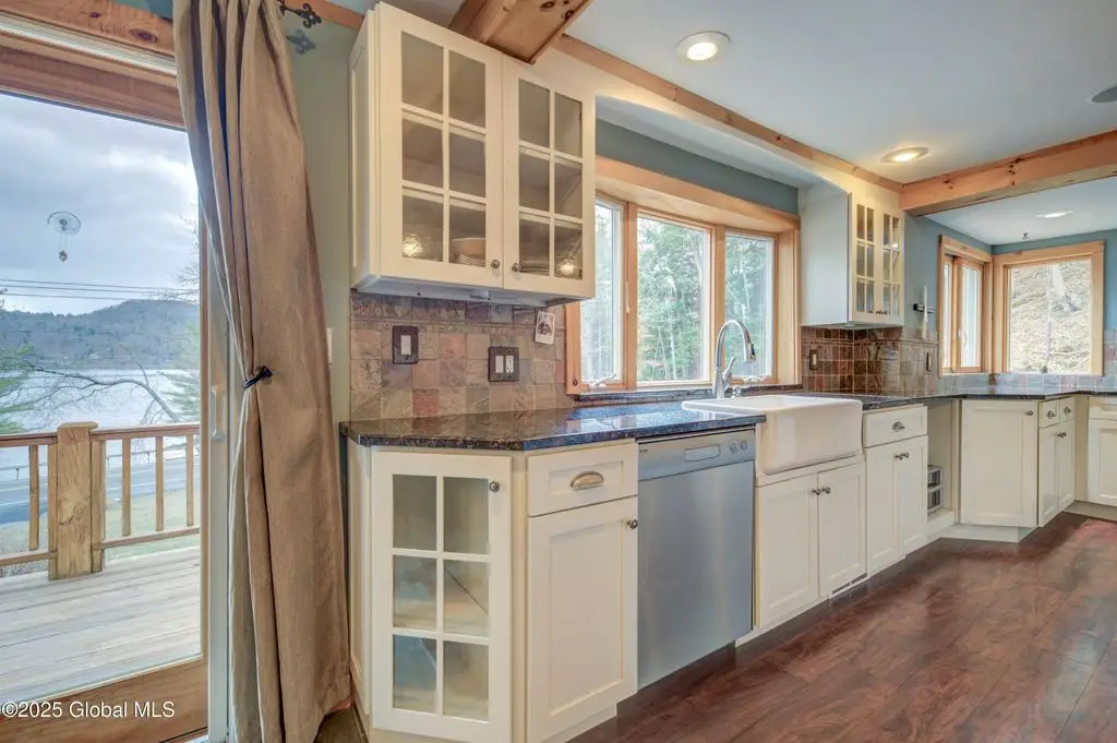 First class lakefront home w/120' on the Great Sacandaga! Property boasts high quality finishes & beautiful spaces, inside & out, with sophisticated Adirondack style. Gorgeous custom kitchen w/commercial appliances & lots of natural light. Vaulted ceiling & stone hearth in living room. First floor master w/luxurious bath featuring soaking tub & large walk in shower! Wrap around deck is accessible from multiple rooms. Enjoy lake views from most rooms of this amazing home. Addt'l BRs, full bath, & office space both upstairs and down. Laundry room on main level. Walk out basement w/additional finished space & workshop. Spacious guest room above det. 2 car garage (w/3 bays below for 'toy' storage!) Whole house generator. Adjacent 15 acre addt'l lot w/ 30' lakefront available for addt'l $165k