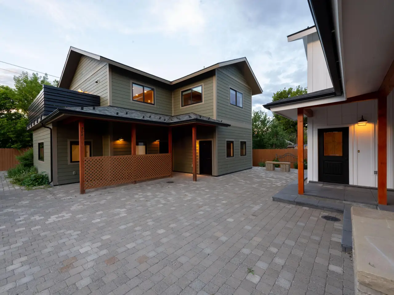 Prime courtyard compound in Old Hailey's heart! This feels like two homes in one: a 2023-built 3-bedroom craftsman primary home, plus a detached ADU and a spacious 1064 sq.ft. garage. Enjoy wrap-around porches, high-end finishes, and a state-of-the-art hydronic heating system. It's the only detached ADU opportunity under $2M. Delight in manicured garden paths will amaze you.