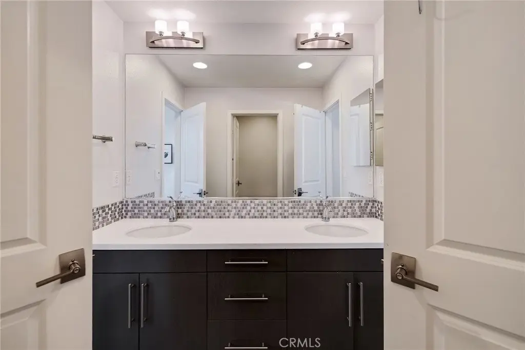 • Contemporary bathroom with dual sinks