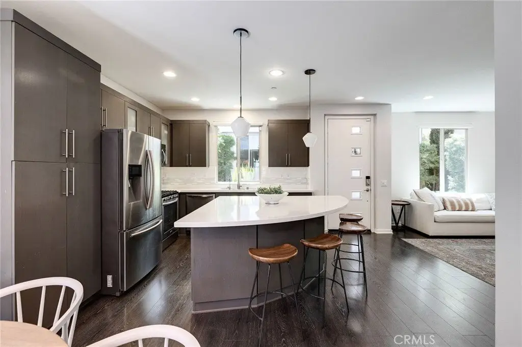 Enjoy a refined modern lifestyle in the prestigious gated community of ThreeSixty South Bay. This detached Terrace home offers privacy with no shared walls, low HOA dues and a thoughtfully designed layout suited for both everyday living and entertaining. Step into the open living area bathed in natural light seamlessly connected to a stylish kitchen featuring flat-front cabinetry, quartz countertops, stainless steel appliances and a spacious center island perfect for daily meals or gatherings with friends. The dining area opens to a secluded, south-facing patio, just the spot for a bistro set or container garden. A guest powder room and direct access to the attached two car garage with storage complete the first floor. Upstairs, all three bedrooms are located on the second level, along with a versatile landing area currently utilized as a home office. The primary suite features a walk-in closet with custom built-ins and a dedicated contemporary bathroom with dual sinks, while two additional bedrooms share a full Jack-and-Jill bathroom. The laundry room is conveniently situated nearby. The third floor offers an airy media room or secondary living area with a soaring ceiling, abundant built-in cabinetry, a bar top and a beverage fridge - perfect for movie nights, working from home or simply relaxing. A wall of windows opens to a generous deck that extends indoor comfort into an inviting outdoor setting. True to its Terrace namesake, this standout space captures the essence of elevated South Bay style. Additional highlights include central air conditioning, a nest thermostat, reverse osmosis water filtration and a smart security system. As a ThreeSixty South Bay resident, you’ll enjoy access to five star resort-style amenities including two pools with cabanas, a full gym, sports courts, dog parks, a playground and a clubhouse set within a secured community located in the top rated Wiseburn School District. All of this, minutes from LAX, the beach, major freeways, shops and restaurants. The perfect place to call home just in time for summer!