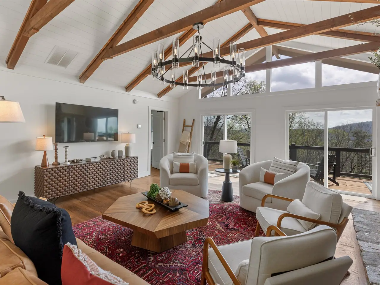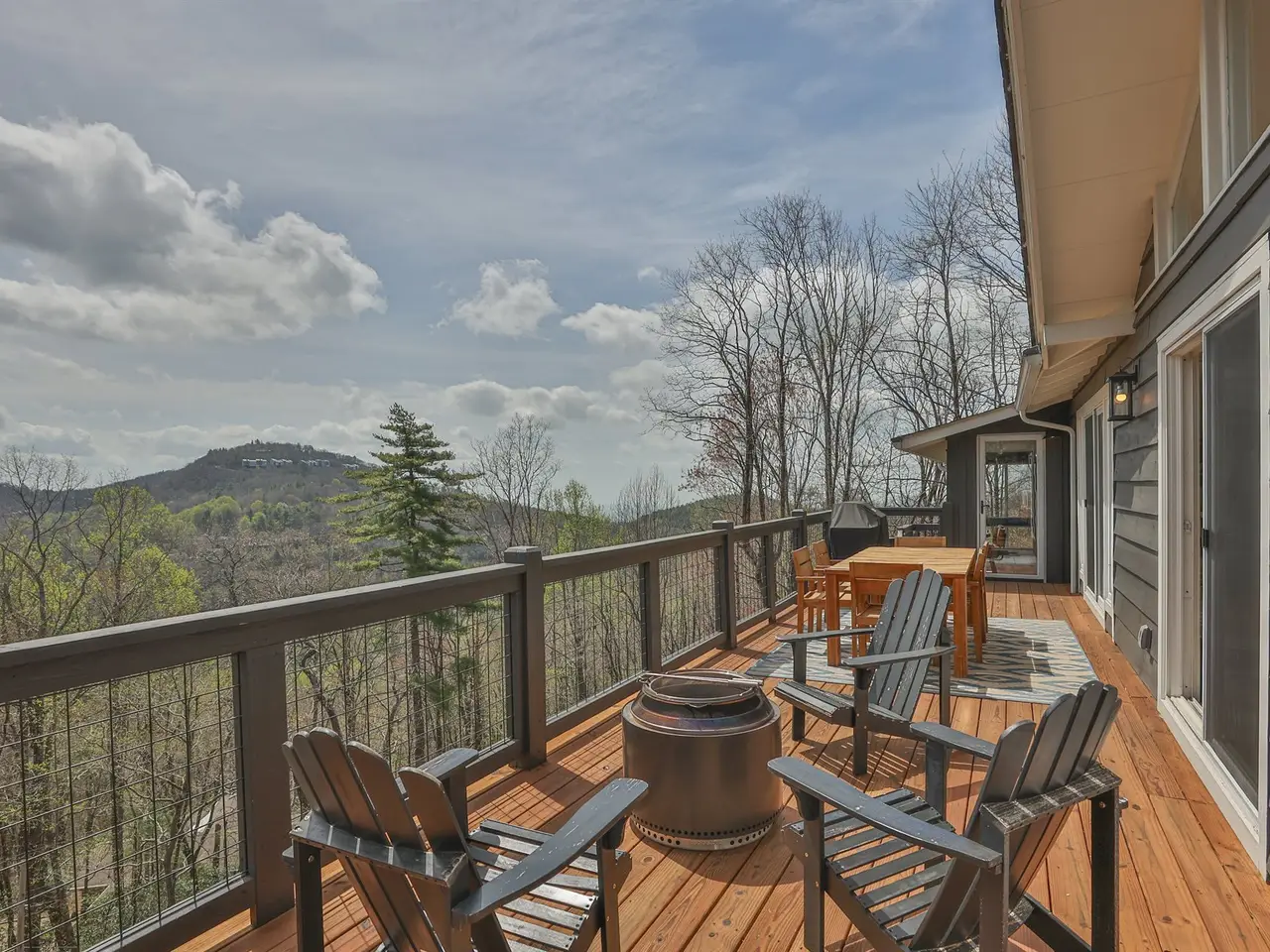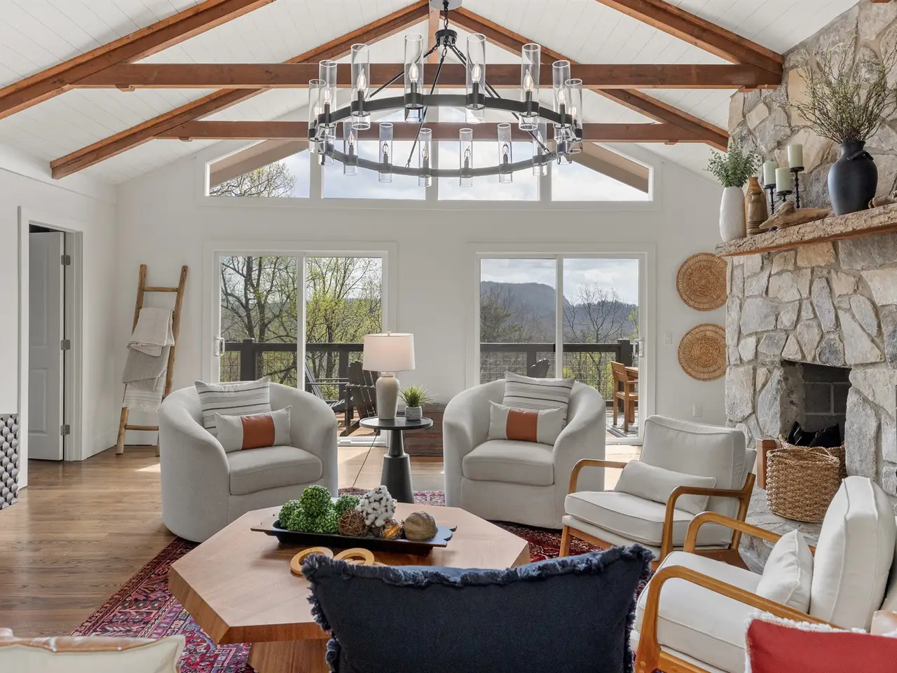 Welcome to your Highlands hideaway - a stunning 4-bedroom, 4.5-bathroom mountain residence just minutes from the heart of charming downtown Highlands! Perched at a high elevation, you'll enjoy cool summer breezes and panoramic sweeping mountain views that will make every day feel like a vacation. Blending modern sophistication with timeless mountain character, this renovated and designer-furnished home is assured to become your sanctuary. Step inside to discover two expansive great rooms, each featuring its own massive stone fireplace, ideal for cozy evenings or lively gatherings. The modern kitchen and updated baths blend style and comfort, offering elegant finishes and thoughtful functionality. A spacious bunk room wing provides versatile accommodations for guests or family, while generous outdoor living spaces - including multiple decks and a scenic viewing porch?invite you to savor sunrise coffee or sunset cocktails with views that soothe the soul. Thoughtfully and beautifully furnished and move-in ready, this home is the perfect summer escape - or year-round haven. Don't miss the opportunity to own this beautifully appointed mountain gem in one of Highlands' most coveted locations!
