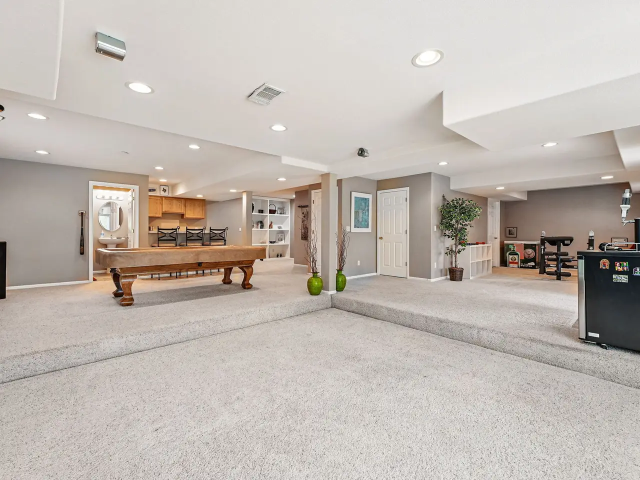Welcome home to this beautifully updated and spacious 5-bedroom, 5-bathroom two-story residence in the highly sought-after Kentley Hills neighborhood of Highlands Ranch. Situated on a picturesque lot with mature landscaping, stamped concrete walkway, and inviting curb appeal, this home offers the perfect blend of luxury and functionality. The entryway features soaring two-story ceilings and curved staircase, creating a stunning first impression. The main level boasts a sunlit living room with a bay window, a formal dining room, and a generous kitchen complete with a newly refinished white cabinets, center island, granite countertops, walk-in pantry, separate dining nook, and new stainless steel double ovens and gas cooktop. Sliding doors off the kitchen open to a spacious deck. Relax in the cozy family room with a fireplace, or utilize the private main-floor study, which also serves well as a sixth bedroom with an adjacent 3/4 bath. A convenient laundry room completes the main level. Upstairs, the expansive primary suite features a luxurious five-piece bath with updated cabinetry and a large walk-in closet. Three additional bedrooms include a shared bath for two and a private en-suite for the third. The professionally finished walk-out basement adds incredible living space, including a media room, additional bedroom, 3/4 bath, ample storage, and access to a private patio with a hot tub, all set against serene, mature landscaping. Several recent updates enhance its appeal-including refinished hardwood floors, newly installed carpet, new interior paint, refinished white kitchen and bathroom cabinets, new quartz countertops in bathrooms, and a refinished staircase. Spacious three-car garage. This exceptional home offers comfort, space, and style in one of Highlands Ranch's most sought-after communities.
