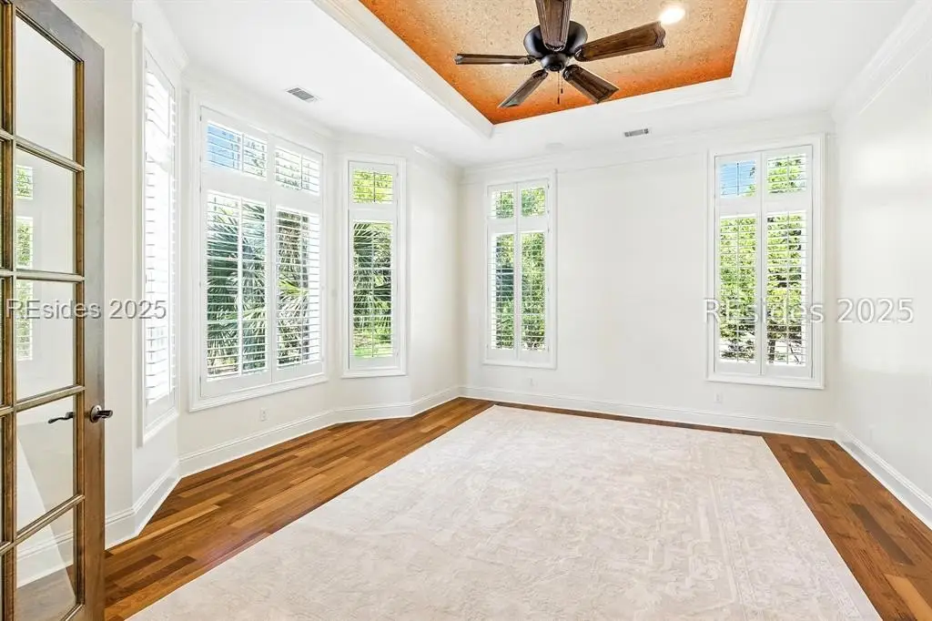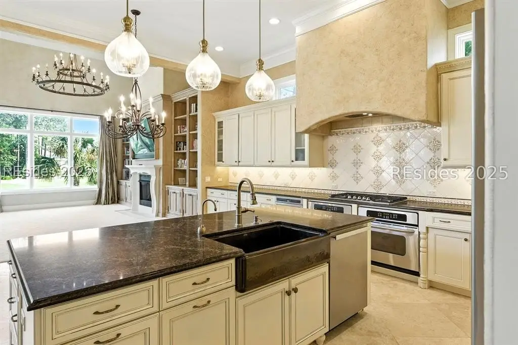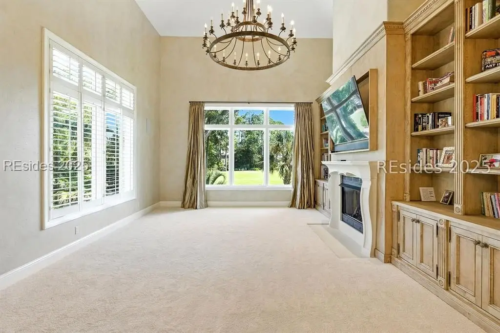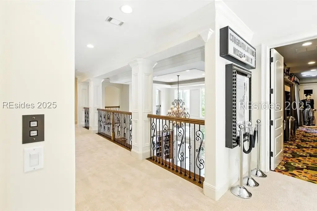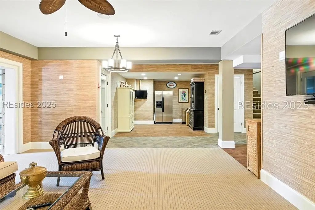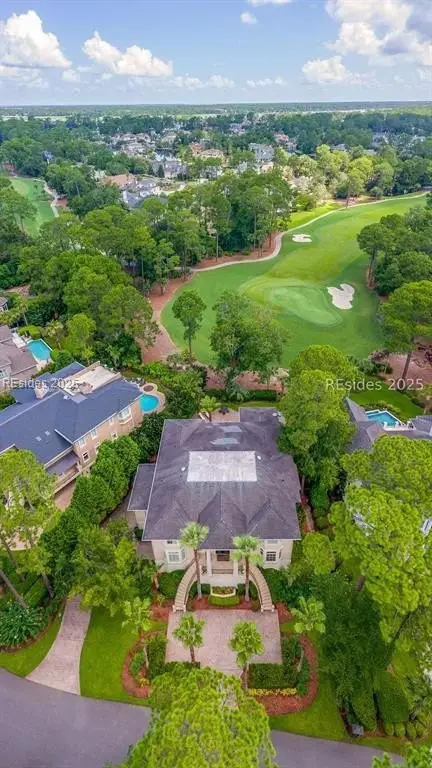 Welcome to this exceptional estate in Wexford, blending grand design with everyday comfort and luxury. A dramatic two-story foyer sets the tone as you enter, leading to a spacious living room, formal dining room with elegant padded acoustic silk wallpaper, and a private office with its own half bath. The heart of the home is a beautifully open kitchen, family, and breakfast area perfect for both casual living and entertaining. The expansive primary suite is a true retreat, offering dual walk-in closets, a separate lighted shoe closet, and a built-in safe all with long fairway views just beyond the 7th green. Also on the main level are a second powder room and a spacious laundry. Upstairs, you'll find three large en-suite bedrooms, a second laundry room, and a fully equipped home theater with a bar, as well as a third half-bath. The lower level offers fun and functionality, featuring a fully finished rec and play area, home gym, full bath, generous storage, an oversized 3-car garage, and 3 stop elevator. Step outside to the screened-in porch with a bar and built-in grill ideal for poolside entertaining. The private pool and fire pit area complete this serene Lowcountry setting. This home truly has everything. Wexford offers world-class amenities, including golf, tennis, pickleball, croquet, a private marina, two pools, and more. One of Hilton Heads most exclusive gated communities.