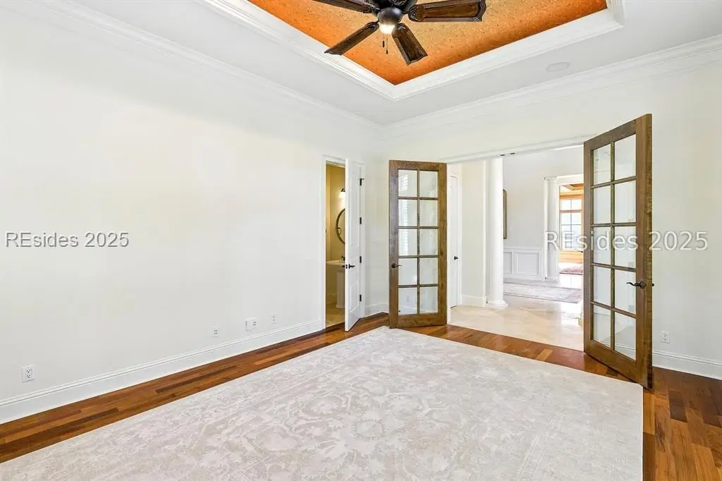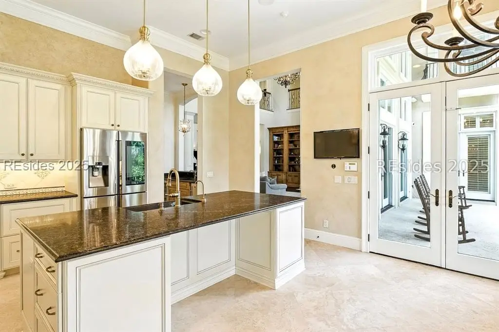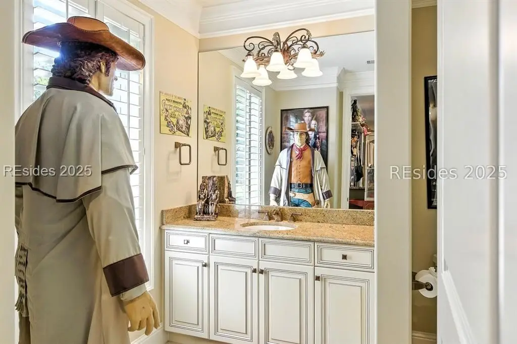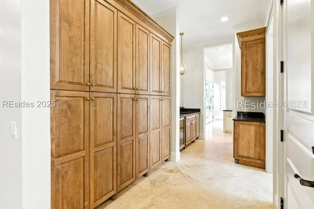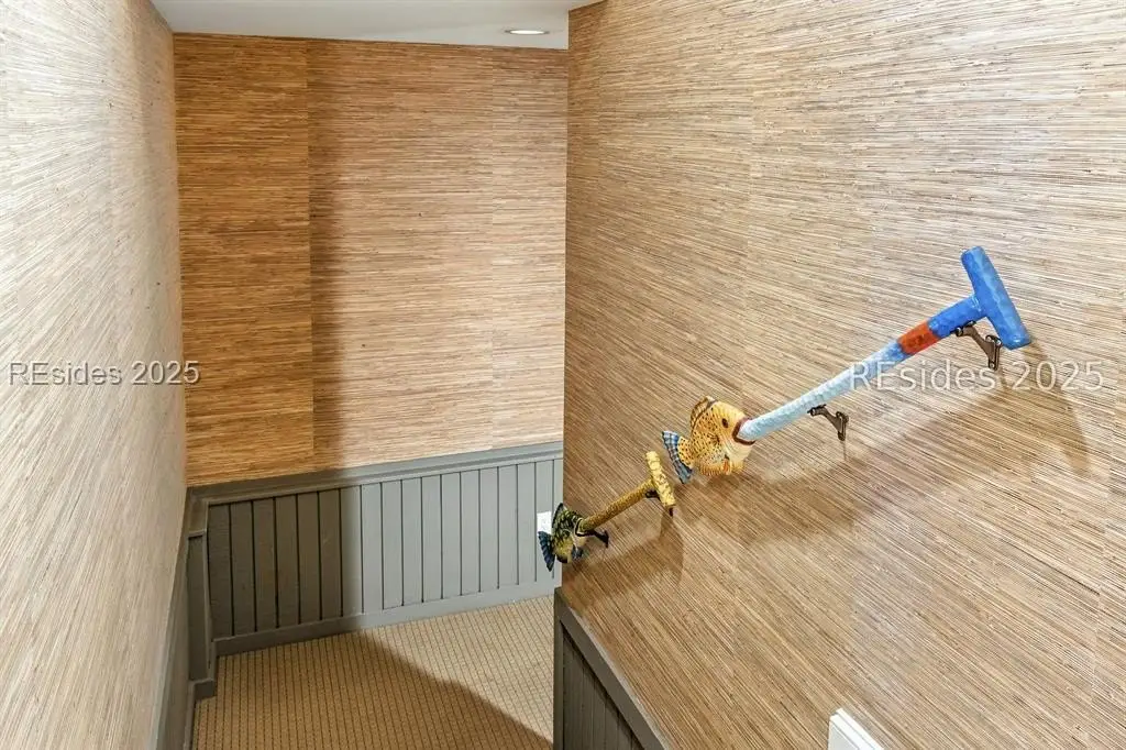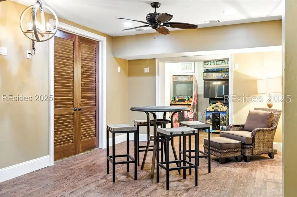 Welcome to this exceptional estate in Wexford, blending grand design with everyday comfort and luxury. A dramatic two-story foyer sets the tone as you enter, leading to a spacious living room, formal dining room with elegant padded acoustic silk wallpaper, and a private office with its own half bath. The heart of the home is a beautifully open kitchen, family, and breakfast area perfect for both casual living and entertaining. The expansive primary suite is a true retreat, offering dual walk-in closets, a separate lighted shoe closet, and a built-in safe all with long fairway views just beyond the 7th green. Also on the main level are a second powder room and a spacious laundry. Upstairs, you'll find three large en-suite bedrooms, a second laundry room, and a fully equipped home theater with a bar, as well as a third half-bath. The lower level offers fun and functionality, featuring a fully finished rec and play area, home gym, full bath, generous storage, an oversized 3-car garage, and 3 stop elevator. Step outside to the screened-in porch with a bar and built-in grill ideal for poolside entertaining. The private pool and fire pit area complete this serene Lowcountry setting. This home truly has everything. Wexford offers world-class amenities, including golf, tennis, pickleball, croquet, a private marina, two pools, and more. One of Hilton Heads most exclusive gated communities.