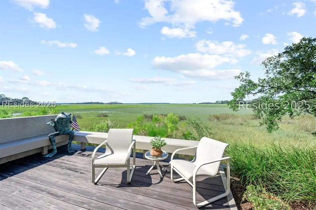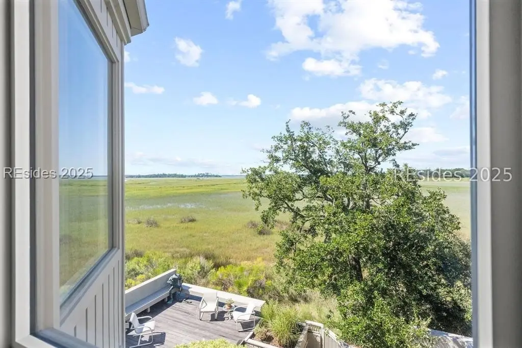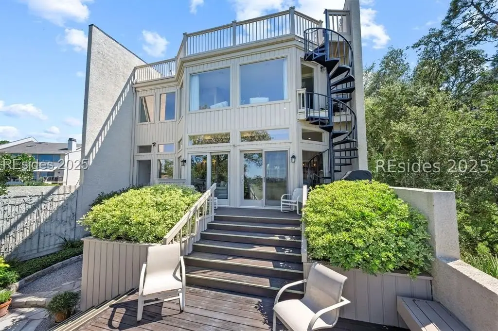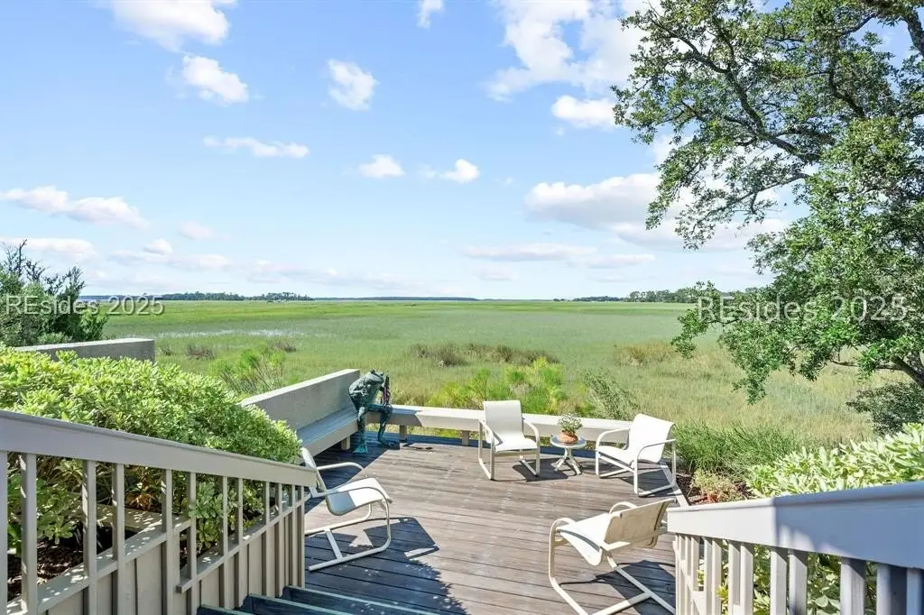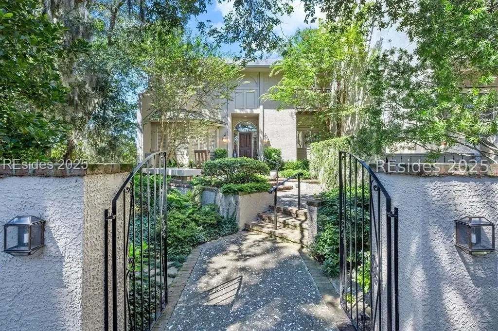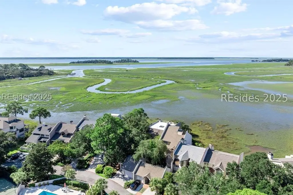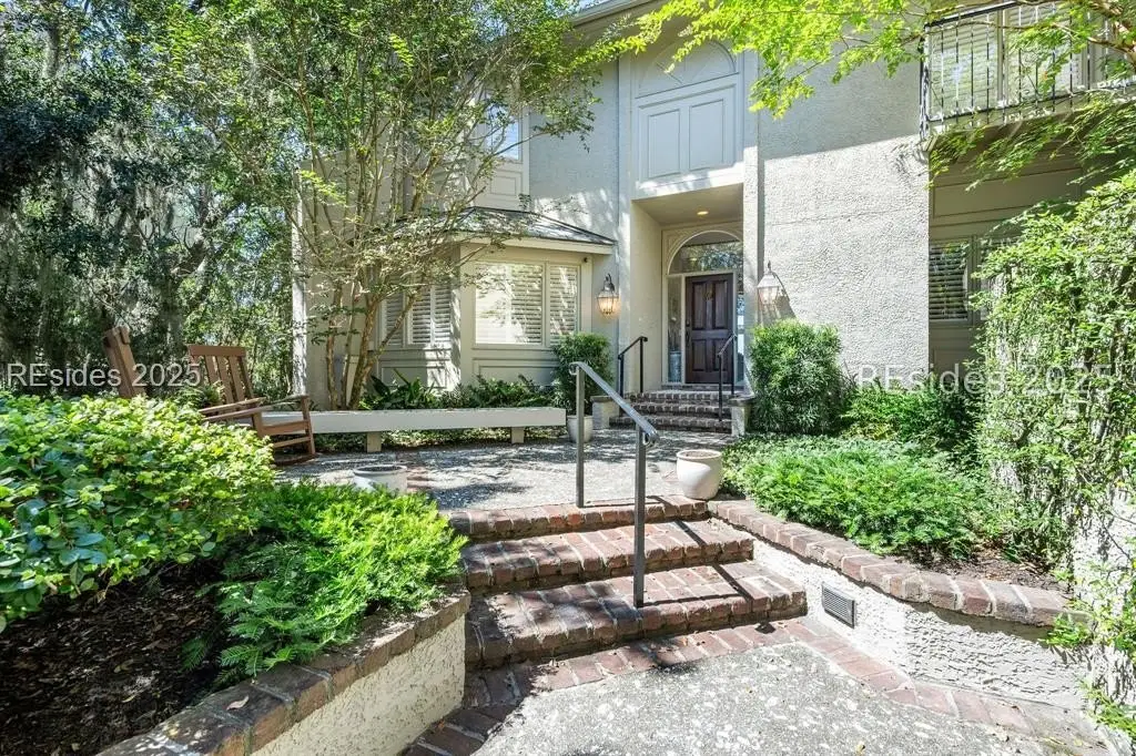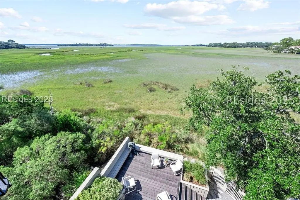 Enjoy breathtaking marsh views and everchanging sunsets from this stunning residence in the private Oyster Landing Club of Sea Pines. This beautifully maintained home blends Lowcountry charm with modern updates. The gated courtyard welcomes you with oyster shell and brick steps while the interior features crown molding, plantation shutters, antique heart pine flooring, & elevator on the first level. The gourmet kitchen boasts custom cabinetry, granite countertops, 2025 Bosch & GE Café appliances and opens to a dining room and spacious great room. The great room offers panoramic marsh views, gas fireplace, built-ins, and a granite dry bar with ice maker. A first-floor office, powder room, and walk-in storage add function and ease. Upstairs includes two guest suites with shared bath, laundry room, and the owners suite with spectacular marsh views, fireplace, massive custom closet, and access to both a private deck and rooftop observation deck. The oversized garage with carport/finished room above offers excellent storage or flex space. Oyster Landing Club is a very special neighborhood offering pool and tennis delivering the ideal Sea Pines lifestyle .