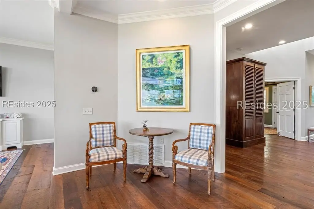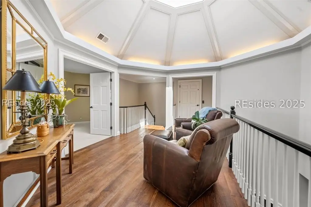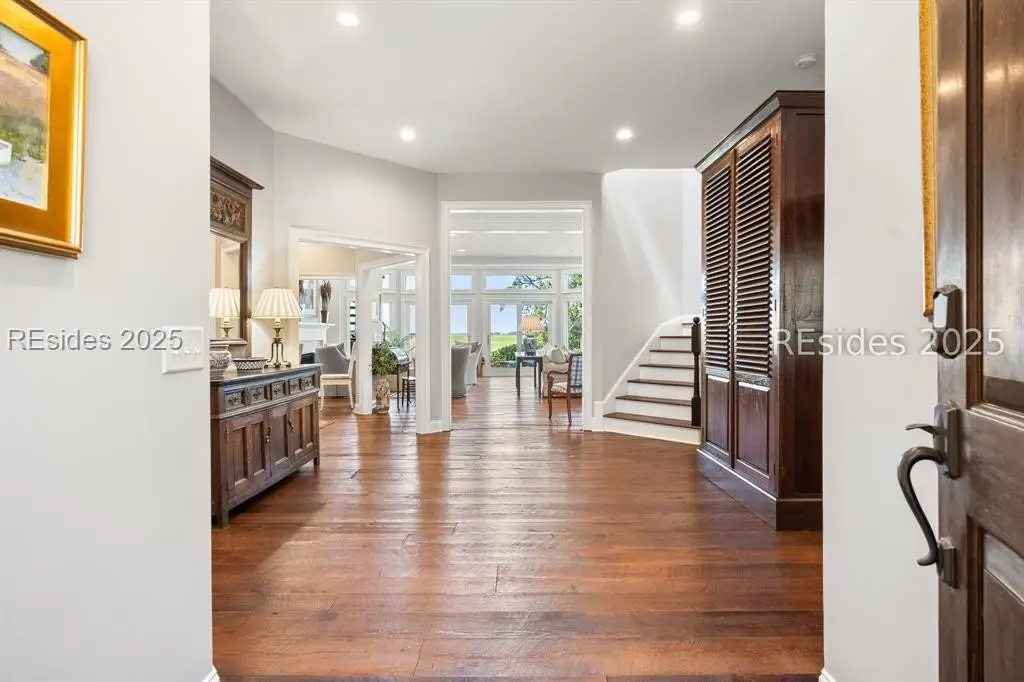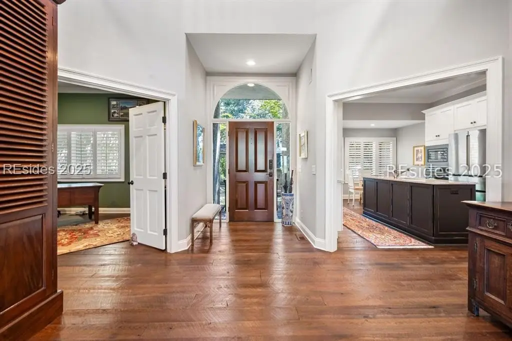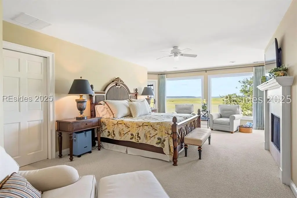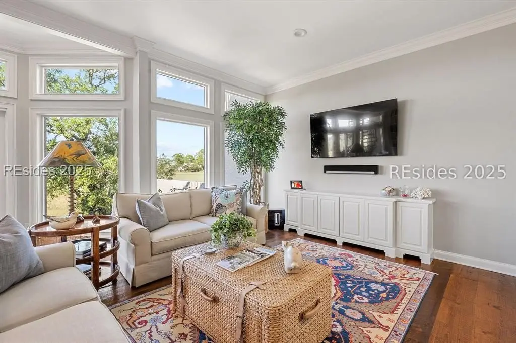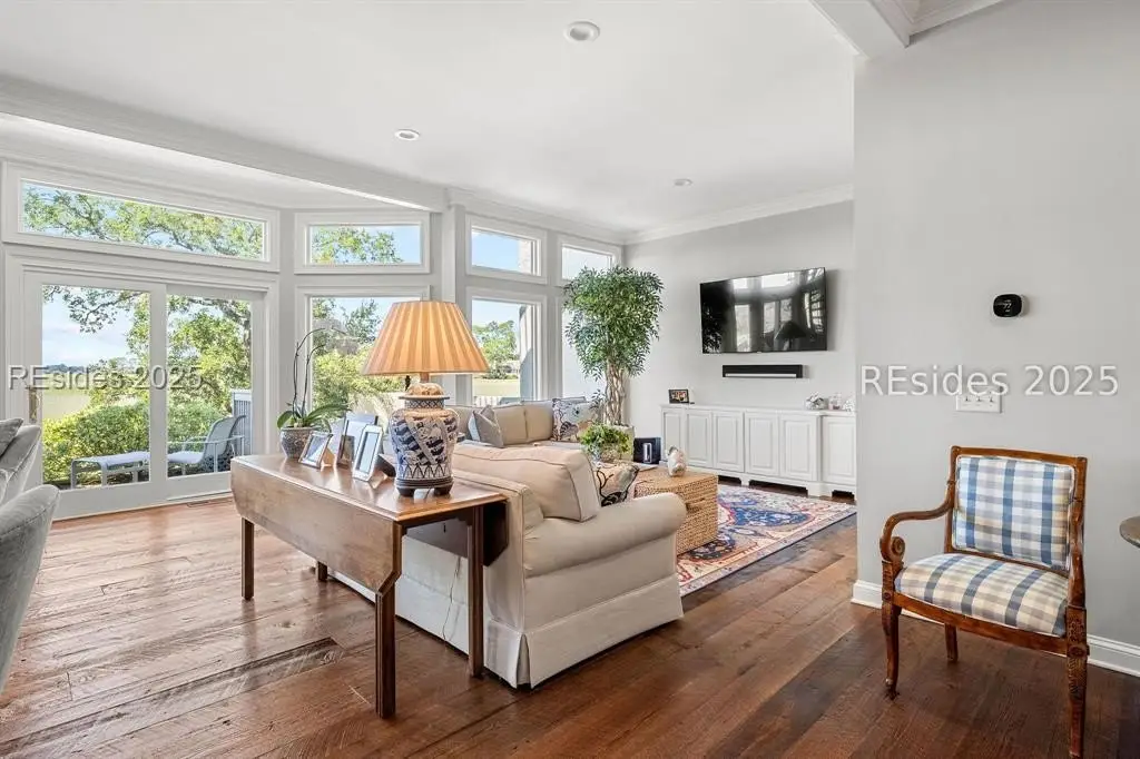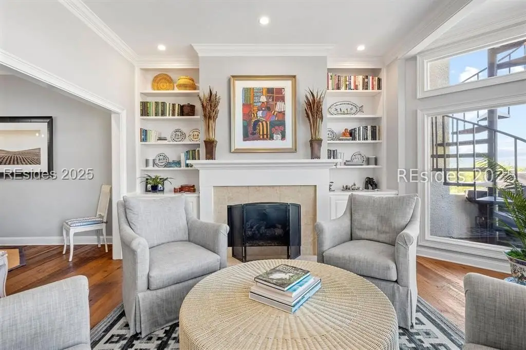 Enjoy breathtaking marsh views and everchanging sunsets from this stunning residence in the private Oyster Landing Club of Sea Pines. This beautifully maintained home blends Lowcountry charm with modern updates. The gated courtyard welcomes you with oyster shell and brick steps while the interior features crown molding, plantation shutters, antique heart pine flooring, & elevator on the first level. The gourmet kitchen boasts custom cabinetry, granite countertops, 2025 Bosch & GE Café appliances and opens to a dining room and spacious great room. The great room offers panoramic marsh views, gas fireplace, built-ins, and a granite dry bar with ice maker. A first-floor office, powder room, and walk-in storage add function and ease. Upstairs includes two guest suites with shared bath, laundry room, and the owners suite with spectacular marsh views, fireplace, massive custom closet, and access to both a private deck and rooftop observation deck. The oversized garage with carport/finished room above offers excellent storage or flex space. Oyster Landing Club is a very special neighborhood offering pool and tennis delivering the ideal Sea Pines lifestyle .
