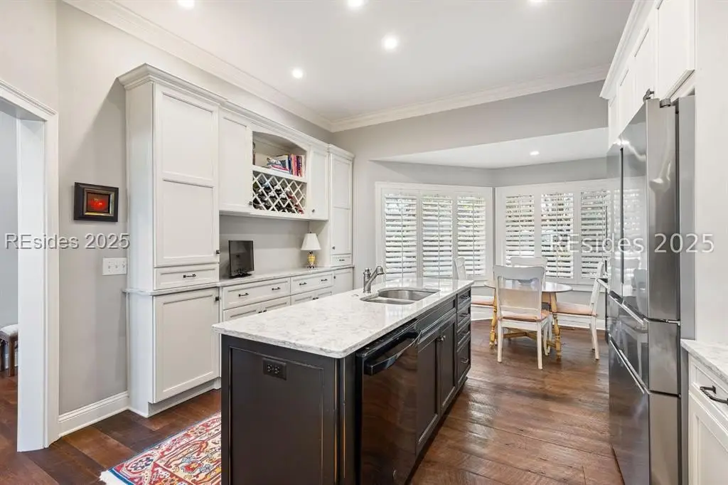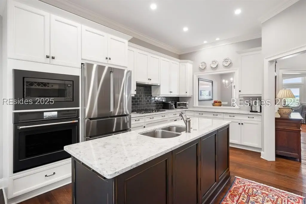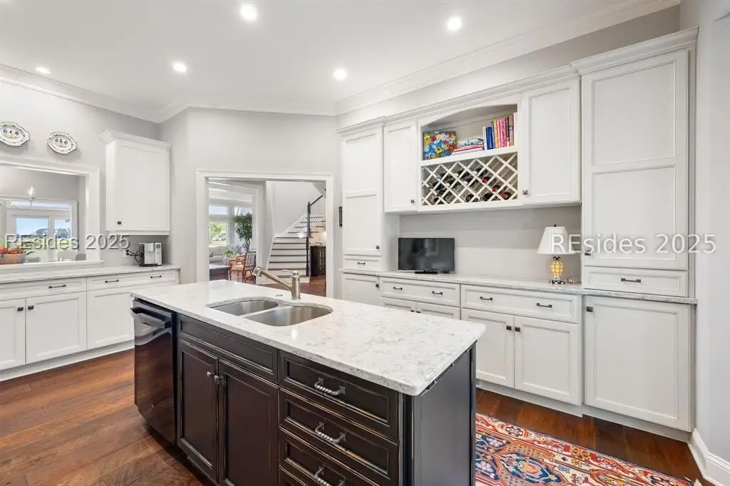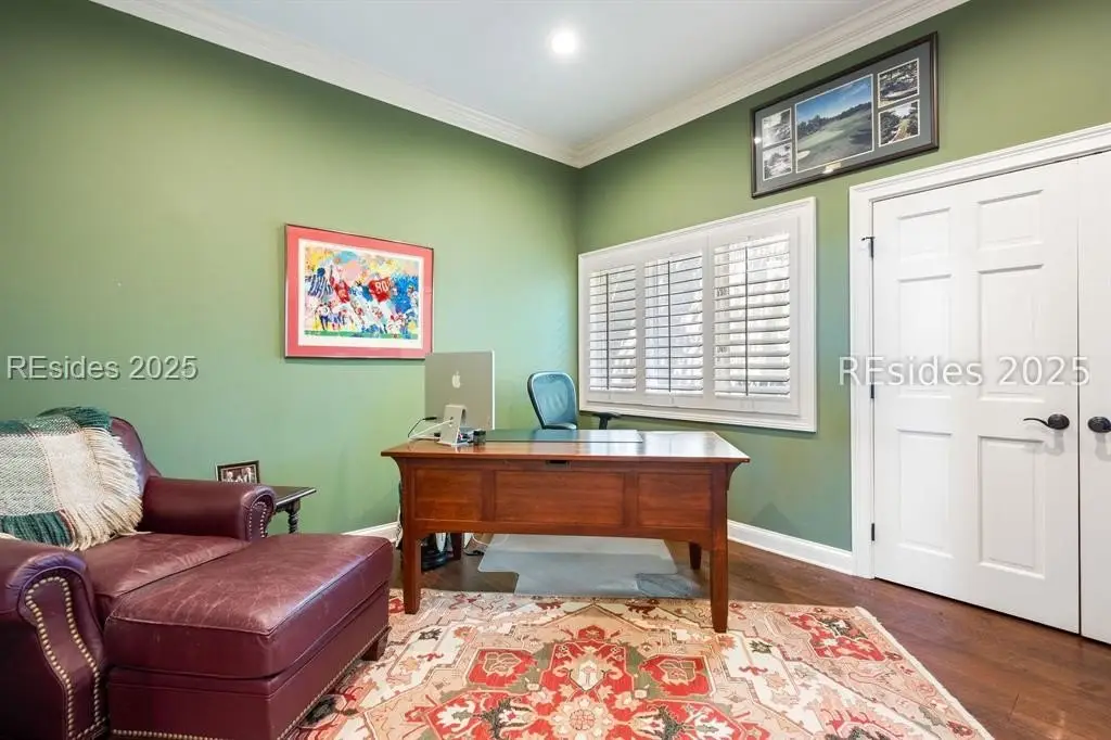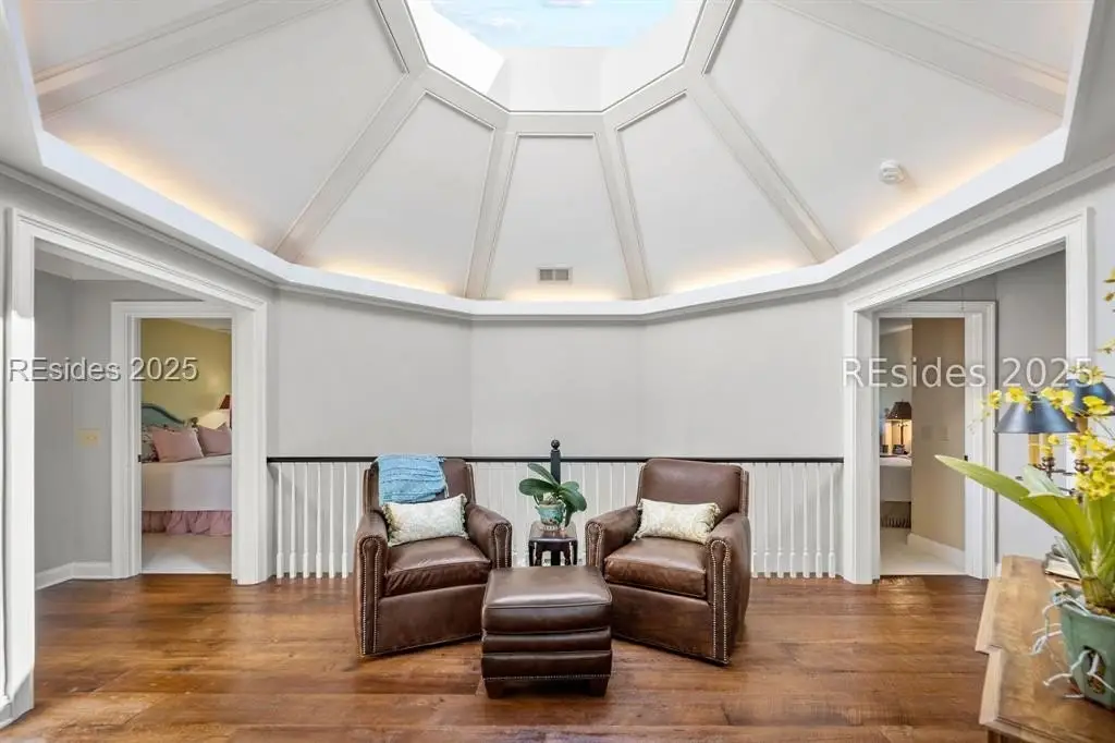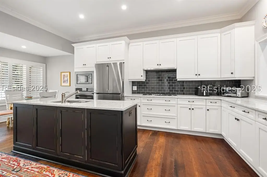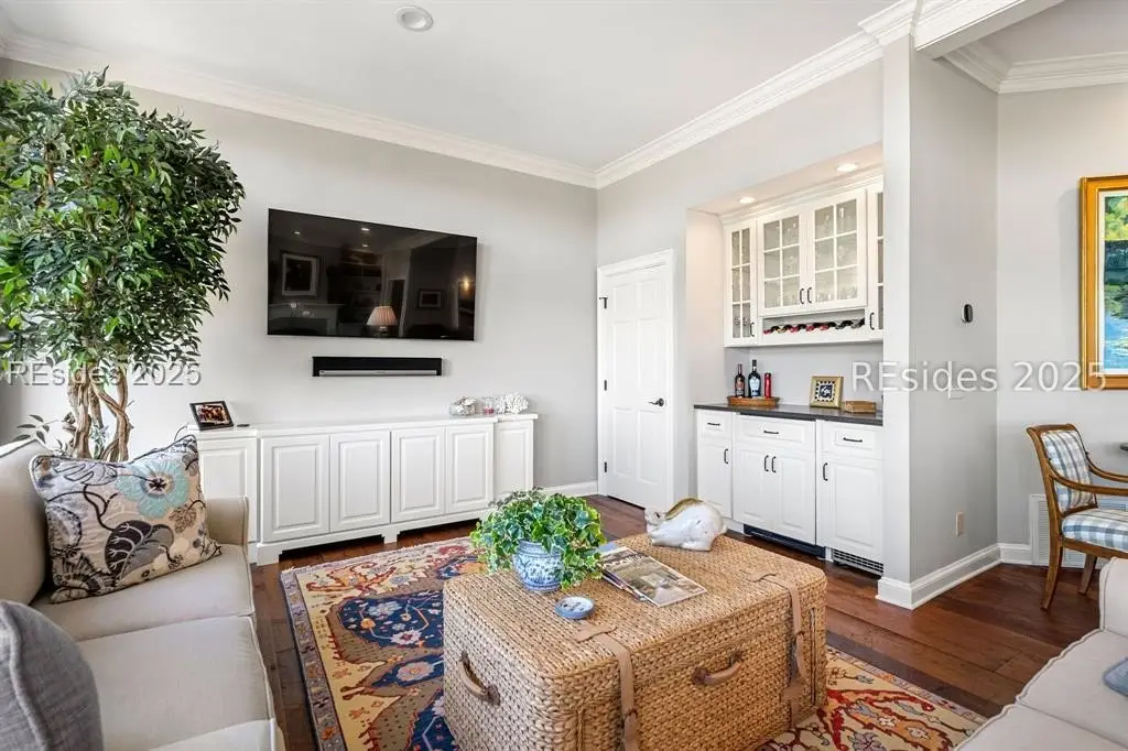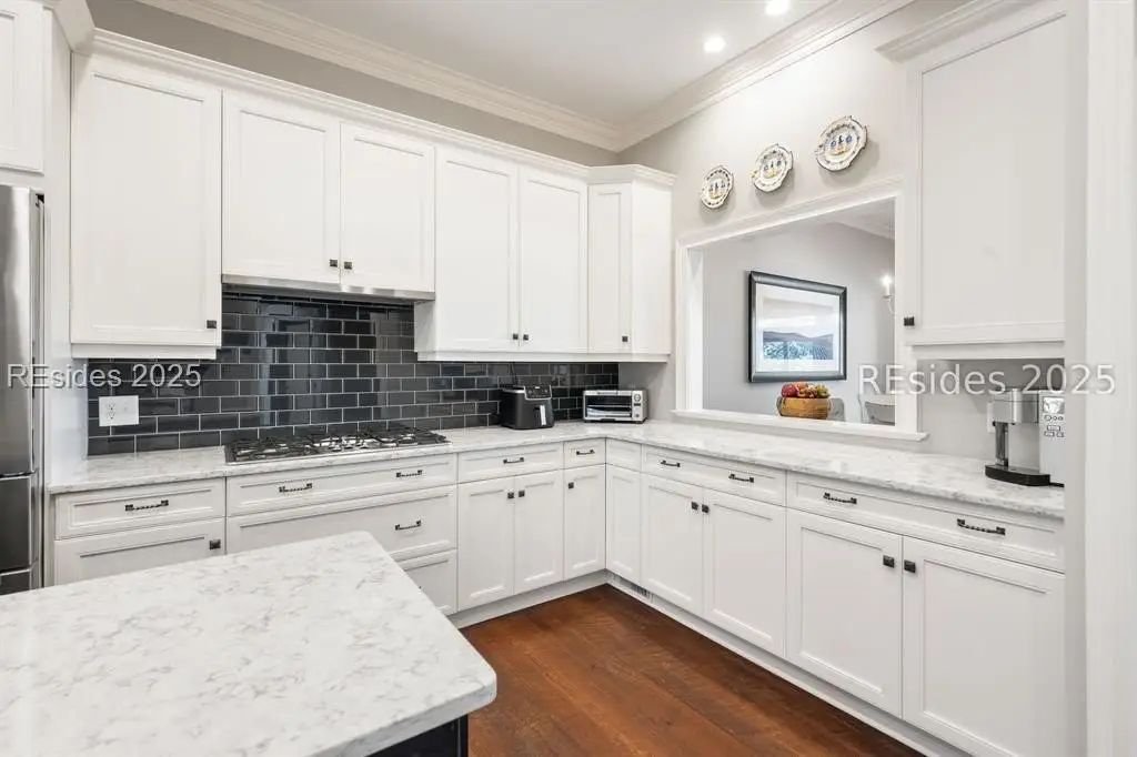 Enjoy breathtaking marsh views and everchanging sunsets from this stunning residence in the private Oyster Landing Club of Sea Pines. This beautifully maintained home blends Lowcountry charm with modern updates. The gated courtyard welcomes you with oyster shell and brick steps while the interior features crown molding, plantation shutters, antique heart pine flooring, & elevator on the first level. The gourmet kitchen boasts custom cabinetry, granite countertops, 2025 Bosch & GE Café appliances and opens to a dining room and spacious great room. The great room offers panoramic marsh views, gas fireplace, built-ins, and a granite dry bar with ice maker. A first-floor office, powder room, and walk-in storage add function and ease. Upstairs includes two guest suites with shared bath, laundry room, and the owners suite with spectacular marsh views, fireplace, massive custom closet, and access to both a private deck and rooftop observation deck. The oversized garage with carport/finished room above offers excellent storage or flex space. Oyster Landing Club is a very special neighborhood offering pool and tennis delivering the ideal Sea Pines lifestyle .