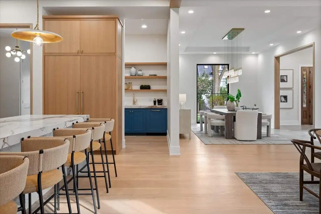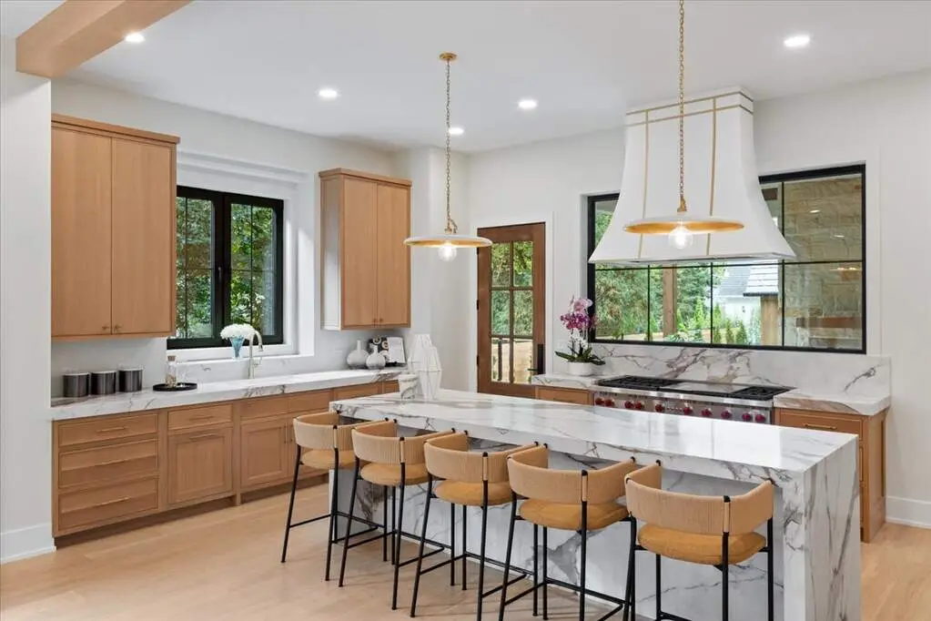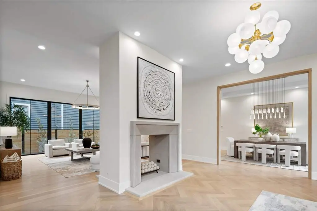 Designed by Richard Olsen of G.O. Architectural Design and Loch Alainn Construction LLC, this newly constructed 7-bedroom, 7.5-bath residence embodies the charm of a Belgian-style farmhouse with the refinement of modern luxury living, exuding timeless sophistication. Natural materials, warm wood tones, and crisp white brick create a striking exterior that welcomes you into a home designed for both beauty and function. Step inside the double-wide front door, to your Grand Foyer which sets the tone for the entire home; showcasing Chevron White Oak hardwood flooring, 12-foot ceilings, and a limestone double-sided fireplace. The open floor plan seamlessly connects the well-appointed kitchen, expansive great room, and elegant dining areas - all perfect for entertaining. Floor to ceiling windows drench the home with sunlight. A first-floor in-law suite offers convenience and privacy, providing comfort and style for family and guests alike. The gourmet kitchen is a true work of art, featuring a 10 ft. waterfall edge island, custom range hood designed in a picture like setting in front of the windows, to maximize the natural light. Subzero Refrigerator and Freezer, additional refrigerator and freezer drawers, Bosch dishwasher, Wolf double oven range. The Scullery pantry includes additional food storage, dishwasher and prep space - the perfect addition for entertaining guests. Escape to your primary bedroom retreat, with cathedral ceilings, fireplace, spa like bathroom with heated floors, wet room with Kohler shower and soaking tub. All second floor bedrooms are en-suite, and the third floor bedroom suite is perfect sanctuary for guests or an au pair. Retreat to the lower level, where a fully finished basement features a state-of-the-art Media room, 7th bedroom or fitness room, and full bath. Ample recreation space allows for a custom wet bar, with quartz counters, refrigerator and freezer drawers, and game area. Outdoor living is equally impressive - a covered terrace with a stone gas fireplace invites gatherings year-round, framed by lush landscaping and architectural detailing that elevates the home's European-inspired design. Every inch of this exceptional home showcases meticulous craftsmanship, curated finishes, and a serene sense of balance - a rare blend of rustic charm and modern sophistication in one of Hinsdale's most coveted settings.