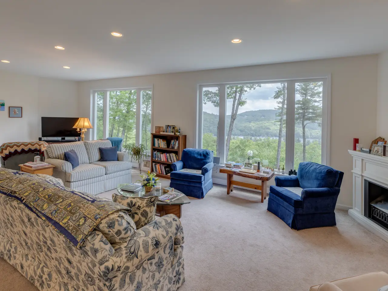 “Whitetail Woods” sits peacefully on 43 acres with expansive views of Little Squam Lake. Built in 2018, this home offers single-level living and a bonus attached one-bedroom apartment perfect for guests. All three bedrooms are suites with private bathrooms, offering a variety of living options. Large windows and high ceilings allow the sun to pour into the large living area, and the views of the Lake and Mountains behind never get old. Have your morning coffee in the attached screened room with a view. A large walk-out level basement offers storage space and a wood shop for tinkering on projects. The whole-house generator provides peace of mind, and mini splits offer AC cooling. Forty-three total acres on two abutting lots provide ample room for privacy and nature observation. Close to downtown Holderness and all Squam activities. Whitetail Woods makes a perfect primary or vacation home in the heart of NH. Call today to see this stunning property!