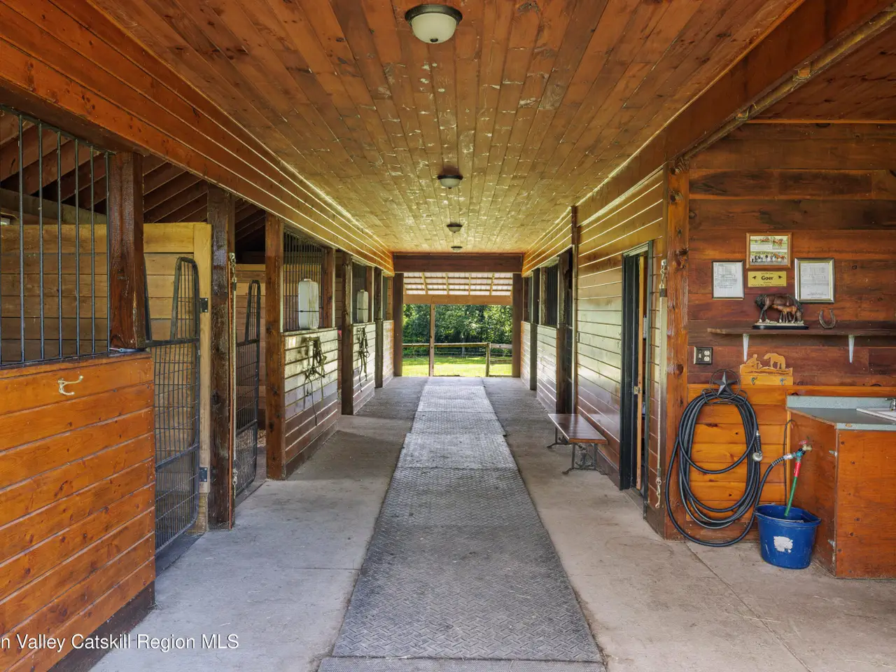Introducing Long View Farm & Stable, a convenient yet tranquil Equestrian hide-way just minutes from the culture, shopping and dining of Hudson, New York. Long View Farm provides the perfect blend of Hudson Valley country serenity with an easy connection to Amtrak to New York City and Albany. A 1476,SF residence with detached two car garage, Coach house with a 576SF apartment and studio space, a six-stall stable, pastures and a picturesque swim pond with mountain and apple orchard views in all directions make this property exceptional. Situated at the crest of the 24-acre parcel is a 2-Bedroom, 2-Bath Adirondack contemporary residence with a ground level Primary Bedroom and Bath. Great open Living/Dining areas with wrap around windows, a soaring cathedral ceiling, and a wood burning stone fireplace with an overlook loft library. The two bedrooms are spacious and the dedicated Office/Library could easily be converted into a third bedroom. The surrounding land features mature perineal plantings and trees with a gently sloping lawn down to the pasture and barn. The panoramic ''pinch me'' views of the majestic Catskill Mountains and the surrounding rolling farmlands from every room are very captivating or take it all in with a morning coffee or relaxing at the end of day on the wrap-around porch taking in the view of the horses, ponds, surrounding orchards and the dazzling sunsets. Convenient detached 2-car garage for vehicles and gardening equipment. The separate Coach House offers 2.5 car garage with workshop, bathroom and laundry room on the ground level. Upstairs is a complete 1-Bedroom apartment that is currently used as an popularly booked AIRBNB.As a fully operational equestrian farm, Long View Farm & Stable boasts exceptional amenities including a 6-stall, 3200SF horse barn. Yellow Pine interior with two Cherry lined Stalls for foaling, four Oak lined stalls, a Yellow Pine interior tack room equipped with electric and water, Ample loft space for hay storage or office build out. There is also a double Run-In for shelter tucked away at the far end of the rolling pasture land. There is enough land for jumping, endurance or cross country courses, If you're an equestrian enthusiast looking for a versatile property with hospitality and boarding income opportunities, (or for an alpaca or llama enthusiast! ) Long View Farm & Stable offers unparalleled functionality, and charm. Come view this unique farm in one of Columbia Counties most sought after locations. And meet the current, very friendly, retired Thoroughbred residents, ''Renee'' and ''Queen of The Night''. Trailering convenience to HITS in Saugerties, Saratoga and Berkshire equestrian venues. Located under 2.5 hours from NYC.