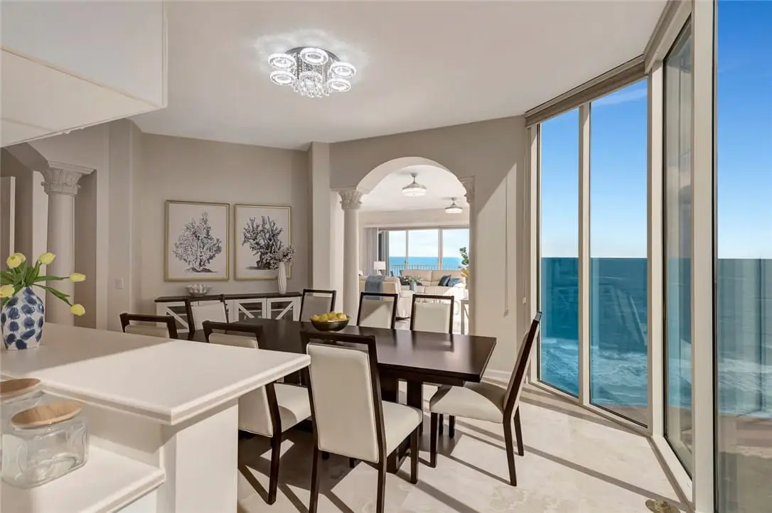 Panoramic ocean views from this lovely penthouse condo. Elevator opens to your own private foyer. All major rooms have ocean or river views. The living room has floor to floor windows w/direct ocean views & a gas fireplace. Island kitchen with a breakfast nook has both river & ocean views. Oceanfront Master bedroom w/balcony access, walk-in closet, full bath + half-bath. Guest bedrooms have lovely river views. Private 1 & 2 car garages. Exercise room, pool, tennis & beach access. Condo Maint. $10,065 Quarterly, 1-Car garage 130 Q, 2-car garage $250 Q, storage 22 Q. Sizes approx/subj. to error.