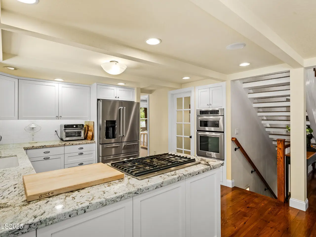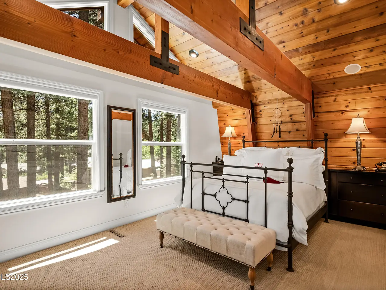 This stunning mountain home offers an ideal blend of luxury and comfort. Situated on a landscaped, level lot, featuring gourmet kitchen with granite counters. Welcoming living room with gas fireplace provides warmth and relaxation, a spacious recreation room opens to a patio with a firepit, ideal for outdoor gatherings year-round. The expansive backyard includes a large grass area, perfect for family activities and enjoying the serene mountain surroundings. High vaulted ceilings and marble floors in the primary bathroom add elegance. Features three full bathrooms, located on separate levels, along with an office offering deck access and a gym. Finished garage with epoxy-coated flooring and paver driveway adds functionality and beauty. Conveniently located near IVGID beaches and the Hyatt, with easy access to local amenities while offering a peaceful retreat in the heart of the mountains. The listing agent is related to the seller, and the seller is a NV broker.