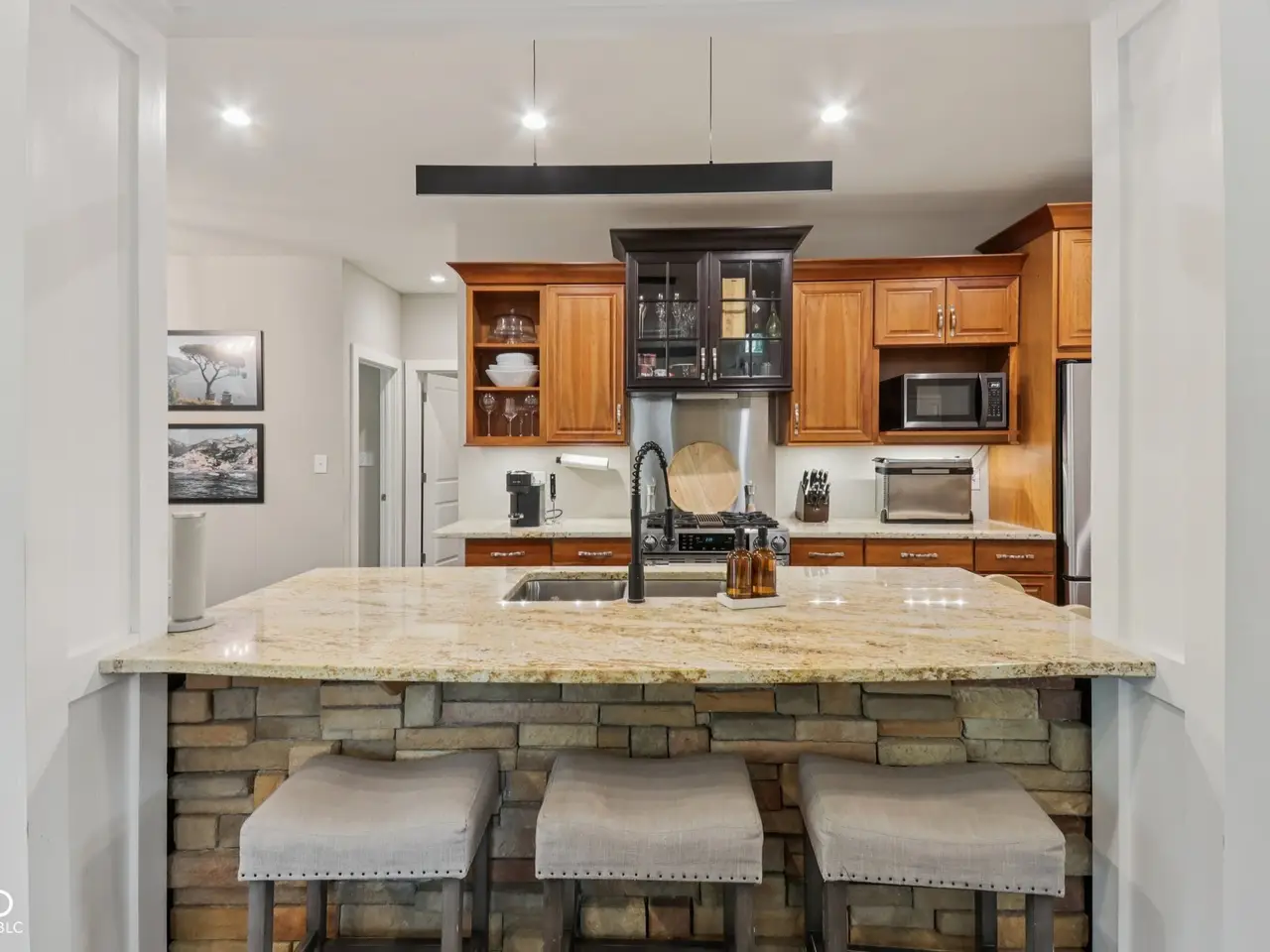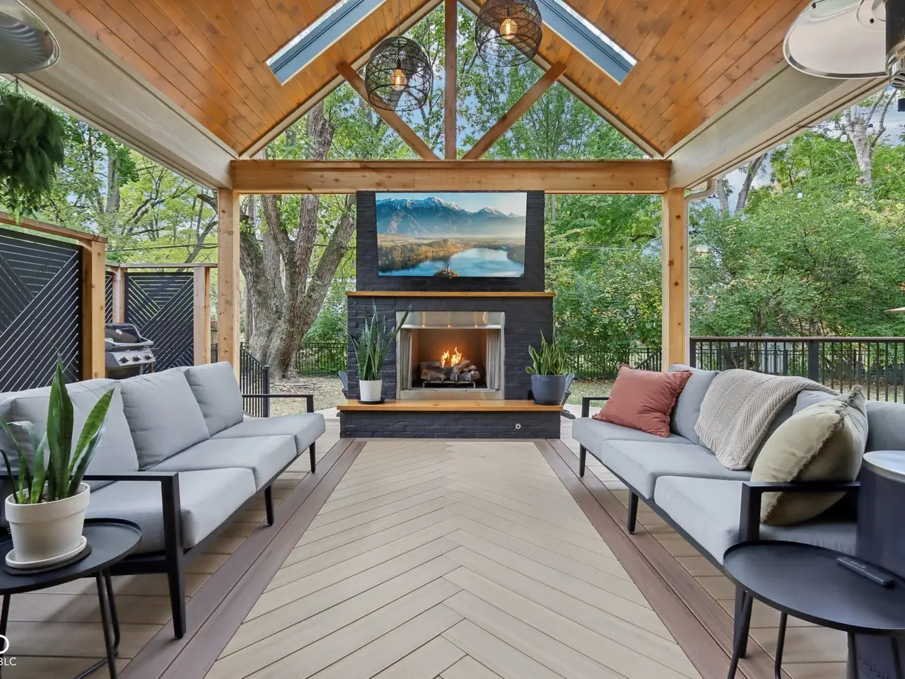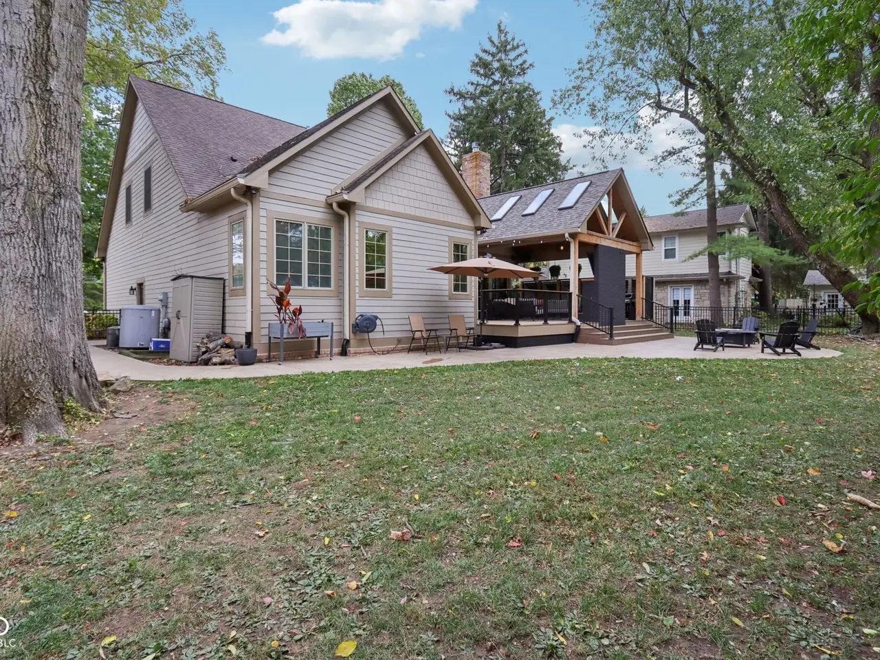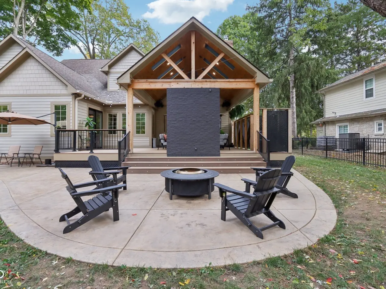 This amazing, eye-catching home in Washington Township offers the perfect blend of charm and modern comfort. From the moment you arrive, the curb appeal draws you in, the interior will have you head over heels and the newly added covered patio will make you fall in love with the magnificent outdoor space. The main-floor primary suite is tucked away like a true retreat, while three spacious upstairs bedrooms provide endless possibilities for family, guests, home studio or loft(bedroom 4).The expansive finished basement with a large daylight egress window, built-in wet bar, and full bath creates an inviting space for entertaining, a cozy movie night or simply relaxing. Step outside from either the primary suite or the living room onto the newly built luxurious covered patio with natural wood cathedral ceiling, skylights and stunning gas fireplace with a modern black brick hearth will keep you coming outside most of the year. The lower stamped concrete patio is also cozy for a relaxing evening or summer gatherings. In addition to the home itself, you are only a very short walk to the Monon Trail, and just minutes from all the shopping, dining, and charm that makes Nora so desirable.