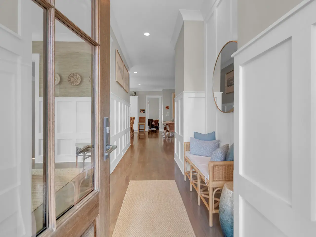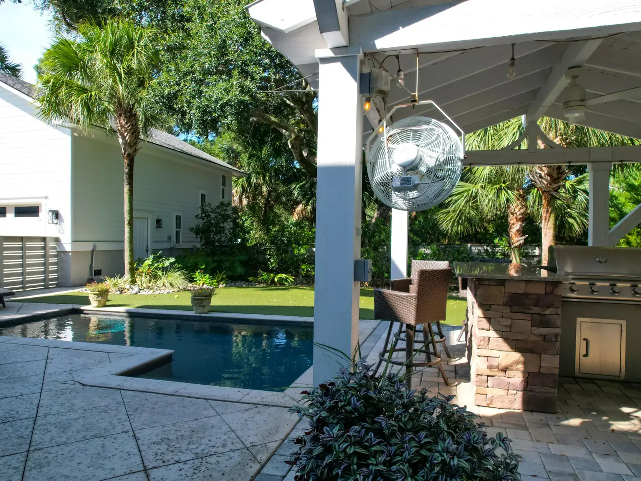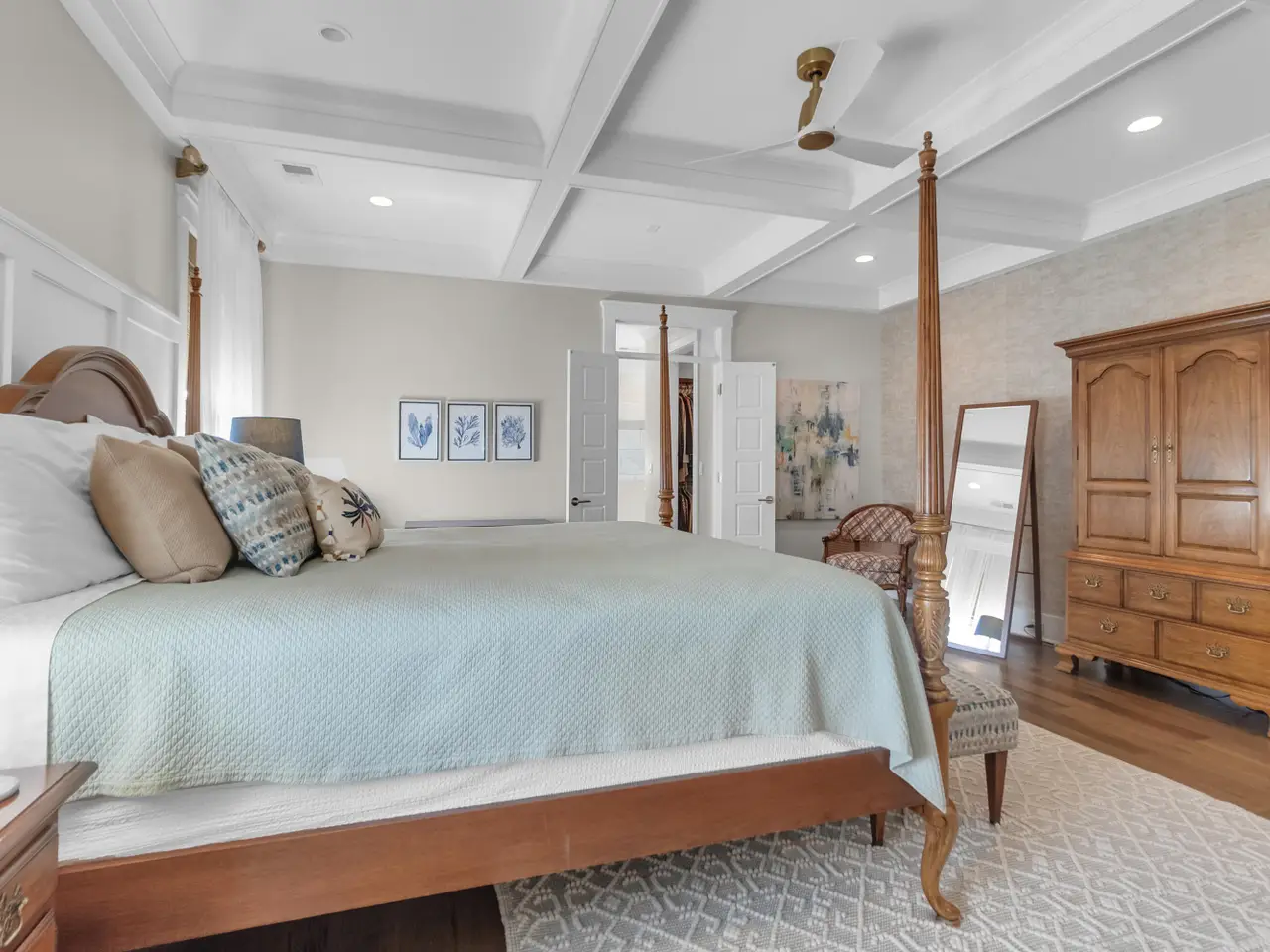 Coastal Luxury with Pool & Beach Access This 5-bedroom, 4.5-bath home combines refined design with thoughtful functionality, just steps from the sand. The open floor plan showcases rich hickory flooring, abundant natural light, and attention to detail throughout. At the heart of the home is the spacious kitchen with marble counters, abundant cabinetry, gas range, a butler's pantry with sink and beverage station that seamlessly flows into the family and dining areas. The first floor also features a private study/office, a separate dining room, and one of two expansive primary suites--ideal for multigenerational living. Upstairs, you'll find the second primary suite plus additional bedrooms for family and guests. The 2nd level also features an open area for gathering,a laundry room withplentiful storage and laundry sink. All of the guest bedrooms feature walk-in closets. One of these has a private bath the other two share a nicely done hall bath. The upstairs primary offers a handsome coffered ceiling, double walk-in closets and a well appointed bath. Then, just step outside where outdoor living takes center stage with a fabulous oasis featuring an in-ground pool, covered patio with a built-in grill, refrigerator, dining bar, tv, and an additional patio area with a true wood-burning fireplacperfect for entertaining year-round. The oversized detached garage includes finished space above, offering endless possibilities for an office, gym, playroom, or studio. All this, with convenient beach access (just through the back gate and less than a block away), makes this property the ultimate blend of elegance, comfort, and coastal convenience.