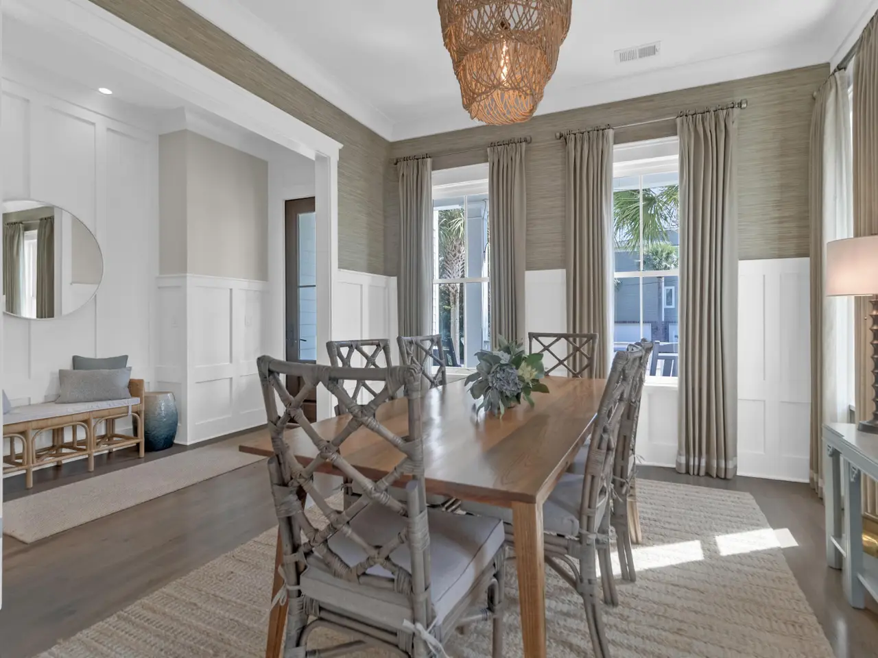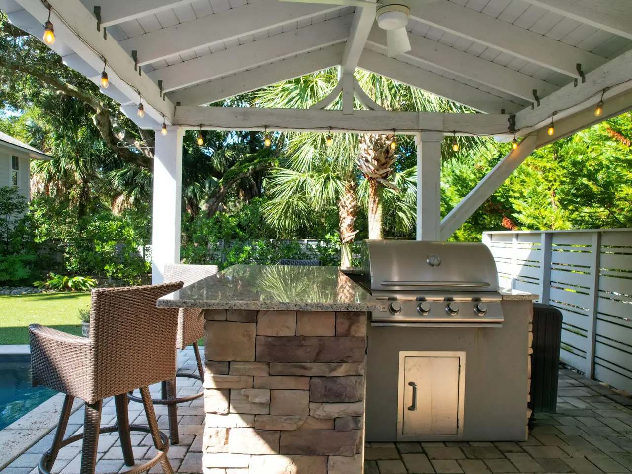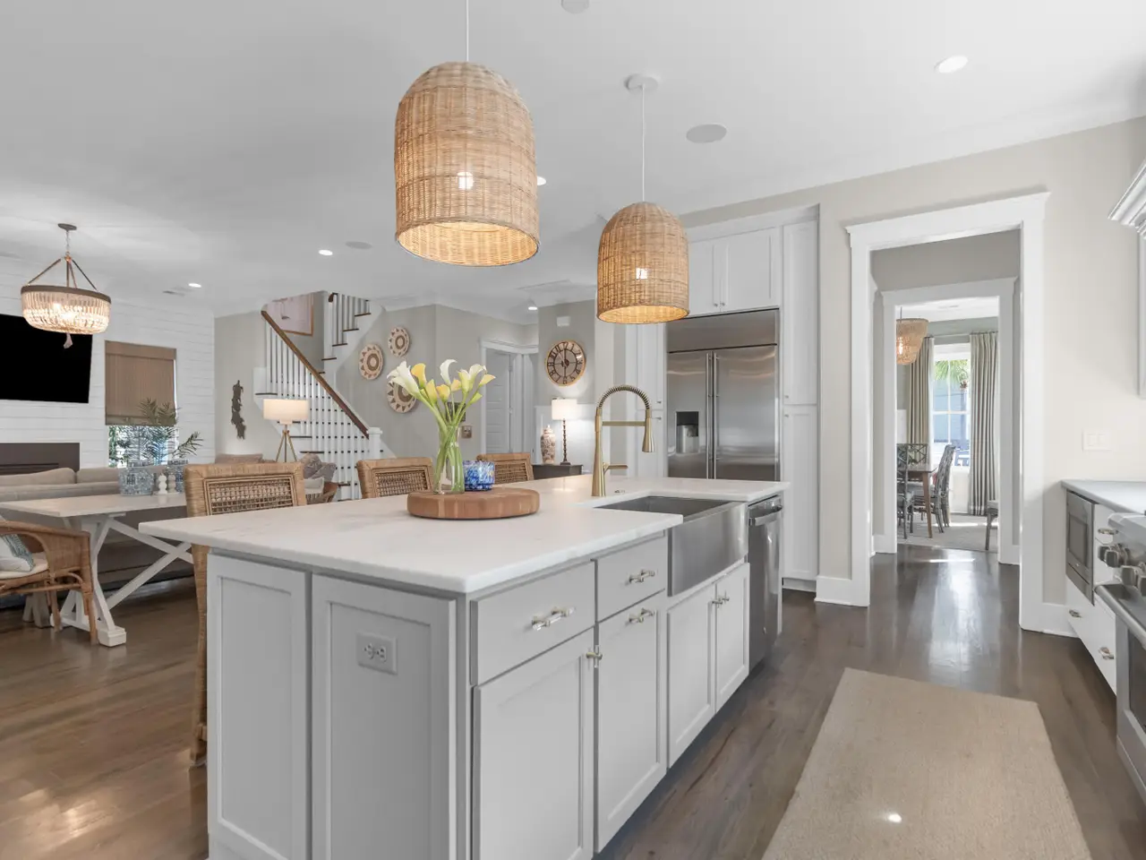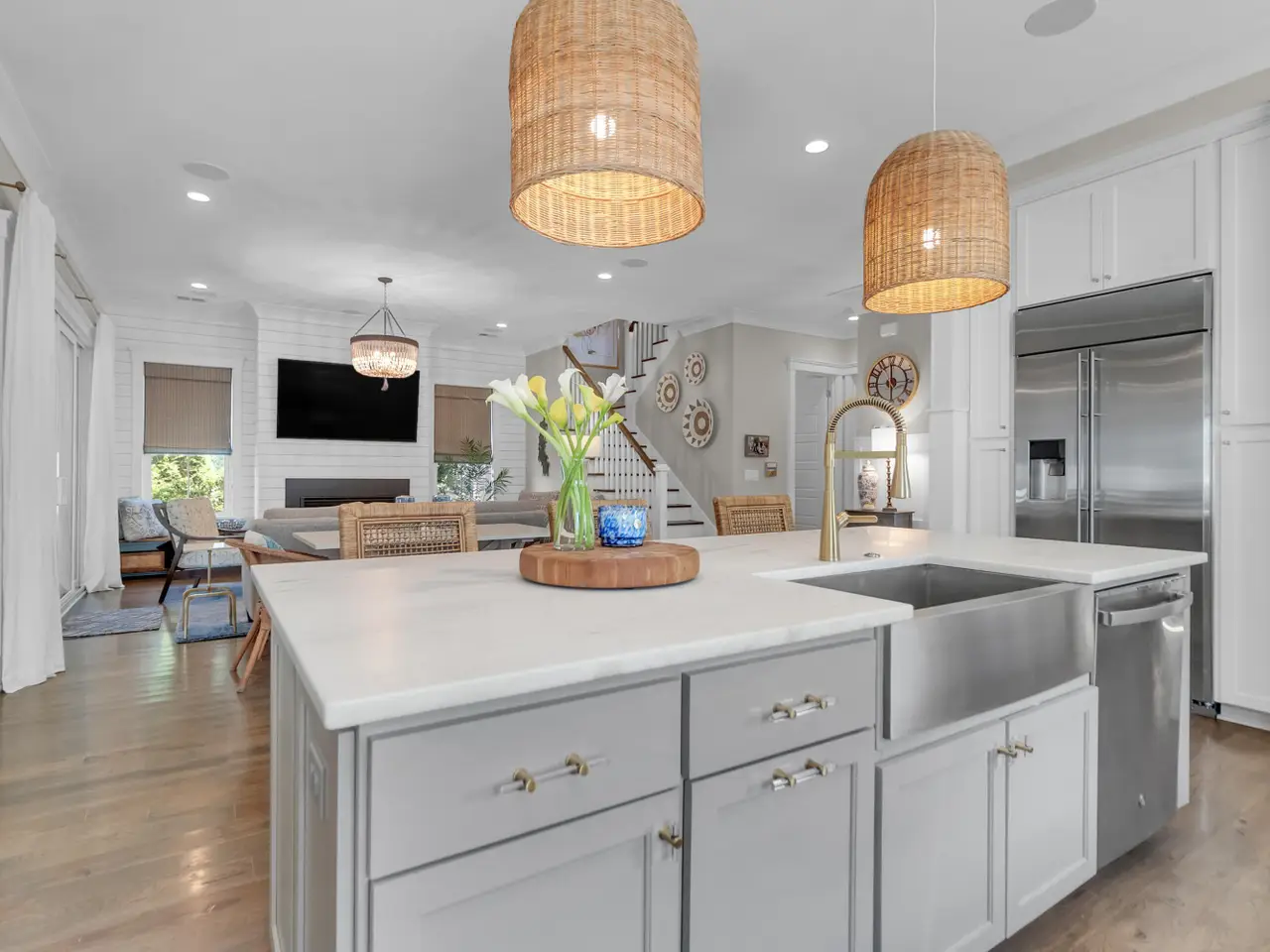 Coastal Luxury with Pool & Beach Access This 5-bedroom, 4.5-bath home combines refined design with thoughtful functionality, just steps from the sand. The open floor plan showcases rich hickory flooring, abundant natural light, and attention to detail throughout. At the heart of the home is the spacious kitchen with marble counters, abundant cabinetry, gas range, a butler's pantry with sink and beverage station that seamlessly flows into the family and dining areas. The first floor also features a private study/office, a separate dining room, and one of two expansive primary suites--ideal for multigenerational living. Upstairs, you'll find the second primary suite plus additional bedrooms for family and guests. The 2nd level also features an open area for gathering,a laundry room withplentiful storage and laundry sink. All of the guest bedrooms feature walk-in closets. One of these has a private bath the other two share a nicely done hall bath. The upstairs primary offers a handsome coffered ceiling, double walk-in closets and a well appointed bath. Then, just step outside where outdoor living takes center stage with a fabulous oasis featuring an in-ground pool, covered patio with a built-in grill, refrigerator, dining bar, tv, and an additional patio area with a true wood-burning fireplacperfect for entertaining year-round. The oversized detached garage includes finished space above, offering endless possibilities for an office, gym, playroom, or studio. All this, with convenient beach access (just through the back gate and less than a block away), makes this property the ultimate blend of elegance, comfort, and coastal convenience.