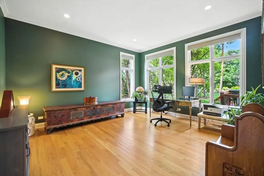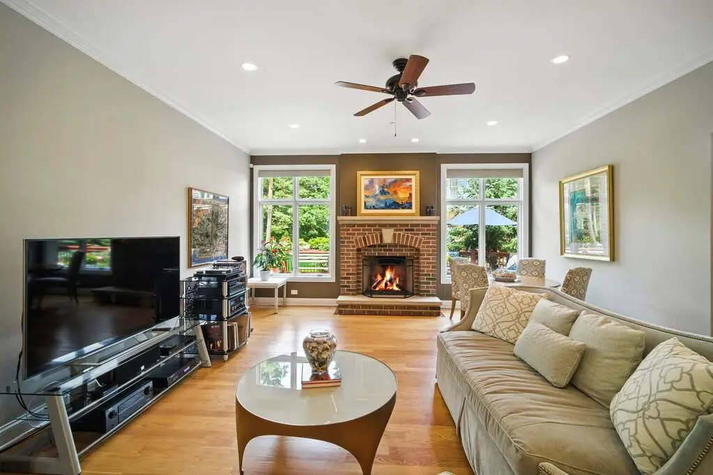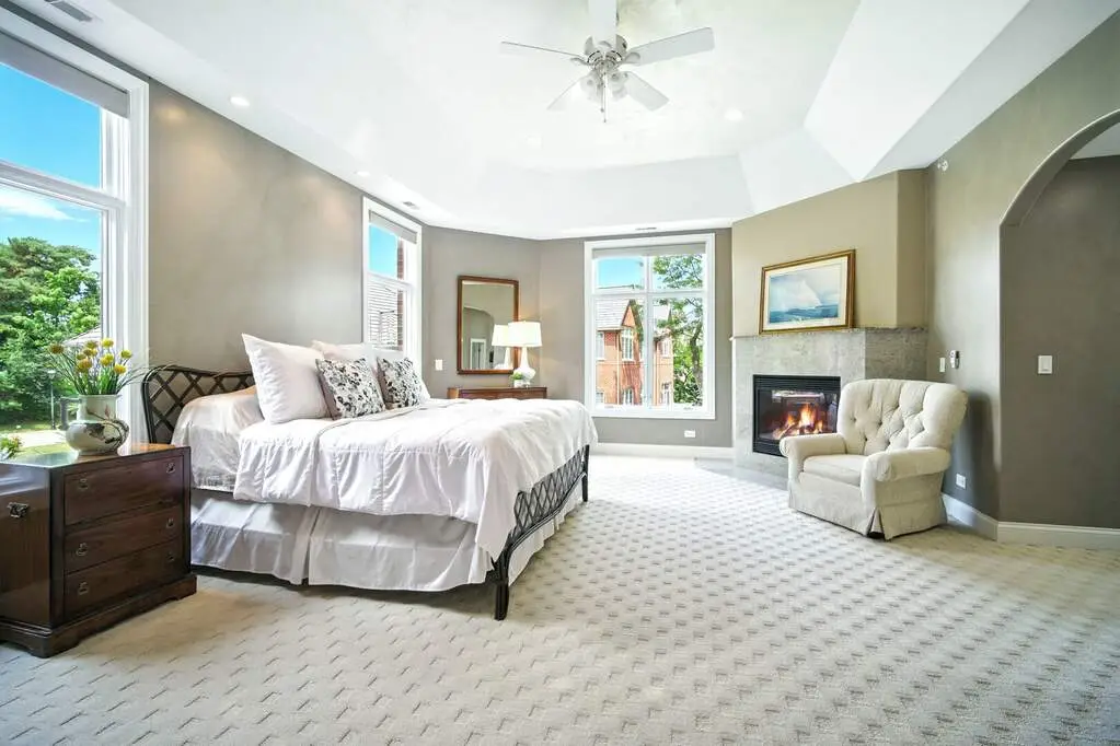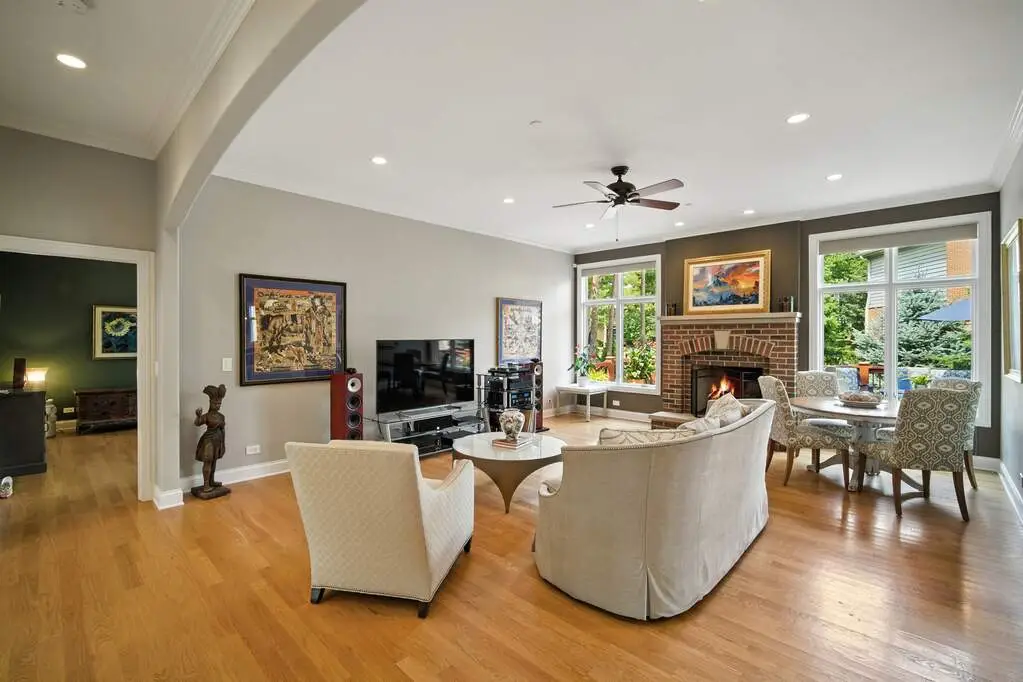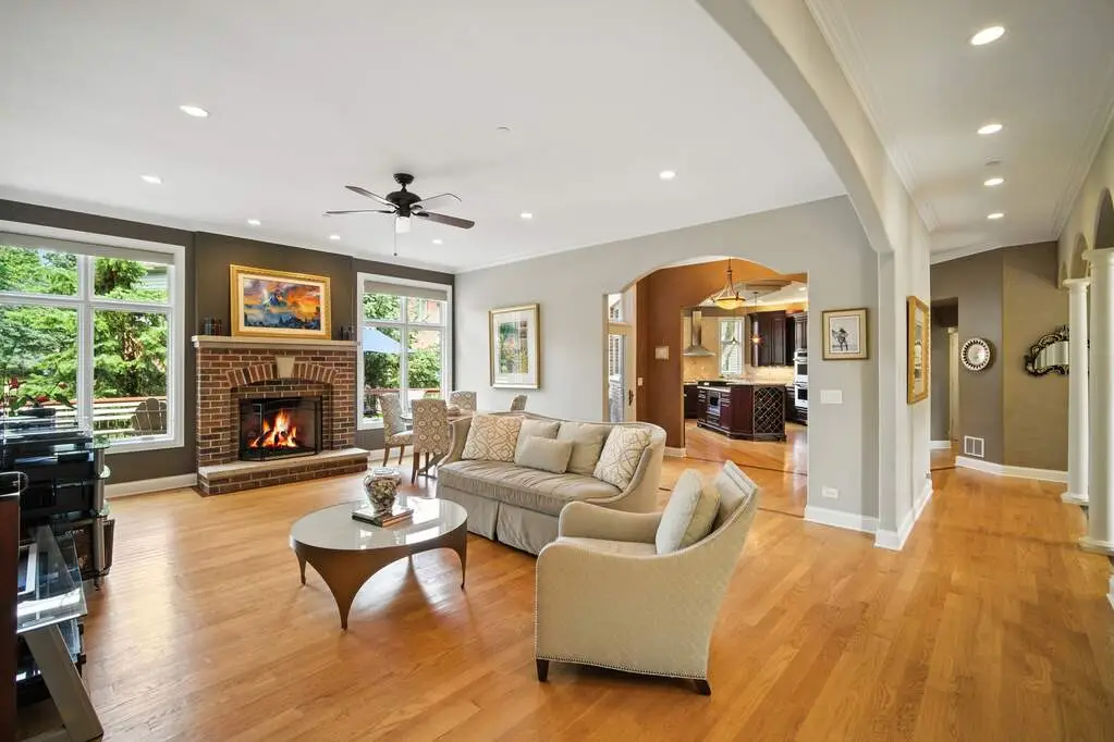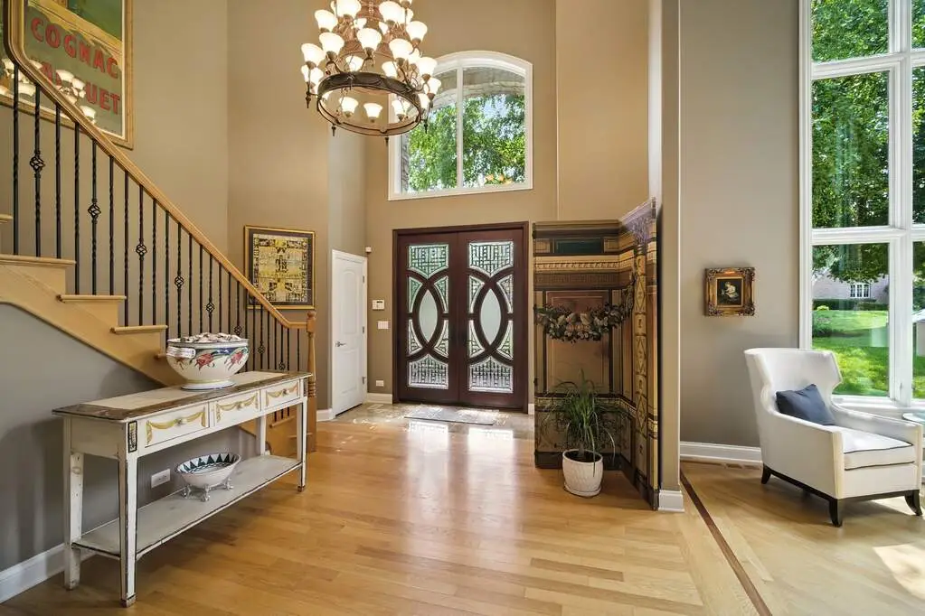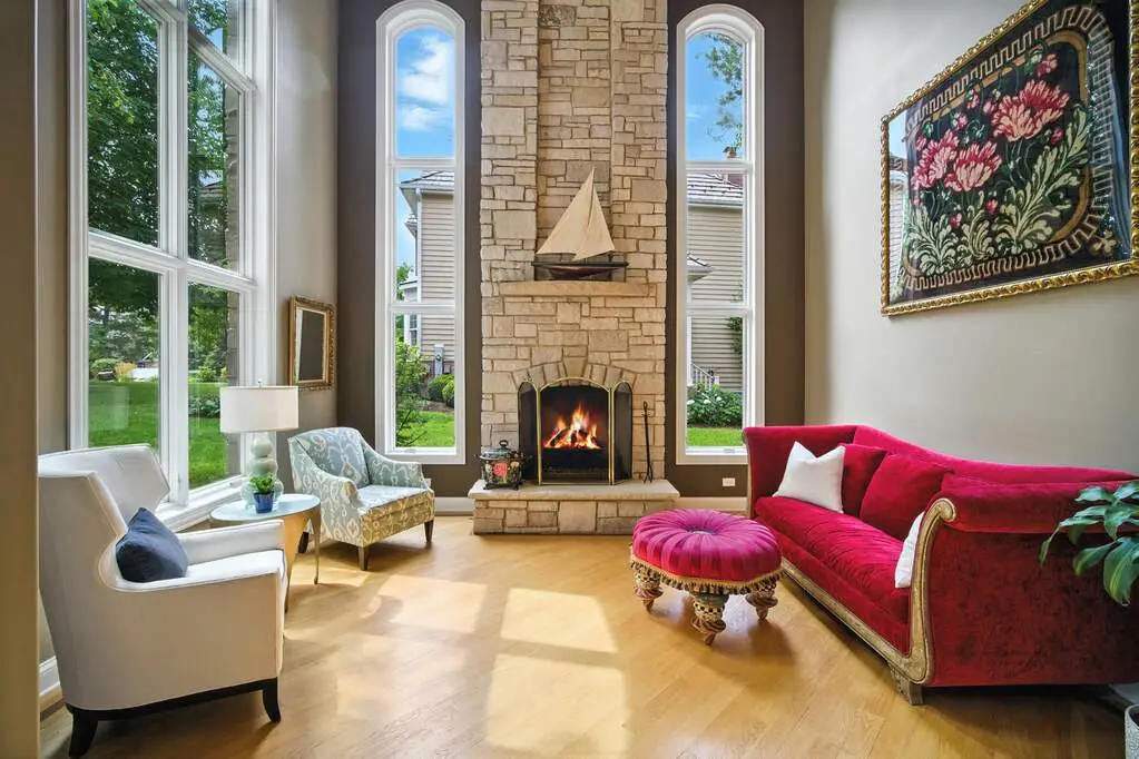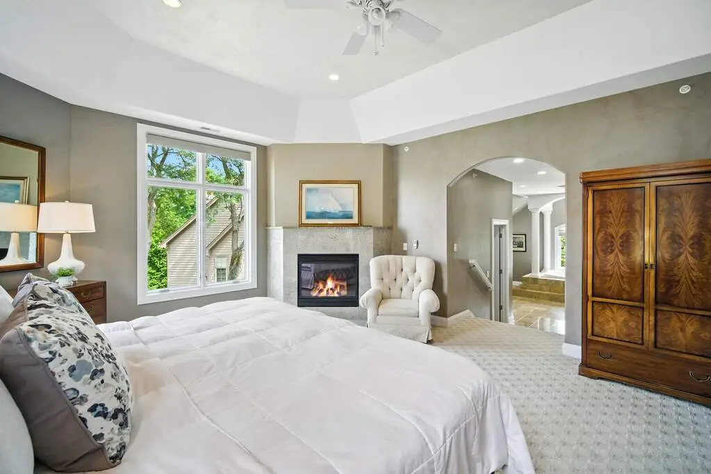 Tucked into a serene cul-de-sac within the prestigious gated community of The Woods of Ivanhoe, this exceptional brick and stone residence blends refined luxury with timeless sophistication. Set on beautifully landscaped grounds-now enhanced with a NEW Brava Shake roof (50 year guaranteed composite) and gutter system, as well as a NEW sprinkler system-the home welcomes you with an expertly restored brick driveway and front walkway, offering pristine curb appeal. Step inside to discover a sun-filled interior where soaring ceilings and an open-concept floor plan create a seamless flow throughout 4 bedrooms and 4.1 baths. The heart of the home is an exquisite kitchen featuring high-end stainless steel appliances, custom cabinetry, and a spacious butler's pantry. Warmth and ambiance radiate from four stunning gas fireplaces, each a focal point in the living spaces. A private main-level office, elegant living and dining rooms, and a large family room offer ideal functionality for both everyday living and entertaining. Upstairs, you'll find generously sized bedrooms with walk-in closets, a luxurious primary suite with a spa-inspired bath and show-stopping closet, plus a second-floor laundry room for added convenience. The finished English lower level provides additional living space, including a full bath, gym area, and abundant storage. Outside, a refreshed deck offers the perfect backdrop for peaceful outdoor living. The 3-car Heated garage features epoxy flooring and custom slat wall storage. Residents also have the option to join the neighboring Ivanhoe Club with a social or golf membership, offering a rare opportunity to enjoy exclusive amenities just moments from home. Few communities offer this blend of privacy, prestige, and lifestyle.