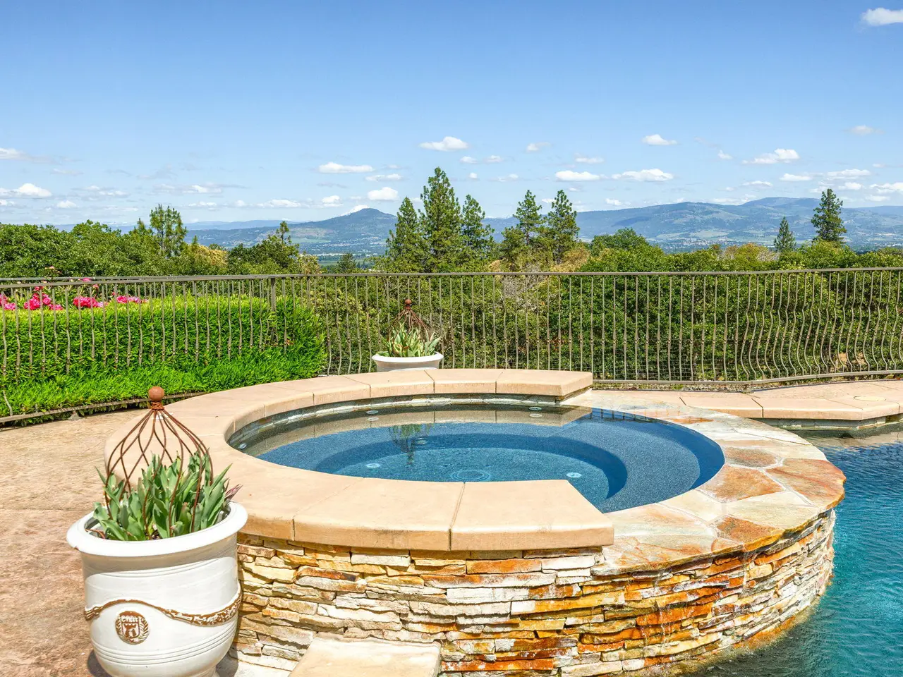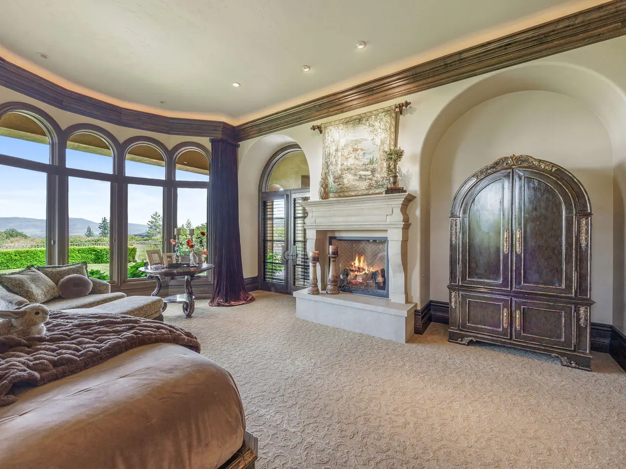 Masterpiece of Art in Southern Oregon, 1st time on the market! Overlooking Jacksonville Mts and City lights! Private park-like 5 acres w/city water! Mediterranean/Old world style w/stone gated entry. 12 car garage. 9904 SQ FT of luxury. Attention to details throughout this amazing property. 4 primary stes, 6 baths, Pebble tec pool and spa, covered patios w/stone fireplace, gated courtyard w/large fountain and guest Casita! Fall in love before entering 13' dbl door entry that takes you into a grand great room w/many 9' French doors opening to the outdoor living room, 8 fireplaces and dome ceilings. Lg stone fireplace in kitchen/breakfast rm. Beautiful kitchen that any chef would love w/butler pantry and catering area w/third sink and wine fridge. Primary suites w/custom tall ceilings. Temperature controlled wine cellar, elegant formal dining rm w/built-ins. Downstairs family, theater and exercise rms. Built & architecturally designed by Mike Pagnini a premier builder in Southern Oregon.