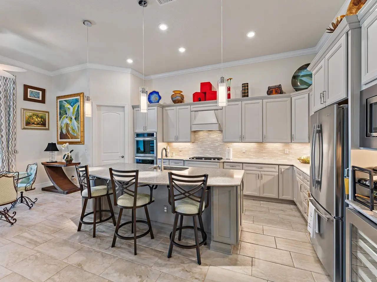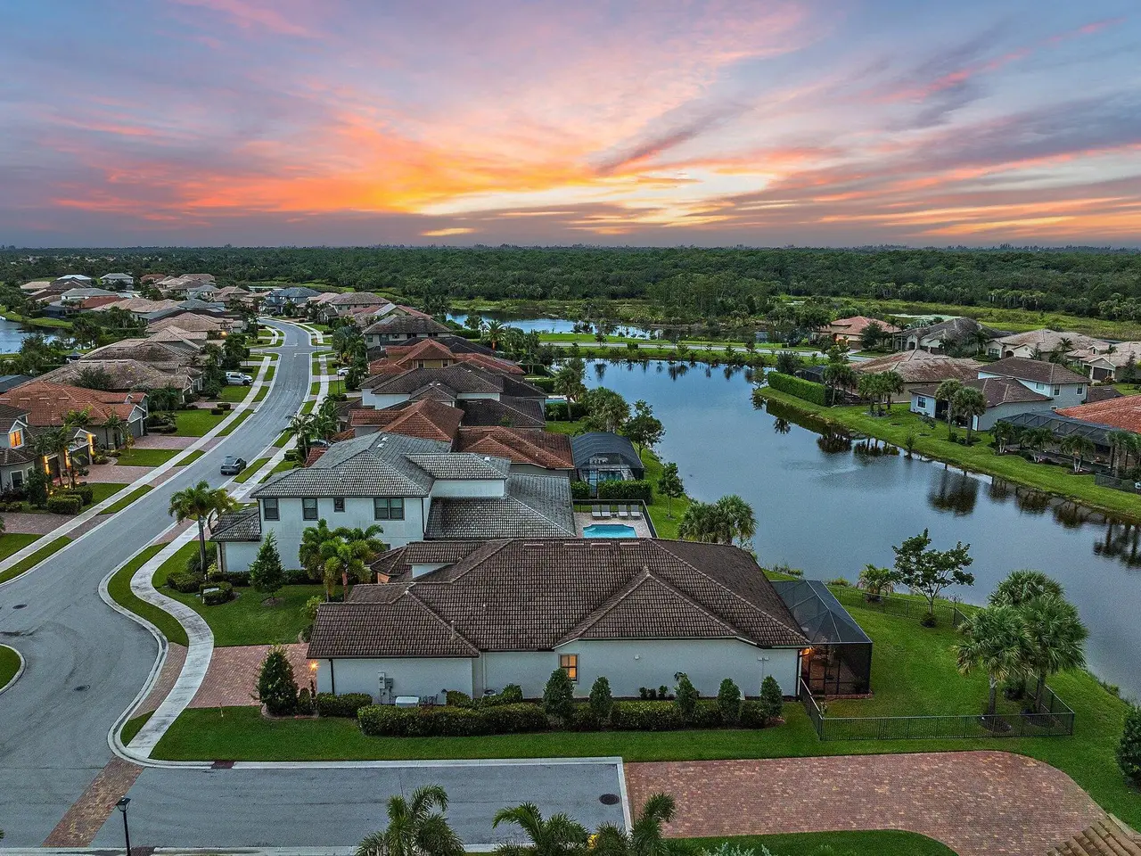 This extremely popular one-story ''Stonewater'' model home by DiVosta is located in the heart of the community, at the end of a cul-de-sac, and overlooking a large lake. Special features include a whole house, gas generator; patio roll-up sun shades and armor hurricane roll-up blinds; Twin Eagle gas grill; crown molding; ''no-seeum'' patio screening; enlarged garage with built-in cabinetry and epoxy floor; solid core doors throughout, and much more.