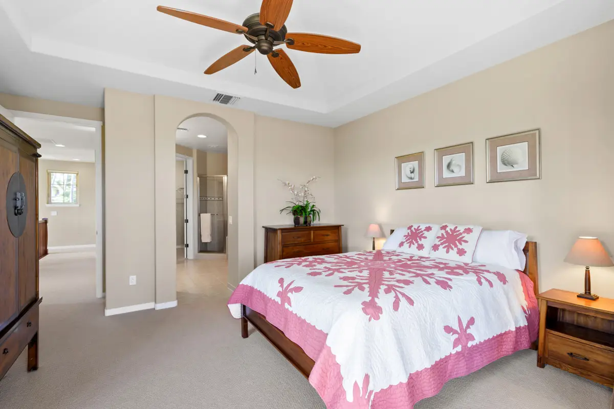 Golf Villas F5 is a 3-bedroom townhome in a quiet, gated community within Mauna Lani Resort on the Kohala Coast. Surrounded by the Mauna Lani South Course, it offers low density living with peaceful golf course and mountain views. This is the first time the unit has ever been offered for resale. The unit is being offered fully furnished and turnkey, in excellent condition with minimal use, never rented, and meticulously maintained throughout. Designed in Hawaiian plantation style, Golf Villas F5 sits near the Amenity Center with a lava rock and Ohia wood theme, pool, hot tub, and fitness center. The Mauna Lani Beach Club is just a half-mile away with complimentary lounge chairs and oceanfront dining at Napua restaurant. Upgrades and features include:-Brand new central A/C system and handler-New carpet and pad-New LG washer & dryer-New Bosch dishwasher and upgraded LG refrigerator-Lanai BBQ island with cover + new exterior fan-Fans in every room, dimmer switches, LED kitchen downlights-Fan timers in all bathrooms-White sinks added in primary suite (replacing black)-Freshly painted garage floor + storage rack-Upgraded closet lighting and added pendant lights/chandelier-Handheld shower sprayers + flip-down teak seat in primary bath-Upgraded staircase sconces, window tinting, and curtains/rods-Programmable Trane lock + 3-camera security system-Closet lighting and storage upgrades downstairs. Don't miss the opportunity to acquire a move-in-ready villa in one of Mauna Lani’s most peaceful and private communities.