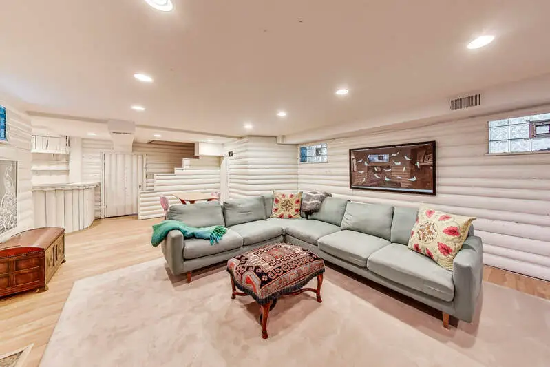 - Wood-paneled rec room