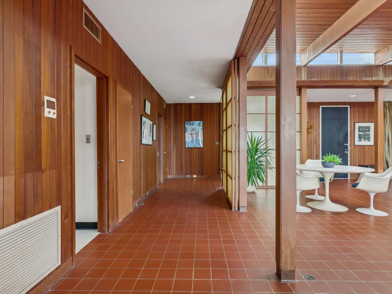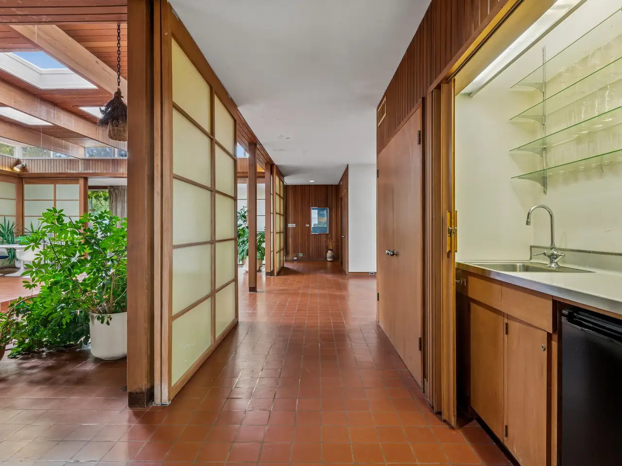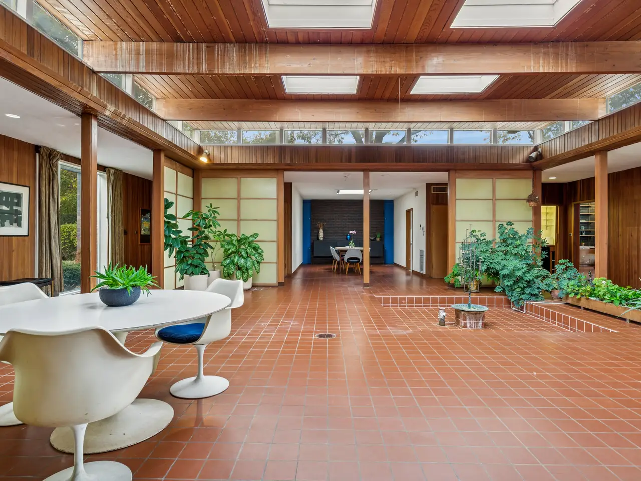 A rare lakefront opportunity in Kenilworth, set on nearly three quarters of an acre, features exceptional table land, a well-preserved bluff with a winding path to the lake, and a private lakefront! Designed by Keck and Keck in 1957, this one-level midcentury modern home showcases clean lines, expansive glass, and radiant heated floors throughout. At its center, a skylit atrium and clerestory windows create an ever-changing play of light. Shoji screens allow the space to shift from open gathering areas to a quiet retreat separated from the bedroom wing. The primary suite faces the lake, while three additional bedrooms line the peaceful south side. The main living areas open to panoramic lake views. A substantial seawall installed with adjoining neighbors protects a shoreline that naturally ebbs and flows. Walk to schools from kindergarten through high school and enjoy nearby Plaza del Lago with its high-end shops and restaurants.