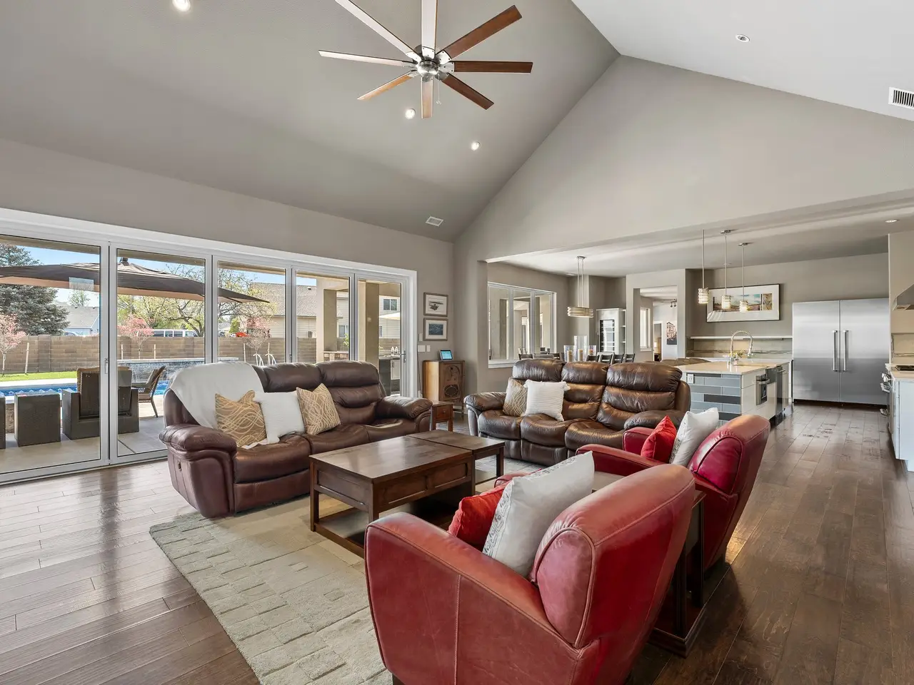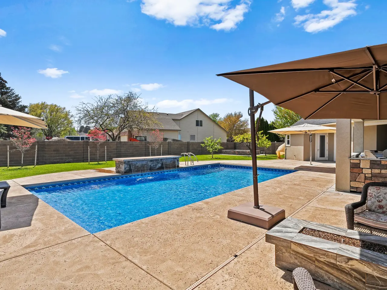 Welcome to 5001 W 20th Ave, Kennewick. This extraordinary custom home is an architectural masterpiece built by the renowned Don Pratt and featured in the 2014 Parade of Homes. Set against a backdrop of lush, professionally landscaped grounds, this home is the epitome of refined elegance and seamless indoor-outdoor living. Approaching, you’ll be wowed by the homes presence! Framed by mature trees, vibrant gardens, and a tranquil setting that feels like a private resort. Enter through the grand double wood doors into an interior that is nothing short of breathtaking: wide hallways, rich engineered hardwood floors, and radiant in-floor heating that offers luxury beneath your feet. The great room stuns with a full NanaWall that collapses completely, blurring the line between inside and out. Entertain with ease as the home opens to your own private paradise. A gas fireplace, built-in cabinetry, and oversized windows in the dining area are perfectly positioned, and sized, to match a second NanaWall, should you want to extend. The heart of the home is the chefs kitchen! It boasts an oversized quartz island, custom cabinetry, hidden outlets, and Thermador appliances. A 92-bottle wine cooler completes the space. Off the kitchen, a hidden pantry includes a second dishwasher, a deep sink, and room for secondary appliances. The primary suite is a sanctuary. Glass doors with built-in privacy shades open to a spa-like retreat featuring a freestanding slipper tub, an expansive curb less double shower with dual showerheads, double vanities, and a walk-in closet. Quietly tucked away is a hookup for a Miele ventless washer/dryer combo. Two secondary suites each offer large walk-in closets and luxurious ensuites. The office is complete with a full-height library wall and sliding ladder. Outside, discover an entertainers dream! The heated pool includes a waterfall, automatic cover, and brand new vinyl liner. The outdoor kitchen is fully equipped, including a pizza oven. The grounds also feature raised garden beds, a potting station w/ sink, and a variety of fruit trees and berries. Behind the scenes, this home is packed with modern technology. Powered by a 7.6kW solar system, it features Navien on-demand hot water, Warm board radiant floors, attic A/C, a soft water system, Phyn water monitoring (app-controlled), and Sense energy monitoring. The 4-car garage includes 400-amp service and dual 220V EV outlets. This home isnt just a place to live - its a lifestyle.