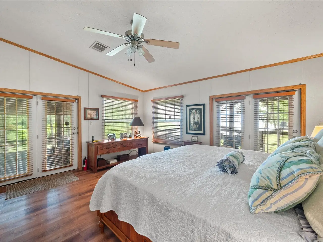 Escape to your dream lakeside retreat where beautiful pines trees line the entrance and drive. Located in a gated community, this charming 4-bedroom, 3-bath home offers 2,432 square feet of comfortable living space, perfect for family and friends. Reminiscent of summer camp dreams, the property features an 75-foot long screened-in porch, ideal for relaxing and taking in the lake views. With over 11 acres to roam, you will surely find your perfect place. This property would make a wonderful family compound or maybe a corporate retreat. With a cleared area that was previously used for a soccer field and the half-size basketball court, also perfect for pickleball, family fun and activities are right at your doorstep. We haven't forgotten about the main attraction... over 750' of open waterfrontage with a steel retaining wall already in place. The oversized boat dock with touchless boat covers makes water adventures a breeze. You have room for 2 boats, personal watercraft and a large deck to enjoy majestic sunsets over Richland Chambers Lake. Plus, with two auxiliary buildings, there's plenty of space for storing all your water toys or a workshop for the hobby enthusiasts. There is also a cleared area with incredible open water lake views that would be the perfect spot to build. Don't miss out on this unique opportunity to own a piece of paradise!