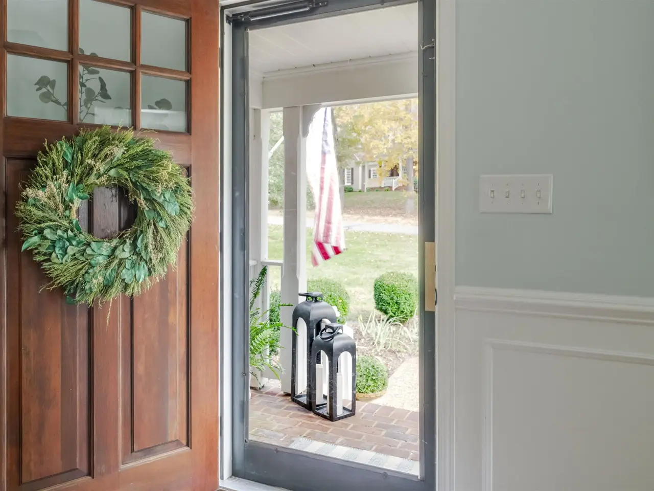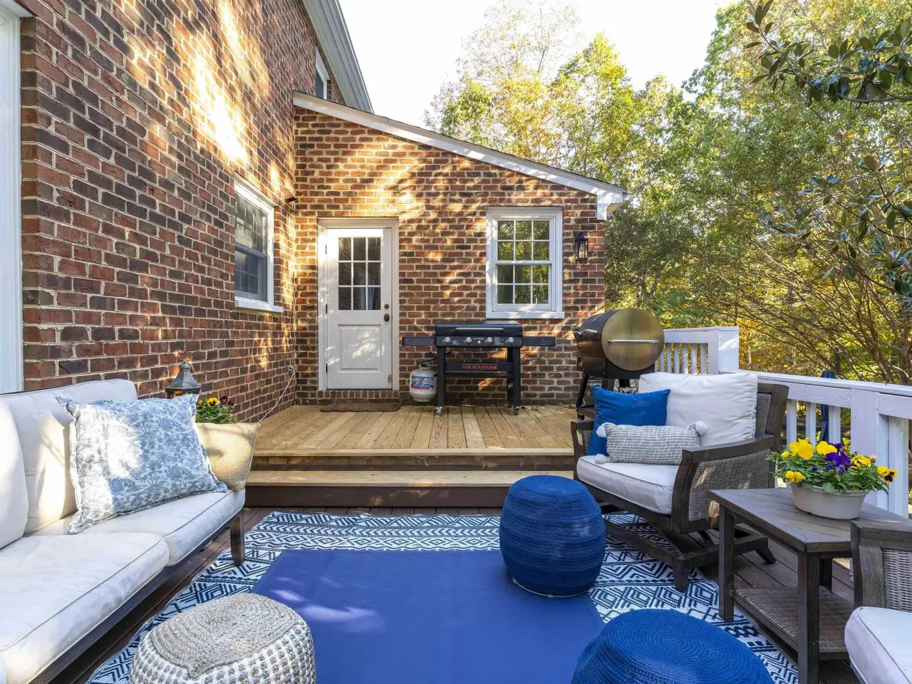 OPEN HOUSE NOV 2nd, 1-3. Stately Brick Home nestled on half an acre bordering acres of wooded common space. Seller offering a $20,000 Buyer Credit toward updates or closing costs with an acceptable offer-an Excellent Opportunity to personalize this beautiful home. The fenced backyard is a peaceful retreat for relaxing or get togethers. Beautiful 5BR/3.5BA traditional brick home with 3,597 finished sq ft, located on a lovely tree-lined street in the gated Glenmore Community. Interior features include traditional hardwood floors throughout, a spacious family room and formal dining room. The living room/library offers built-in bookshelves, and the kitchen showcases soapstone counters with windows on 3 sides, offering an abundance of natural light. Large kitchen island perfect for entertaining. The breakfast nook with built-ins is ideal for coffee or casual meals. Upstairs, the renovated primary suite offers a spa-like bath and walk-in closet, plus 4 additional bedrooms and 2 full baths. Enjoy outdoor living on the large deck and beautifully hardscaped patio. Additional features include 2-car garage, new HVAC, and ample storage. Community Amenities: Golf, Pool, Tennis, Walking Trails, Fitness Center and Clubhouse with Dining.