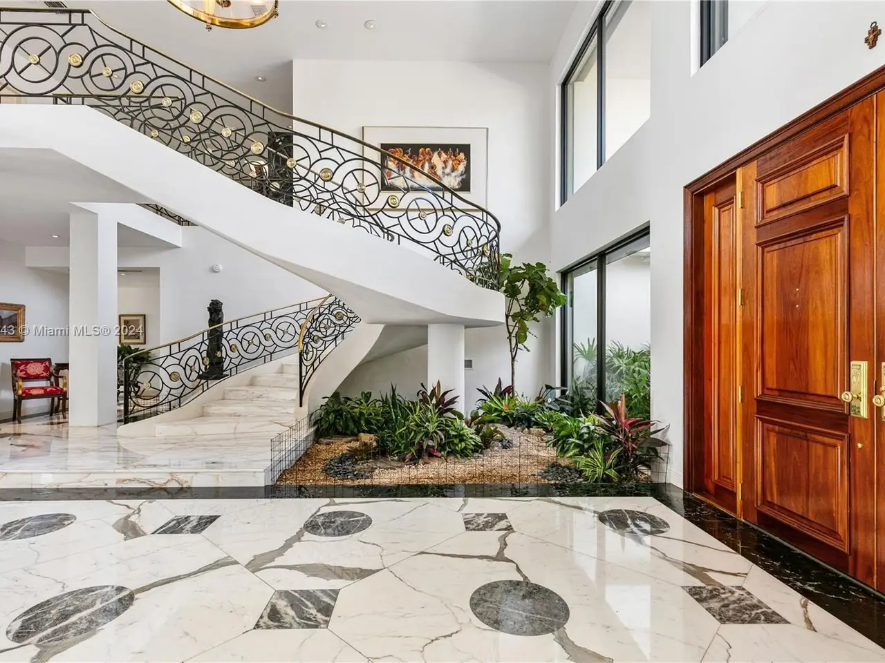 Spectacular Contemporary Home, located on Cape Florida Drive cul-de-sac, one of the highest land value in the island of Key Biscayne, over 1/2-acre lot, more than 250’ waterfront, private dock, boat lift, custom made pool, elevator, an elegant grand foyer entrance with an indoor botanical garden & electric sprinkler system, followed by a majestic unique custom design staircase by an iconic interior designer. This property of 8 Beds+8.5 baths is designed by a prestigious architect & built by Interscope features a solid foundation & Structure and a generator for the entire home. A unique design w/ guest suite, maids’ area, 5AC units, electric shutters on windows & doors, garage area has 2 covered+ 4 under a huge porte-cochere, +8 cars fit in paved driveway, 2 electric gates.