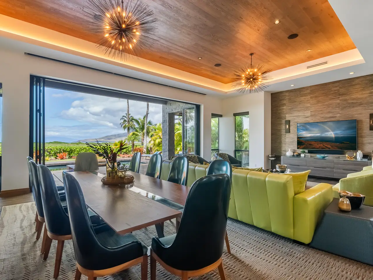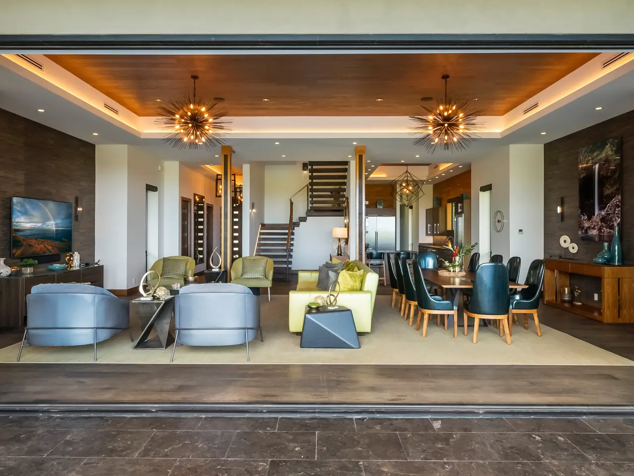 Bi-folding floor-to-ceiling glass doors