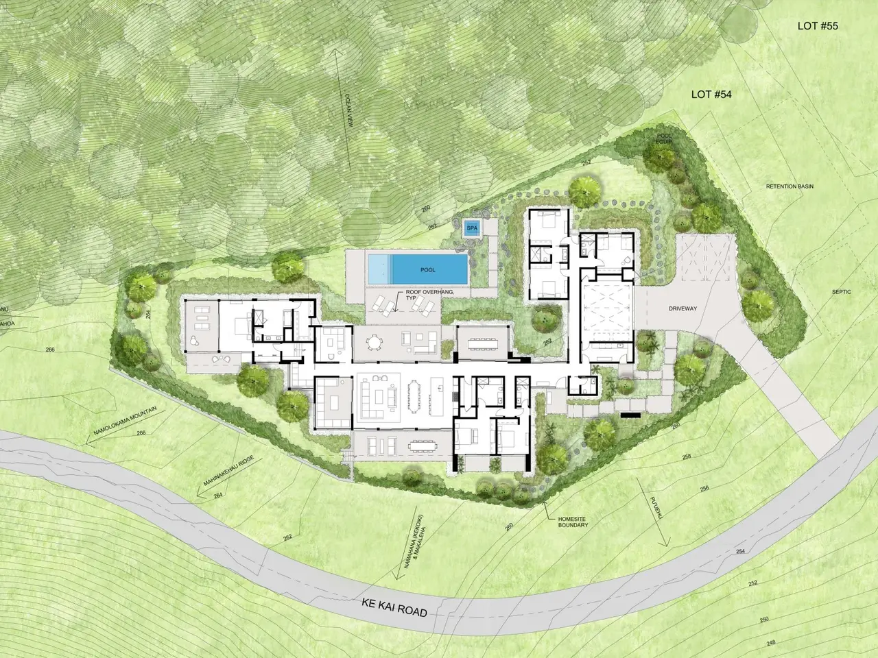 Oceanside Ranch 54 is a spectacular 4-acre property within the North Shore Preserve, a private and secluded residential community developed by famed Discovery Land Company that artfully incorporates the services and amenities you need for a healthy, fulfilled lifestyle in this enchanting landscape. At North Shore Preserve, Discovery brings its signature family-focused programs and amenities to the North Shore of Kauai to provide families with countless opportunities to connect. With meticulous attention to detail from concept to completion, North Shore Preserve will create memorable, nature-inspired experiences for those who are lucky enough to call it home. This gorgeous homesite is set on a west-facing bluff's edge, oriented perfectly to catch incredible sunsets all year, as well as ocean and mountain views. The property features a leveled and cleared building envelope of roughly 26,000 sqft and allows for a home of up to 6,000 sqft of conditioned floor area and an additional 2,500 sqft of unconditioned and covered exterior area. Purchase of the property includes an invitation to the private club which includes the newly renovated golf course, among countless other incredible amenities. From the community, there is also direct access to Anini Beach which offers 365 days-a-year of swimming. Beyond the North Shore Preserve, you are minutes away from several world class beaches including the iconic crescent beach of Hanalei Bay. In neighboring Princeville, you will find several restaurants, coffee shops and boutiques at your convenience, as well as access to the brand new 1 Hotel Hanalei Bay.
