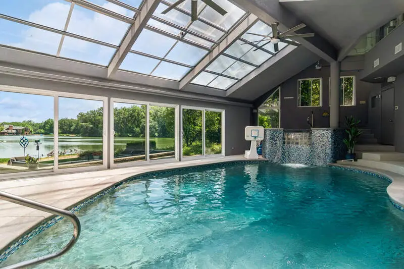 Indoor pool with waterfall