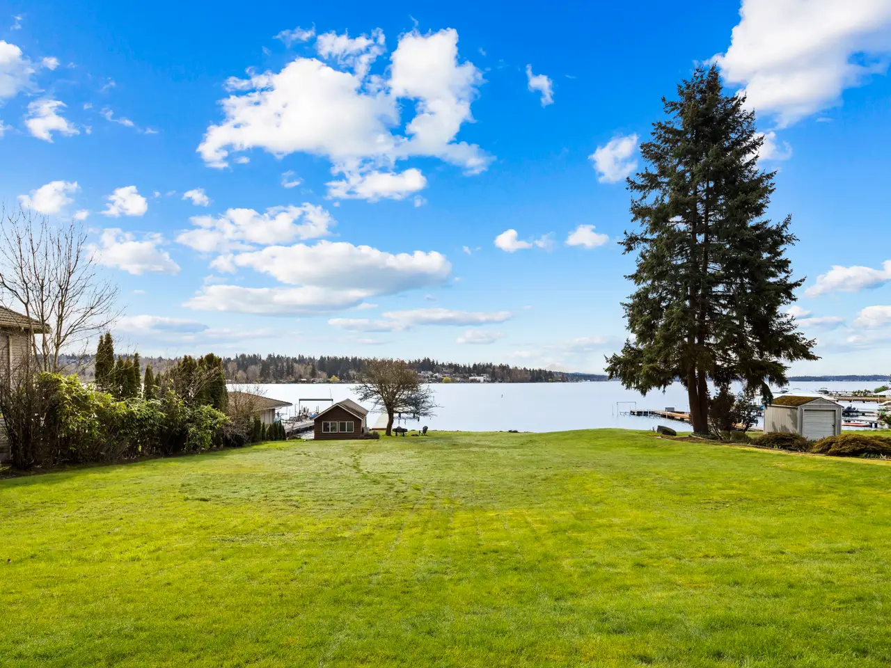 Spectacular waterfront acreage with incredible 119 feet of coveted south-facing Juanita Bay waterfront! Property includes a 5 bedroom, 3 bath 2,730 square foot home, originally constructed in 1922 with significant renovations including an updated kitchen, hardwood floors and large newer composite deck perfect for entertaining. 47,508 square feet (1.09 acres) with mature plantings and huge lawn to waterside boat house with rails to the water and 100' dock with 6'+ deep moorage. Enjoy the amazing waterfront lifestyle and panoramic southerly vistas looking at Mt. Rainier and the Bellevue city lights along with the ever-changing waters of Lake Washington! Near perfect location, just a few blocks from Juanita Bay Park and vibrant Juanita Village, 5-7 minutes to downtown Kirkland's eclectic shops and restaurants and I-405. Wake to rose colored sunrises and be mesmerized by the golden sunsets reflecting on Bellevue and Mt Rainier skylines, and nearly endless maritime performances. This magnificent level waterside oasis with boat house and large, level lawn is the perfect venue for festive celebrations with friends and family - or peaceful enjoyment of life at its best. Whether you choose to renovate the architecturally interesting existing home or build the large waterfront estate of your dreams, you don't want to miss this amazing opportunity!