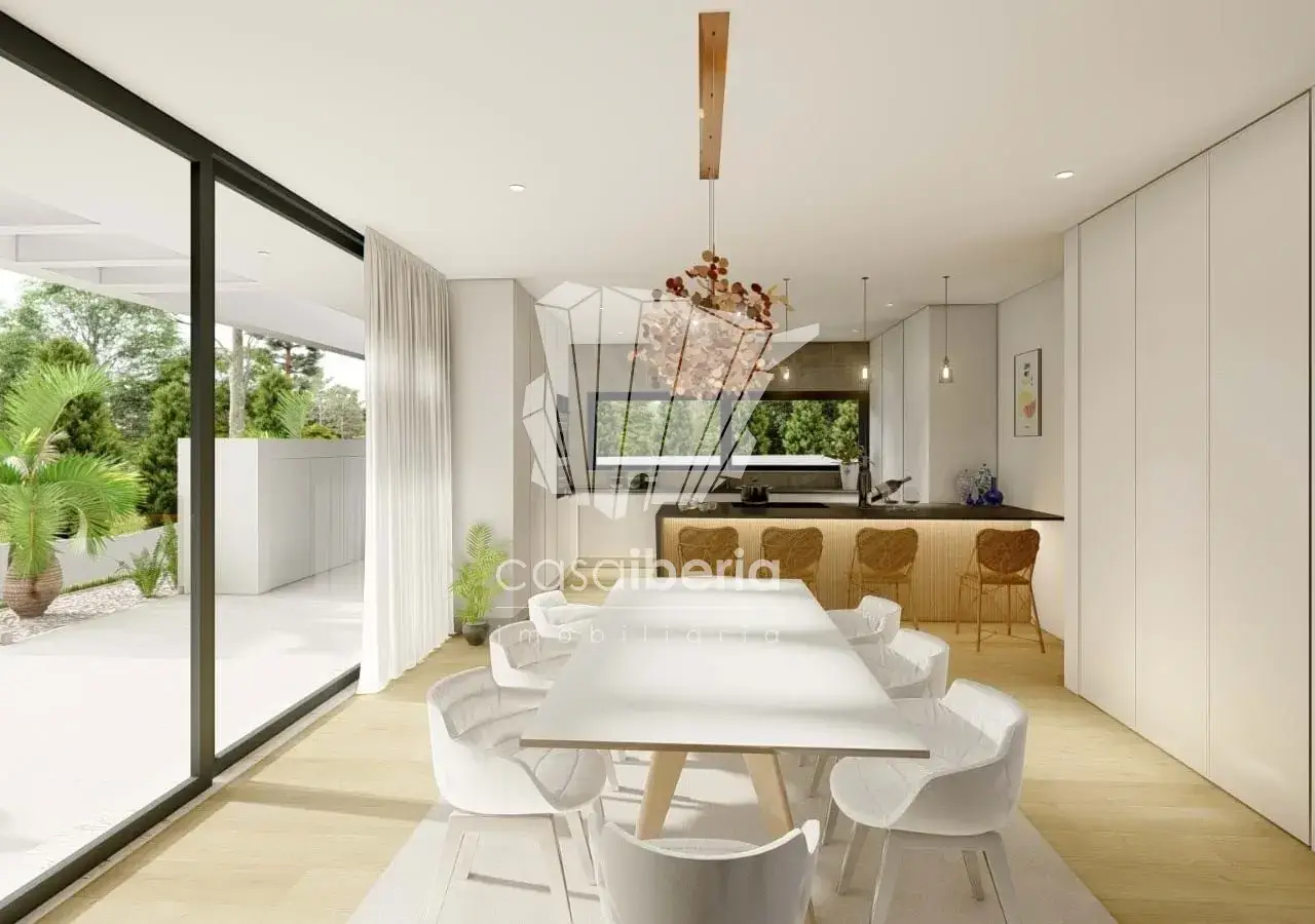 A wonderful, contemporary-style, 3 storey villa composed of a basement, a ground floor and a first floor, finished with high quality materials.On the ground floor there is an open plan kitchen/dining area and a living room with a fireplace. All have access to the outdoor terraces, swimming pool and garden. There are also three en suite bedrooms, a pantry and a service bathroom (WC). On the first floor you’ll find two bedrooms, both with en suite bathrooms and garden views, as well as access to the terrace.In the basement there is a large garage with space for several cars, a technical area and other spaces that could be used as a game room, cinema room, or wine cellar, etc.Outside there is a large garden with a swimming pool and barbecue area.This villa is in an excellent location, just a few minutes walk from Centianes beach and Vale de Milho Golf. There are plenty of restaurants and cafes in close proximity to the property, and the Nobel International School is around a 10 minute drive. What are you waiting for? Book your visit and don´t miss out on this fantastic opportunity. Plot size 2710 square meters Construction area 300 m2 plus basement Energy certificate A Construction year 2022 Features: - Double glazing - Pré. Instalation Air Conditioning - Blackhousts - Underfloor heating - Garage