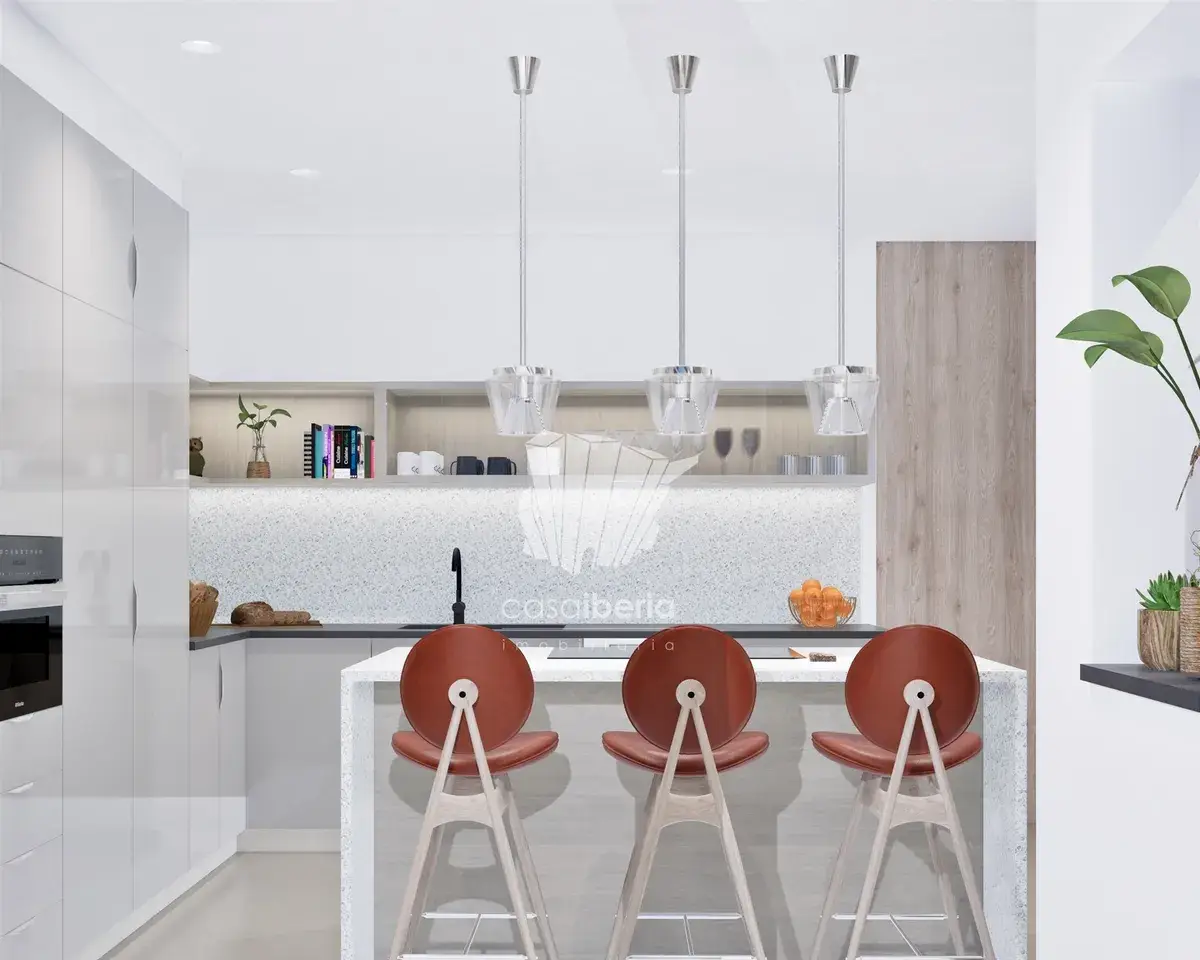 Villa T3+1 in Porto de Mos, Lagos, Algarve This property consists of a plot of land with a villa, garage and pool under construction, in Porto de Mos urbanization, within five minutes drive to the nearest shops, town centre and the beaches. The villa is spread across two levels plus a basement comprising as follows: Ground floor: entry hallway leading to a living area, a dining room, a kitchen, two double bedrooms with en suite bathrooms and a guest's toilet. Top floor: two double bedrooms with en suite bathrooms. The main bedroom has a walk-in closet and a private terrace with over 27 square meters. Basement: A large garage, a laundry and a toilet. The generous outdoor area offers a large terrace for the outdoor living with built-in BBQ and plenty of space for a lounge and dining areas. This extends to the large pool terrace and finally to the surrounding garden. From the living area terrace there is a staircase leading up to a roof terrace equipped with a bar, offering a lovely view of the neighborhood all the way to the sea. Further features include: - Fully fitted kitchen and laundry - Air conditioning system installed - Under floor heating - Central vacuum - Alarm system - Double glazed windows with security laminated glass - Electric window blinds and blackouts This is a fantastic opportunity to purchase a villa built to a high standard, with a combination of classic and contemporary styles, in the high end residential area of Porto de Mos.