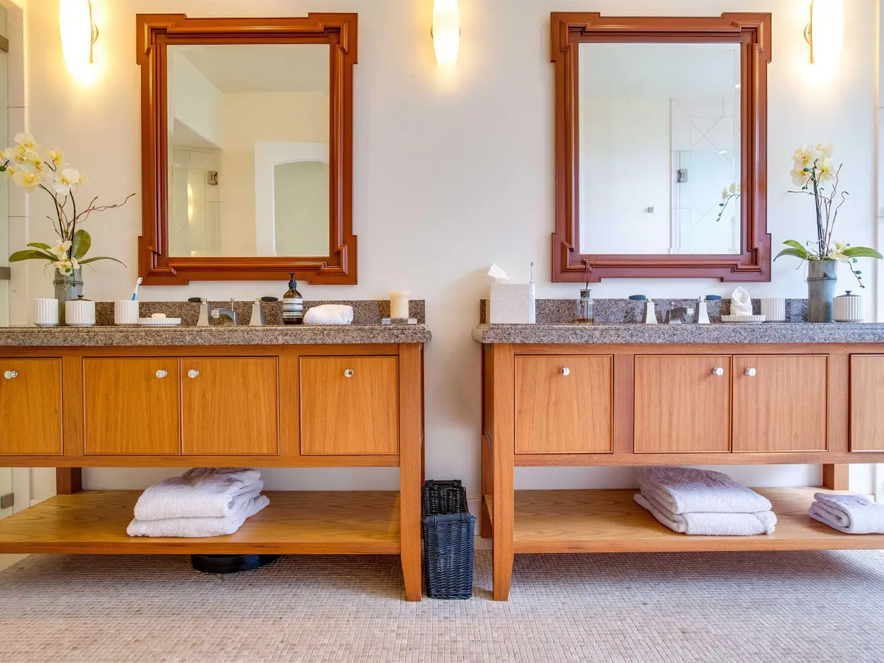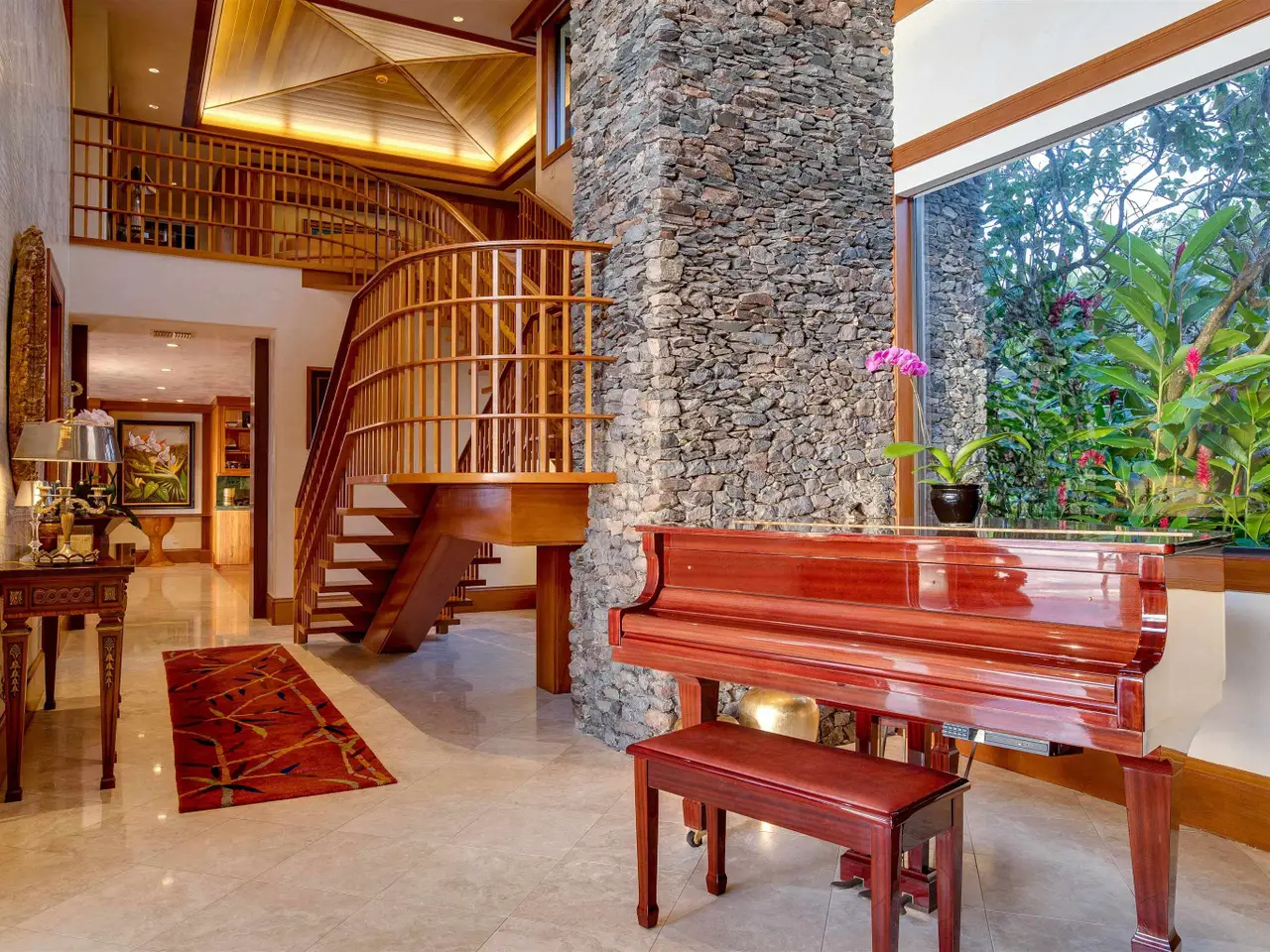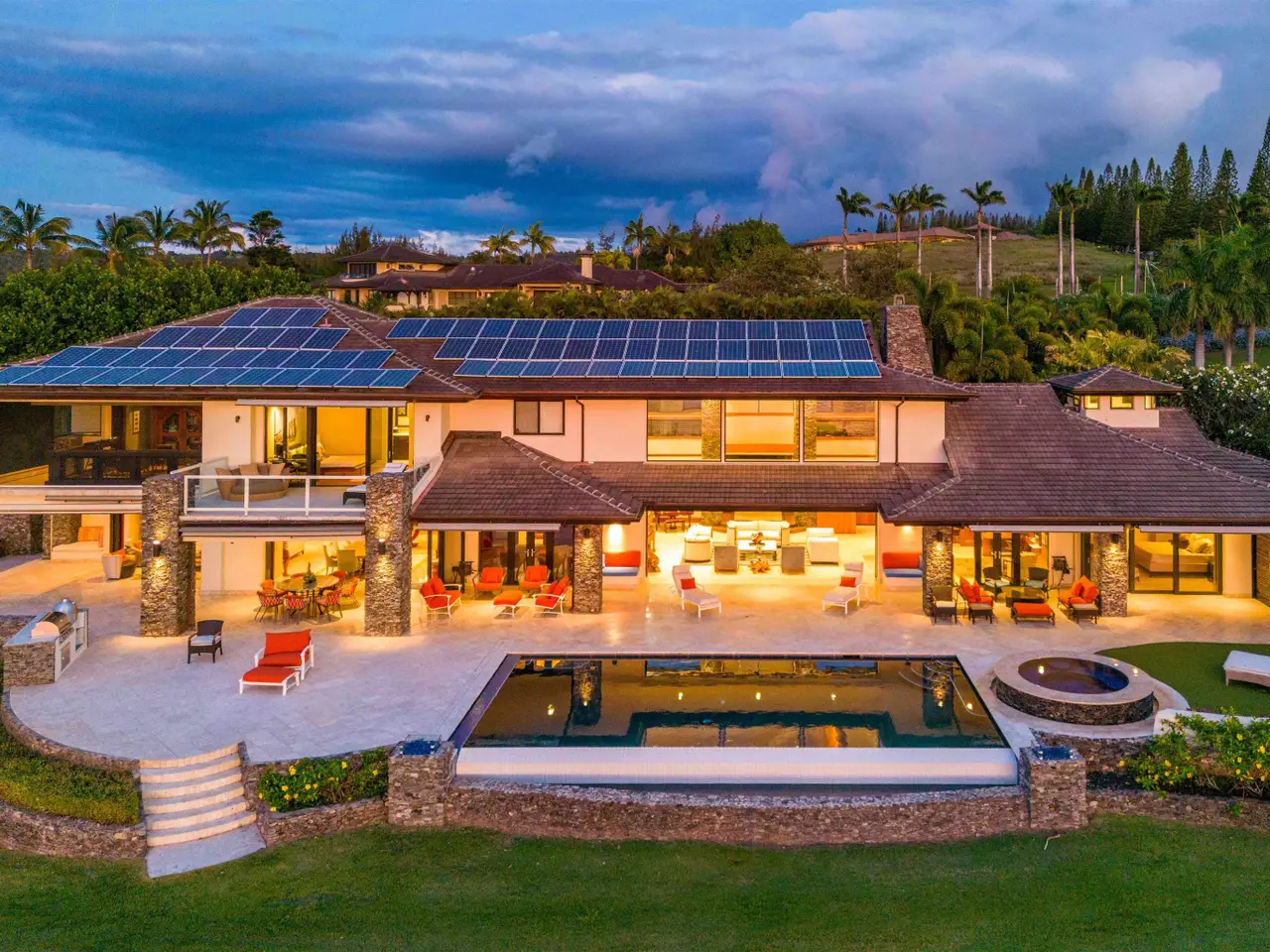 This stunning 8,252 square foot residence is situated on 2.65 beautifully landscaped acres with an additional 1.18-acre easement offering expansive ocean views. This home features 6 ensuite bedrooms with ocean vistas, including 2 on the main floor, and 1.5 well-appointed bathrooms. The interiors showcase high-quality Koa finishes, Venetian plaster walls, and custom wood and stone details, providing both elegance and comfort. Modern amenities include a Control4 automation system, Lutron lighting, a dedicated home gym, and a media room equipped with a 110" projector for an exceptional entertainment experience. Outdoor living spaces are enhanced by a saltwater pool, champagne-style hot tub, and nearly 100 yards of lush lawn, perfect for relaxation and gatherings. The property also includes a detached Ohana with 1,025 square feet of living space, featuring 2 bedrooms, 1 bathroom, a private lanai, and a three-car garage. Recent updates include refreshed interior and exterior finishes, improved landscaping, and enhanced ocean views from the dining areas. Located in Maui’s sought-after west side, this estate offers privacy, luxury, and a serene connection to the natural beauty of Kapalua.