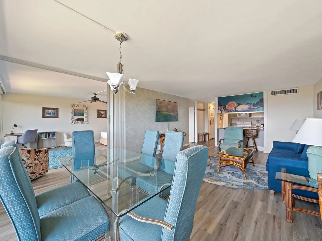 • Open-concept floor plan with large sliding glass doors