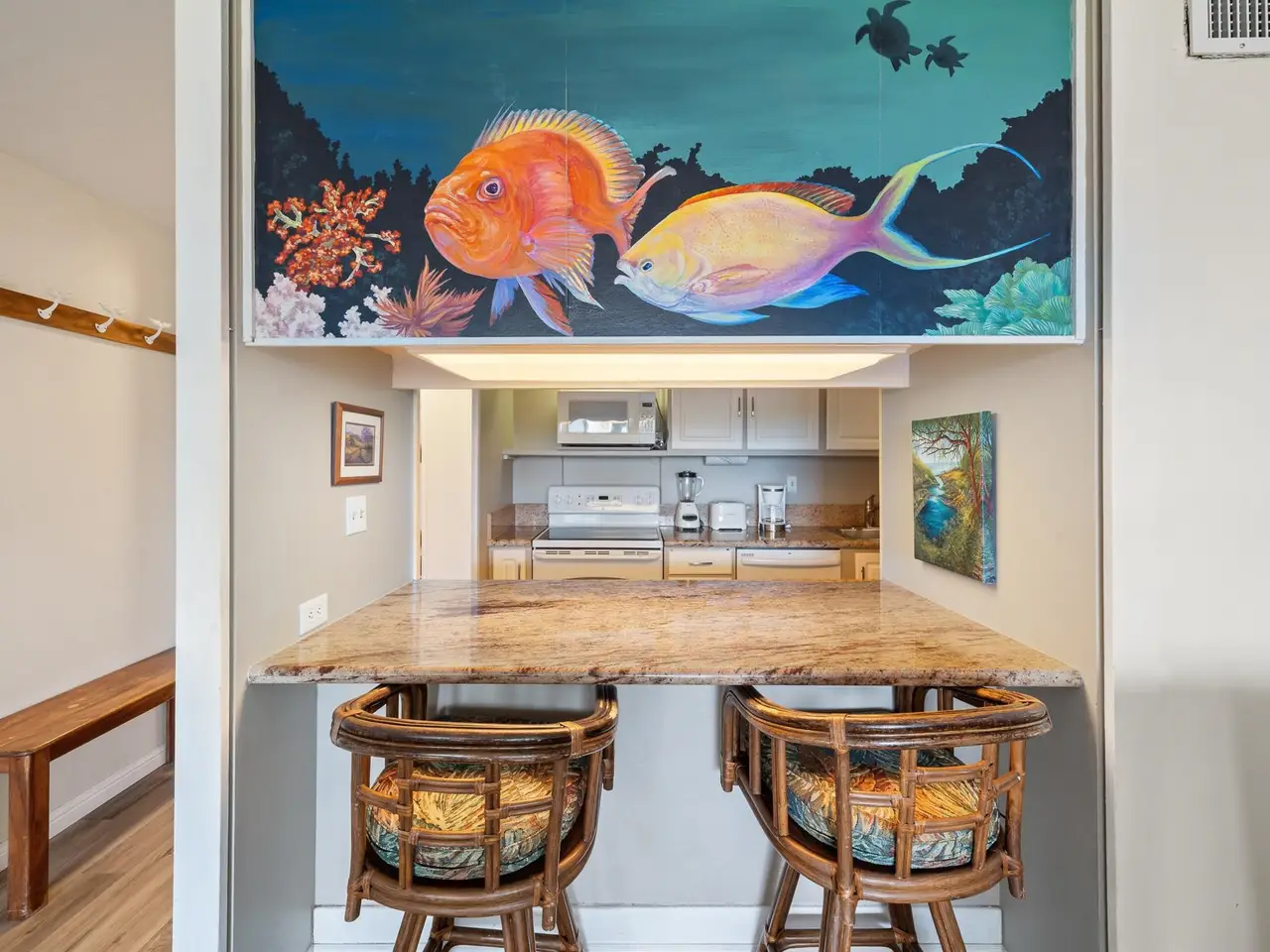 • Island-inspired furnishings and stylish fixtures