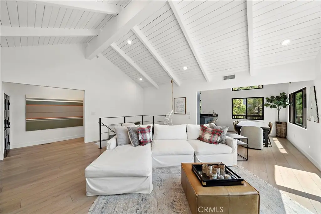 This stunning 4-bedroom, 3.5-bath mountain retreat combines modern upgrades with timeless lodge-style charm, offering captivating lake views from nearly every window. Thoughtfully remodeled in 2020-2021, the home features a bright open floor plan perfect for both comfort and entertaining. The main level showcases a dramatic great room with vaulted ceilings, expansive windows, recessed lighting, and a cozy gas fireplace that opens to a large entertainer's deck. The remodeled kitchen is a chef's dream with stainless steel appliances including a refrigerator, shaker-style cabinetry, pantry with pullout shelves, granite counters, peninsula with seating, and large windows framing the view. Two primary suites with spa-inspired baths--one on the main level and another on the lower level--provide privacy and flexibility, while two additional bedrooms and a spacious family room with a second fireplace and walk-out access to the lower deck with a swinging bench create the perfect retreat for family and guests. Outdoor living shines with two expansive decks crafted in durable Trek decking, ideal for gatherings, dining, or simply enjoying the mountain air and lake views. Additional highlights include dual HVAC and A/C systems with split thermostats, vinyl flooring throughout, inside laundry with washer and dryer, a finished pull-through two-car garage with automatic doors on both sides, and ample guest parking. Sold mostly furnished for a true move-in ready experience, this home is ideally located just above the trails of North Bay Cove with lake rights, peaceful morning walks, sunset strolls, and easy access off Bay Road with level parking. Just minutes from Blue Jay and Lake Arrowhead Village shops and dining, this exceptional property offers the perfect blend of modern amenities, mountain appeal, and lake lifestyle--whether as a primary residence, weekend escape.