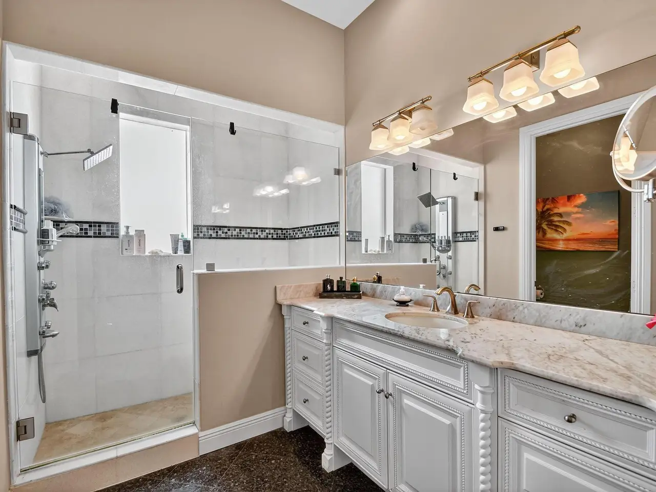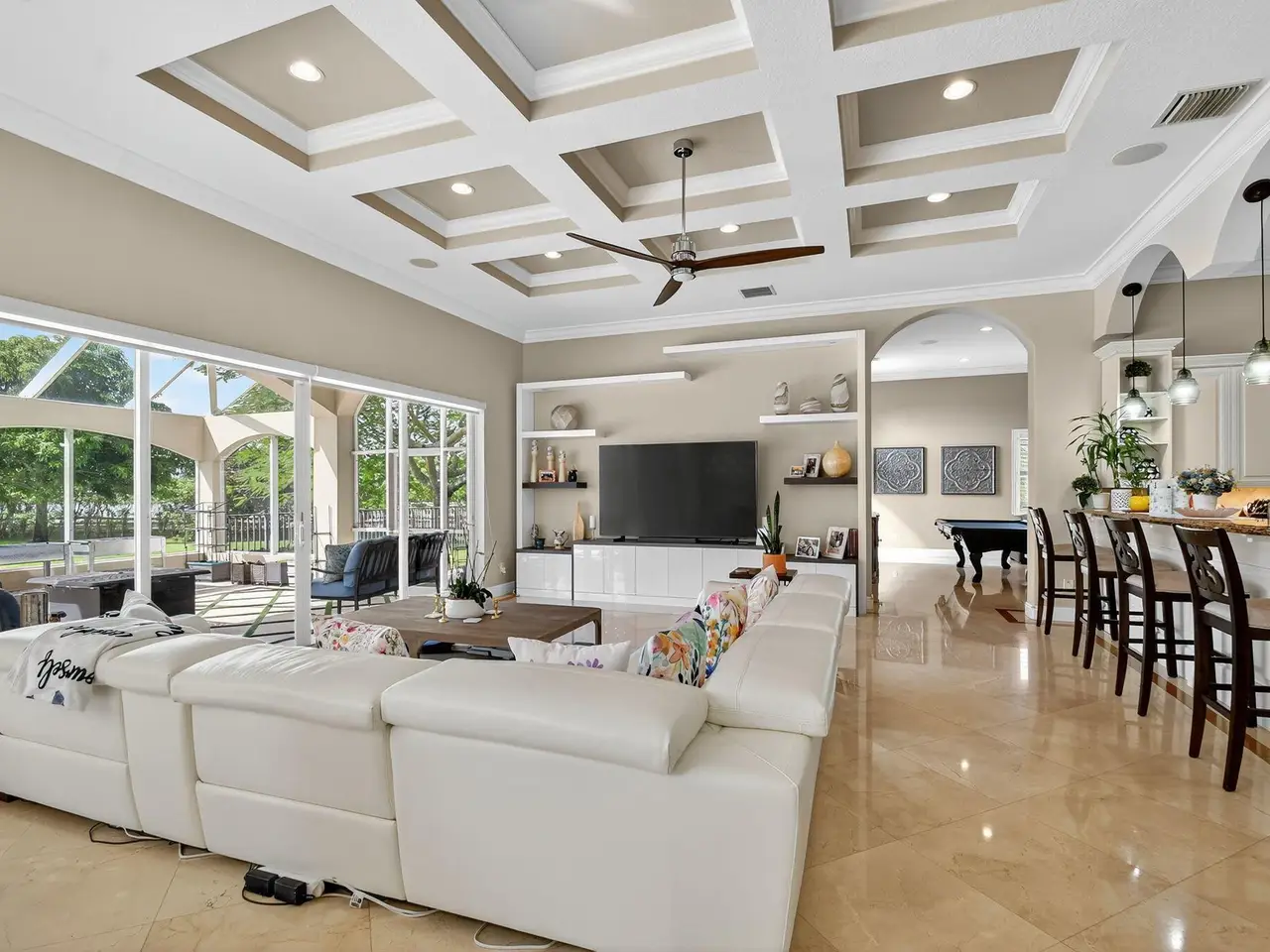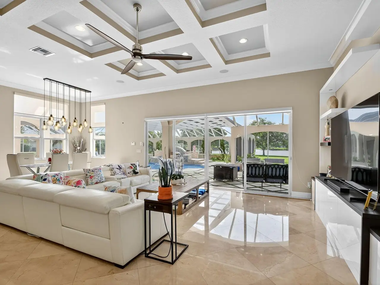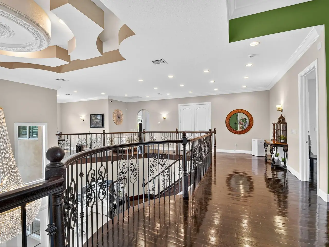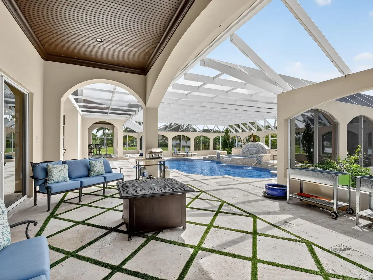Casual elegance & exquisite craftsmanship define this magnificent custom-built home featuring 6 bedrooms, 7.5 bathrooms & 4 car garage. Situated on over 2 acres, the estate welcomes you with a wide circular driveway & fountain centerpiece. In the grand foyer, gleaming marble floors, a dazzling crystal chandelier & soaring ceilings create an unforgettable first impression. A breathtaking winding staircase sets the tone for the sophisticated design found throughout. The chef's island kitchen is a culinary dream, with 2 wall ovens, a Sub-Zero refrigerator & gas stove- perfect for entertaining or everyday luxury. Nearly every main room showcases a unique ceiling design, adding character & charm at every turn! Outside is your resort-style oasis. The pool/spa area is framed by elegant walled arches, creating a serene Mediterranean retreat. Multiple balconies & patios offer the perfect setting for al fresco dining, relaxation or entertaining. Wander down to the peaceful lakeside patio and soak in the views. Equestrians, your horses are welcome! Despite the serene seclusion, this exceptional home is conveniently located near restaurants, shops, cultural venues, & the Palm Beach International Airport. This one-of-a-kind estate is where timeless design meets modern luxury. Come experience it for yourself!