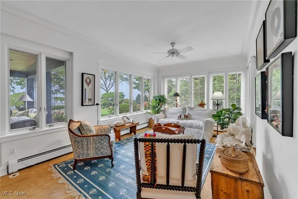 Welcome to this landmark lakefront residence in the heart of Lakewood's Clifton Park neighborhood. Situated on just under 1 acre and built in 1921, this timeless 6-bed, 4.5 bath, Colonial seamlessly blends historic charm with modern comfort. Classic architectural details throughout, hardwood floors, rich millwork, folding French doors, coved ceilings, and exceptional craftsmanship. The formal living room features a beautiful fireplace, while the elegant dining room also includes a fireplace. A den offers custom-built-ins, fireplace, and warm woodwork. The kitchen has a large center island, professional-grade appliances, double ovens, a warming drawer, 2 dishwashers, a bev. fridge, and ice maker. The breakfast nook offers panoramic views and and intricate ceiling detail. Designed for effortless indoor-outdoor living, the expansive screened and covered porch, complete with Phantom screens, provides breathtaking year-round views of Lake Erie and connects seamlessly to a sunroom. The layout creates a perfect flow for entertaining or relaxing. The yard is filled with whimsical plantings, a pergola, peaceful pathways, and space to enjoy the calming Lake Erie breezes and sunsets. Upstairs, the primary suite is a true retreat. It features a spa-like ensuite bath, a sitting room with a cozy fireplace, a walk-in closet, a private balcony, and stunning lake views. Bedroom two includes an updated ensuite bath with dual vanities, while 2 additional bedrooms are serviced by a hall bath. A convenient 2nd floor laundry room adds to everyday ease. The 3rd floor provides flexible living space with a large rec. room, plus 2 more bedrooms and a full bath. Additional highlights include two staircases and an attached garage that opens into a versatile mudroom/office space, which serves as the hub of household organization. This is a rare opportunity to own a truly iconic home in one of Lakewood's most special lakefront communities, complete with a private beach and community amenities.