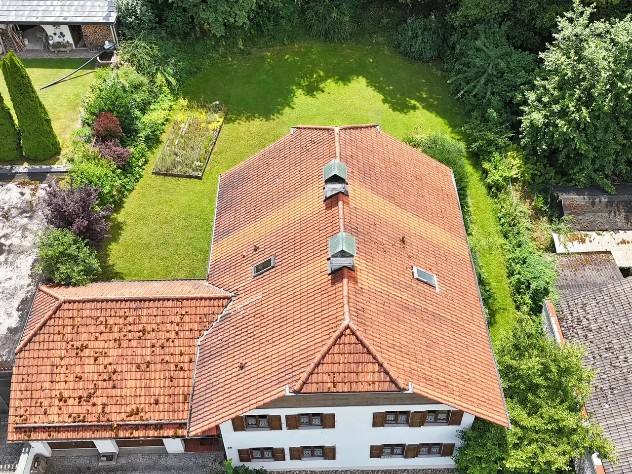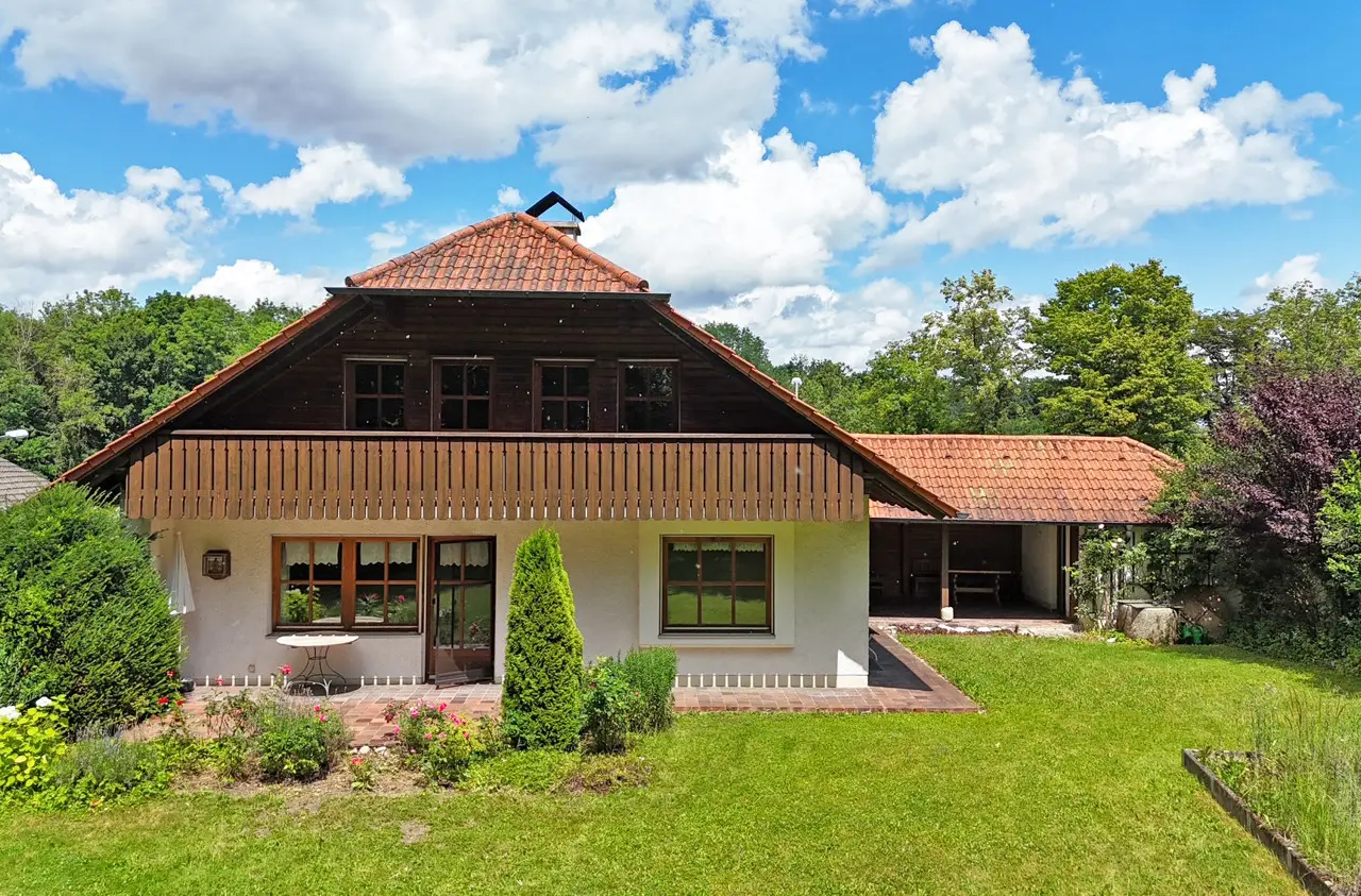 This spacious detached house on the popular Birkenberg in Landshut offers you and your family a living environment that combines freedom, security and many perspectives. On a park-like, beautifully ingrown plot of over 1,160 m², you can enjoy plenty of privacy, sunny retreats and space for your individual ideas. The house impresses as soon as you enter with its alpine character and the striking crippled hipped roof, which stylishly underlines the rural charm. On three floors and around 250 m² of living space, there are eight rooms that can be used flexibly - as a spacious family area, space for guests or your personal home office. Thanks to the separate granny apartment, multi-generational living, a care home or the combination of living and working under one roof can also be easily implemented. A special highlight is the cozy living/dining area with tiled stove, which provides warmth on cold days. The property features a fitted kitchen, several bathrooms, a guest WC, two terraces and a balcony - so everyone can find their favorite spot. The partial basement offers additional storage and usable space. The house is in a well-kept condition, but also offers potential that you can develop according to your own ideas. With a manageable amount of modernization work, you can create a contemporary home that combines tradition and comfort in a unique way. The solid construction, a mixture of stove, electric and underfloor heating, high-quality parquet and tiled floors and the large garden area create the best conditions for a cozy lifestyle. Two garages and two further parking spaces round off the offer. The location speaks for itself: close to the city center yet quiet, you can reach shopping facilities, sports centers, schools and local recreation areas in just a few minutes. Thanks to good connections, the A92 freeway, the airport and Munich city center are also within easy reach. This house is a real collector's item - spacious, versatile and full of possibilities for families looking for a special home. Be inspired by its charm during a viewing.