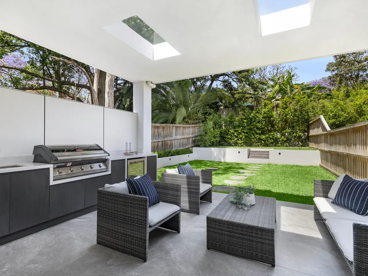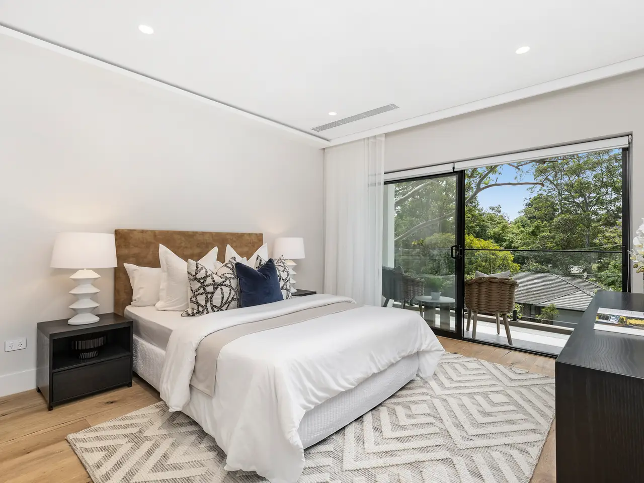 At the cul-de-sac end of Karilla Avenue footsteps to Stringybark Creek Reserve and playground, this contemporary duplex offers a magnificent family home of generous size, impressive style and supreme comfort in a premium location. State-of-the-art interiors showcase quality finishes throughout with an abundance of natural light, serene leafy outlooks from almost every aspect and superb flow to a covered alfresco area and grassed garden superbly appointed for entertaining. With easy access to The Canopy, Lane Cove village shops and dining, parklands, quality schools and city buses, the home combines sophisticated living and quiet convenience in one of the area's most sought-after tree-lined streets. - High coffered ceilings, tile and timber floors, ducted r/c air conditioning - Open plan living/dining and island kitchen, upstairs media area or study - Kitchen features Euro appliances, induction cooking and butler's pantry - Bi-folding glass doors seamlessly connect the living space to the alfresco - Guest/in-laws bedroom on entry with a balcony and adjacent bathroom - Three bedrooms upstairs, two have ensuites, master WIR and balcony - Sleek main bathroom including bath and separate internal laundry room - Underfloor heating to all tiled areas, ample storage and rainwater tank - Covered garden terrace with in-built BBQ facilities and beverage fridge - Oversized auto lock-up garage w/ internal access and driveway parking - Approx. 15mins walk to The Canopy, 700m to Longueville Road shops - In catchment zones for Lane Cove Public School and Hunters Hill High Auction commences 6.00pm at Belle Property Head Office 2A Phoenix Street, Lane Cove NSW 2066 Registrations from 5.30pm