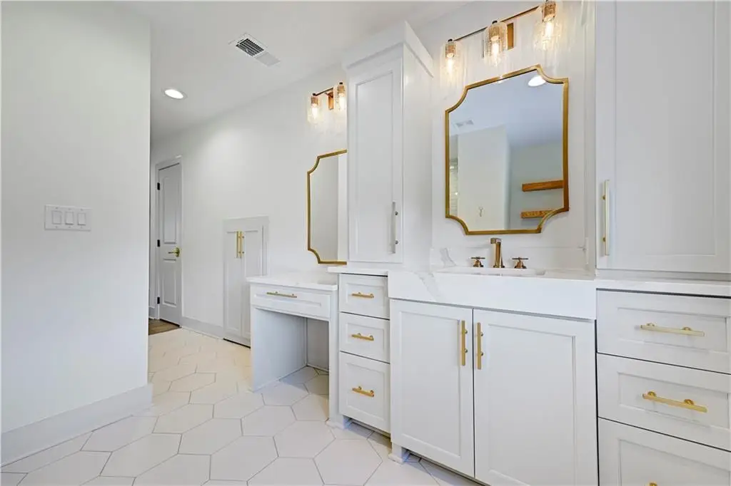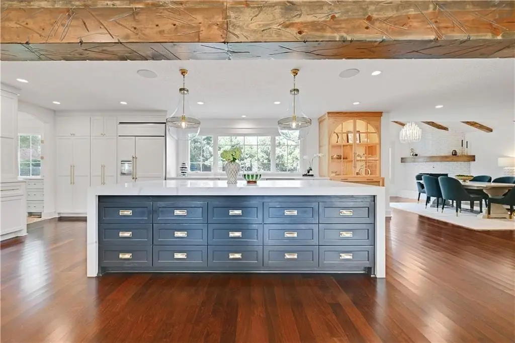 Stunning, remodeled 1.5-story estate on a beautifully landscaped corner lot spanning over 1 acre in the heart of Leawood. This home has been thoughtfully redesigned with extensive renovations, floor plan enhancements, and premium upgrades throughout. Upon entry, a formal living room and dining room, with elegant fireplaces create inviting spaces for both everyday living and entertaining. A custom wet bar with beverage fridge adds to the homes hosting appeal. The show-stopping chef's kitchen features a quartz waterfall island, top-of-the-line appliances, and an oversized window overlooking the private backyard. Adjacent to the kitchen, a well-appointed mud hall includes built-in cabinetry, a desk, cubbies, connecting to the spacious three-car carriage garage. The main-level primary suite offers peaceful backyard views, two walk-in closets (one with its own washer and dryer), and a fully renovated spa-like bathroom with a private water closet. Upstairs, three large bedrooms each include ensuite bathrooms and custom closets. A second laundry room w/ washer/dryer that stays completes the upper level. High-end finishes include Brazilian hardwood floors, designer lighting, quartz and quartzite surfaces, surround sound on the main floor, and custom millwork. Major mechanical updates include a brand-new septic system, partial concrete driveway, new water heater, new sprinkler system in backyard and professional landscaping. The property is enclosed by 558 feet of 5-foot steel fencing. With the newly installed septic system, the property is now perfectly suited for the addition of a poolan ideal setup for creating your dream backyard retreat. A rare opportunity to own a fully updated, move-in ready home on a premier Leawood estate lot.