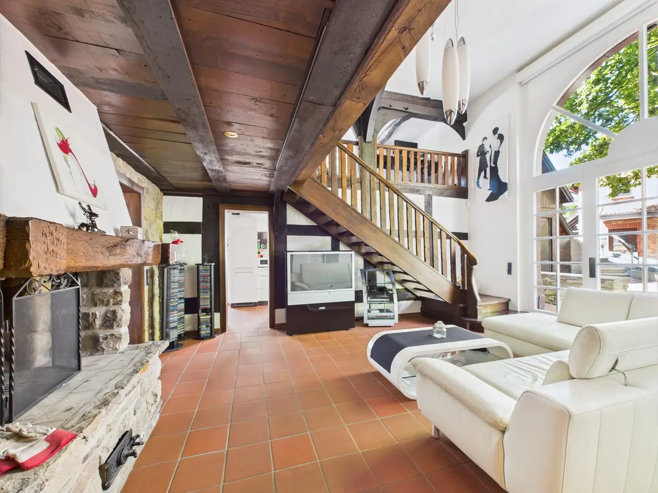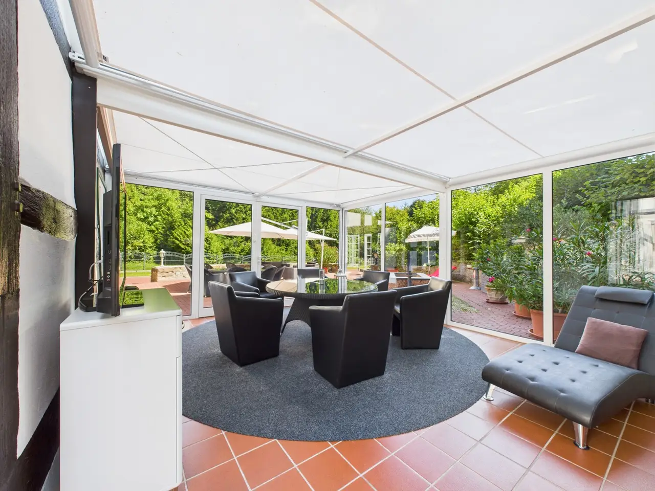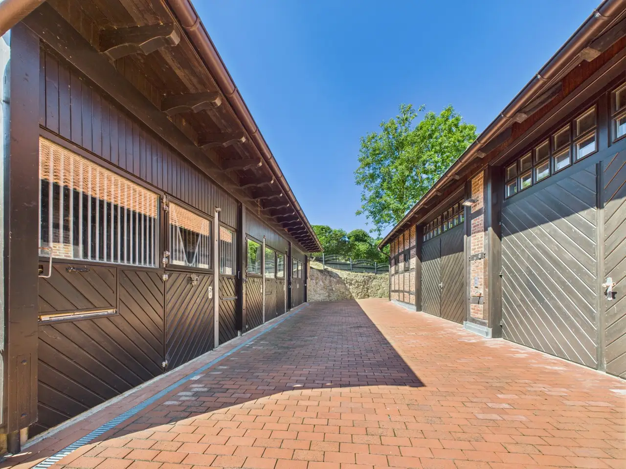 Welcome to an extraordinary opportunity! We present to you a unique building ensemble consisting of a beautiful half-timbered house, a guest house and a large garage. The approx. 11,728 m² property also offers a horse stable, a paddock of approx. 5,356 m², a well and two ponds with a nearby fishing hut. Half-timbered house: The main house, whose timber frame is a listed building, was originally built in 1700 and completely renovated in 1994. Attention was paid to the highest level of craftsmanship and flawless execution. The open and spacious floor plan offers a high degree of privacy as well as space for socializing. The property offers you a living space of approx. 249 m², spread over a large, open-plan living area as well as five individually usable rooms, a kitchen, a bathroom and a guest WC. A large, fully glazed conservatory with soapstone stove, shading and automatic opening of the glass roof elements ensures a warm living feeling and special comfort. A separate entrance leads to the top floor with three further rooms, a bathroom and a guest WC. The existing kitchen connections offer further potential uses - perfect as an office or hobby area! Guest house: The adjoining guest house was built in 1984 as a garage building with storage space. With a usable area of approx. 50 m², this property offers you a new sauna, a WC, the boiler room and storage space for your belongings on the first floor. A small apartment with kitchenette has been created in the attic. The outdoor jacuzzi completes this area. Relax after a visit to the sauna and recharge your batteries. Car showroom: Car enthusiasts will find their personal hideaway here. With space for 10 cars, a vacuum cleaning system and a dehumidification system, the heated first floor is the perfect place to store exclusive luxury cars. A stylish lounge with a bar area in Ferrari enthusiast design provides the perfect atmosphere for a cozy get-together. There is a garage with two further parking spaces in the basement. This can be heated and has a water and electricity connection as well as a compressor. The former stable building is a real space miracle and still offers plenty of space on the upper floor and attic. A hayloft and a feed silo are housed here. The building offers a high standard of security thanks to the modern video alarm system. In 2011, extensive renovation and maintenance work was carried out on the building and outdoor facilities. The high-quality fittings are reflected in the choice of materials and the quality of workmanship, which meet even the highest expectations. The dreamlike property exudes an aura of timeless elegance and historic charm. The lovingly preserved architectural details complement each other perfectly with the modern amenities that have been added in the course of the renovation. For horse lovers, nature enthusiasts and car enthusiasts looking for something special, the extensive property offers numerous possibilities for design and use. Contact us for more information and to arrange your viewing.
