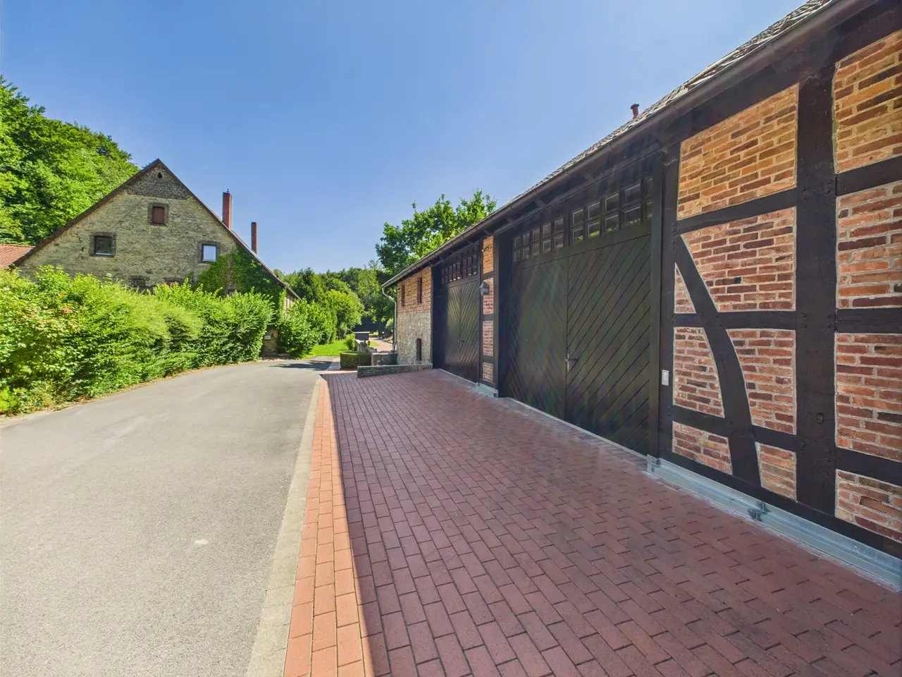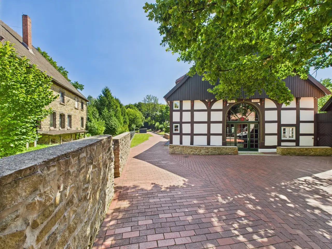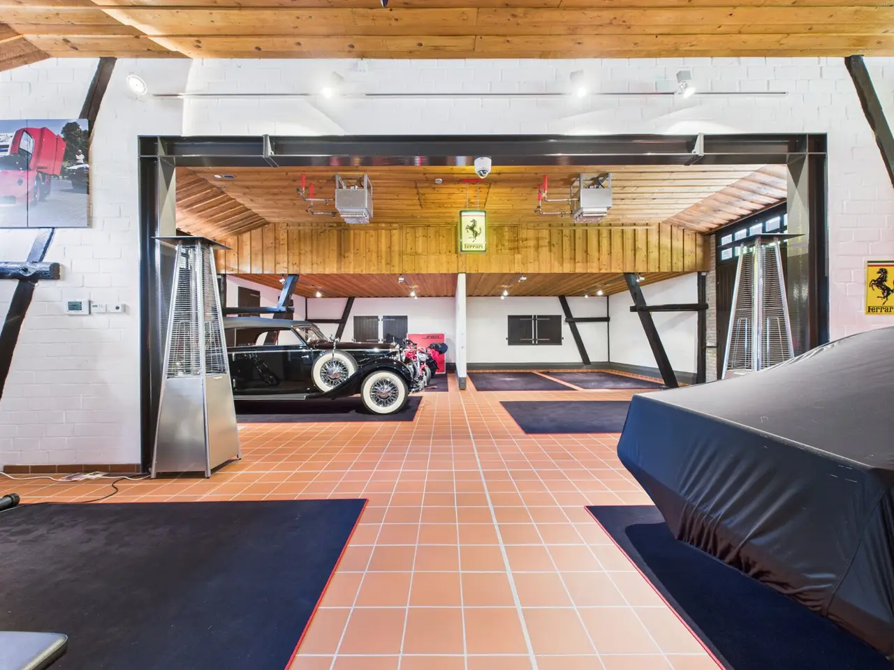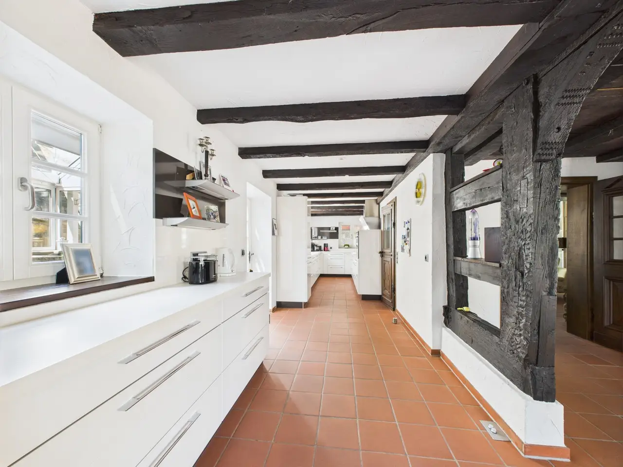 Welcome to an extraordinary opportunity! We present to you a unique building ensemble consisting of a beautiful half-timbered house, a guest house and a large garage. The approx. 11,728 m² property also offers a horse stable, a paddock of approx. 5,356 m², a well and two ponds with a nearby fishing hut. Half-timbered house: The main house, whose timber frame is a listed building, was originally built in 1700 and completely renovated in 1994. Attention was paid to the highest level of craftsmanship and flawless execution. The open and spacious floor plan offers a high degree of privacy as well as space for socializing. The property offers you a living space of approx. 249 m², spread over a large, open-plan living area as well as five individually usable rooms, a kitchen, a bathroom and a guest WC. A large, fully glazed conservatory with soapstone stove, shading and automatic opening of the glass roof elements ensures a warm living feeling and special comfort. A separate entrance leads to the top floor with three further rooms, a bathroom and a guest WC. The existing kitchen connections offer further potential uses - perfect as an office or hobby area! Guest house: The adjoining guest house was built in 1984 as a garage building with storage space. With a usable area of approx. 50 m², this property offers you a new sauna, a WC, the boiler room and storage space for your belongings on the first floor. A small apartment with kitchenette has been created in the attic. The outdoor jacuzzi completes this area. Relax after a visit to the sauna and recharge your batteries. Car showroom: Car enthusiasts will find their personal hideaway here. With space for 10 cars, a vacuum cleaning system and a dehumidification system, the heated first floor is the perfect place to store exclusive luxury cars. A stylish lounge with a bar area in Ferrari enthusiast design provides the perfect atmosphere for a cozy get-together. There is a garage with two further parking spaces in the basement. This can be heated and has a water and electricity connection as well as a compressor. The former stable building is a real space miracle and still offers plenty of space on the upper floor and attic. A hayloft and a feed silo are housed here. The building offers a high standard of security thanks to the modern video alarm system. In 2011, extensive renovation and maintenance work was carried out on the building and outdoor facilities. The high-quality fittings are reflected in the choice of materials and the quality of workmanship, which meet even the highest expectations. The dreamlike property exudes an aura of timeless elegance and historic charm. The lovingly preserved architectural details complement each other perfectly with the modern amenities that have been added in the course of the renovation. For horse lovers, nature enthusiasts and car enthusiasts looking for something special, the extensive property offers numerous possibilities for design and use. Contact us for more information and to arrange your viewing.